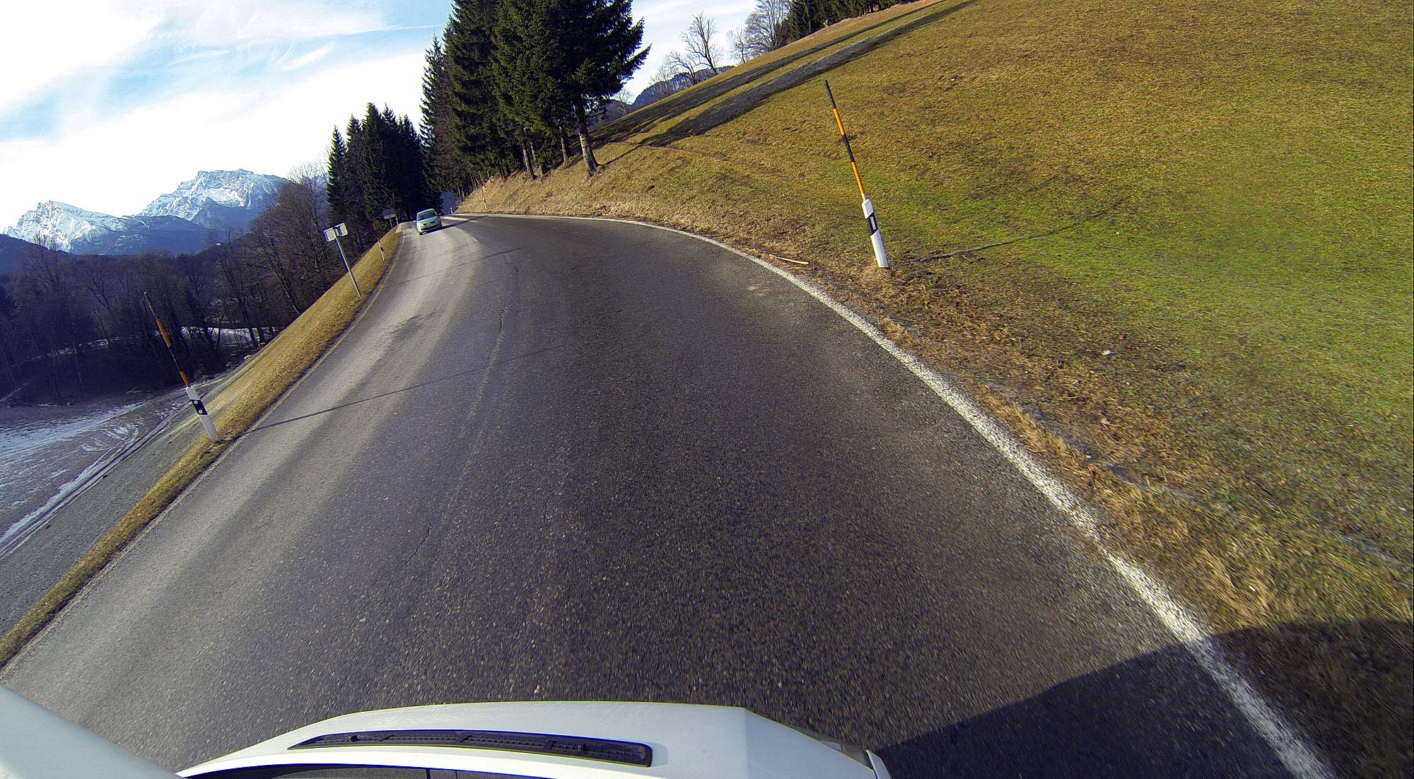 Unser nächstes Ziel war die Tatzlwurmstraße und zu Beginn dieser Straße machte uns ein Schild darauf aufmerksam, dass es sich um eine mautpflichtige Straße handele. Na gut, nur fanden wir keine Möglichkeit, die erforderlichen zwei Euro zu bezahlen. Also fuhren wir erstmal und schauten, was da so kommen möge. Ziemlich steil ging es auf der Straße hinab, die zudem auch zahlreiche Kurven aufwies. Aber der Höhepunkt war ganz eindeutig ein kleiner Tunnel, der eine ziemliche Engstelle war. Nur einspurig kann man da durch und es wirkte ein wenig unheimlich, dort hindurchfahren zu müssen. War es natürlich nicht, aber es kam recht überraschend.