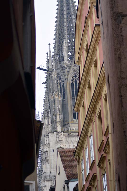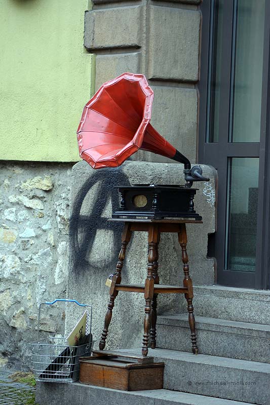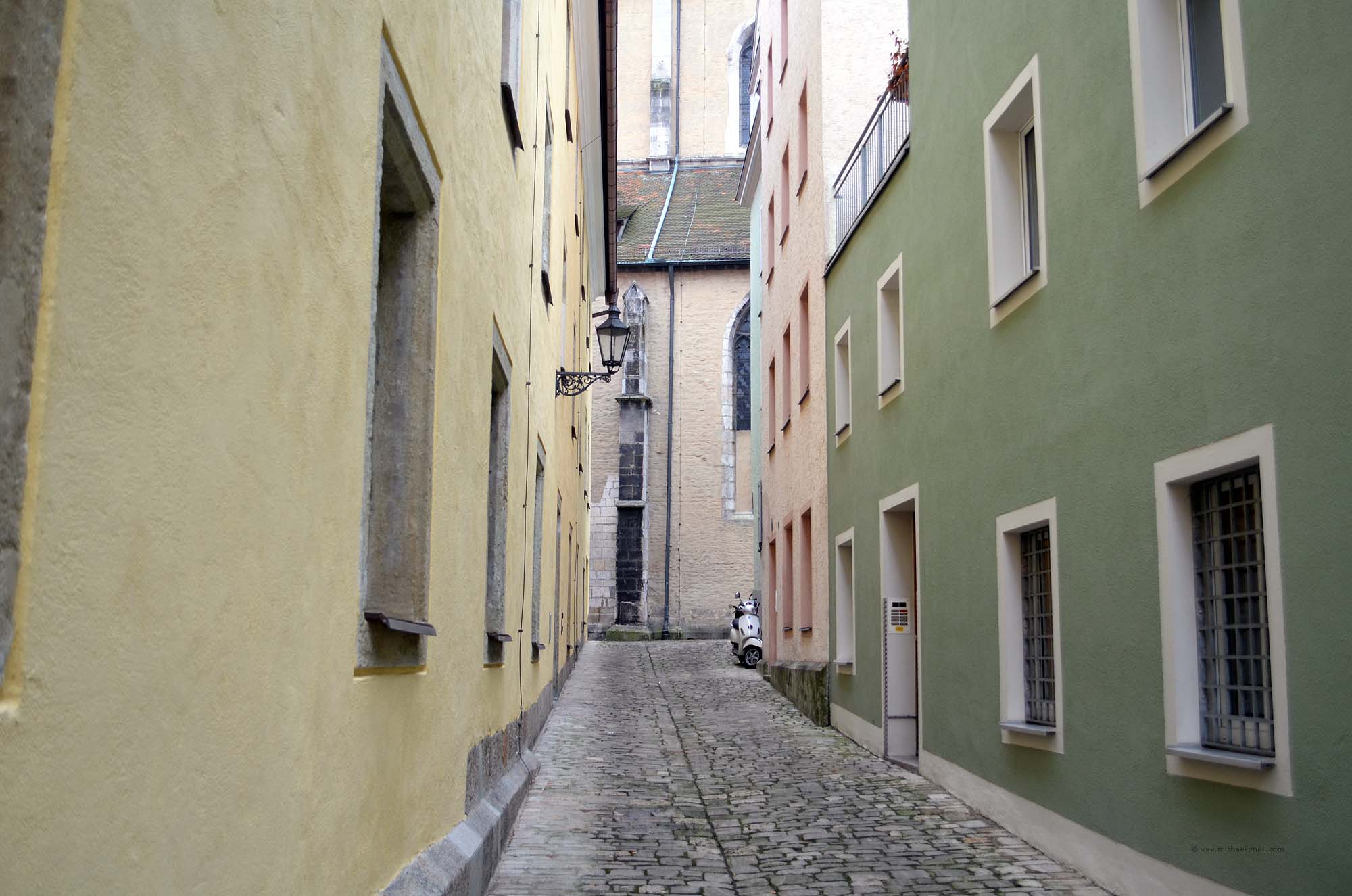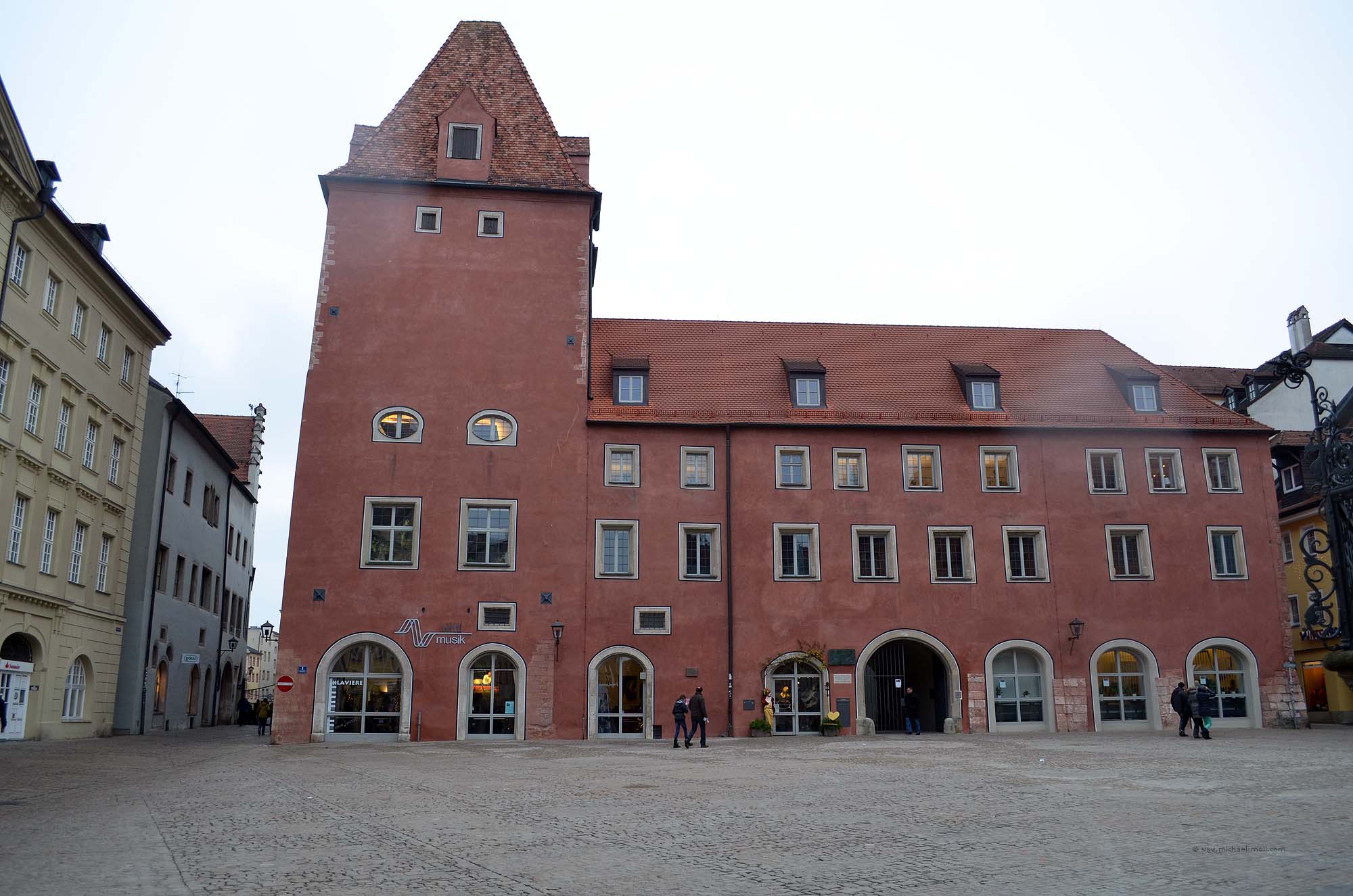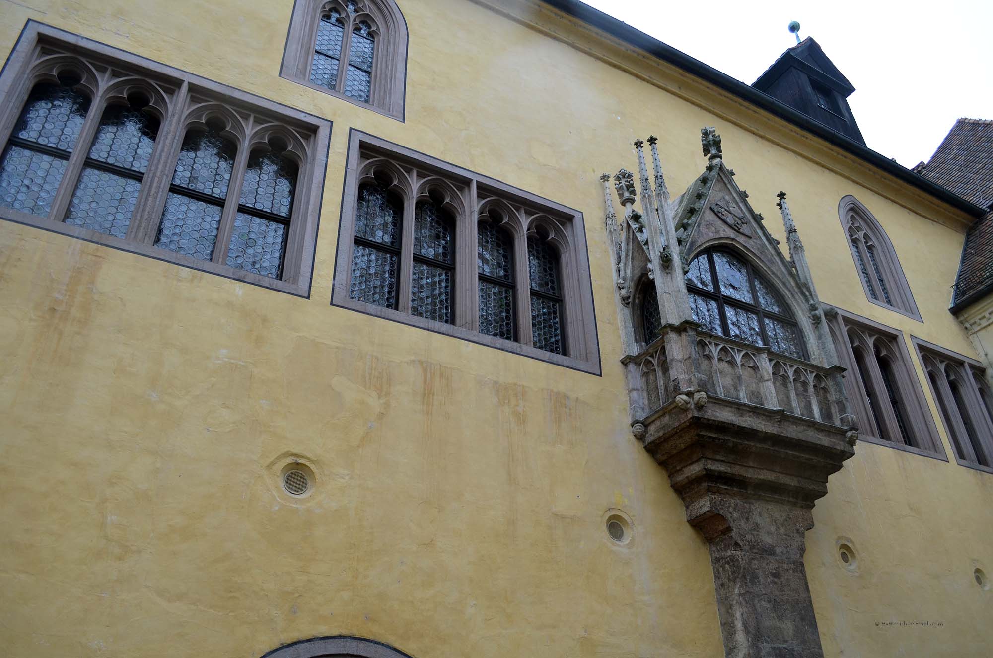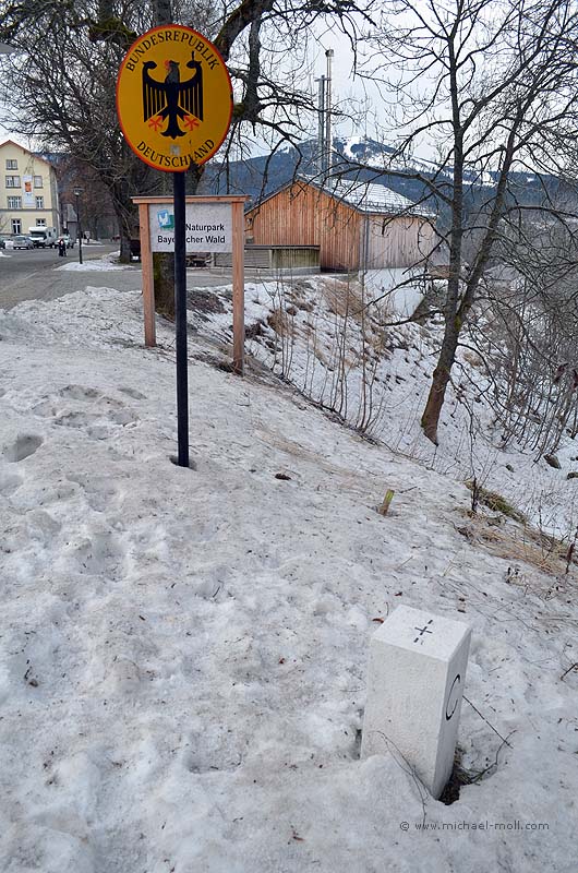 In Braunau am Inn überquerten wir die Grenze nach Deutschland, machten aber noch einen kurzen Stopp an einem Mahngedenkstein. Dieser befindet sich nämlich genau vor dem Haus, wo das Elend des 20. Jahrhunderts ihren Anfang nahm – nämlich vor dem Geburtshaus von Hitler. Da ich in den nächsten Wochen ein Webprojekt über schicksalsträchtige Orte des letzten Jahrhunderts plane, passte mir das ganz gut in den Kram und ich machte noch schnell ein Foto von dem Gebäude.