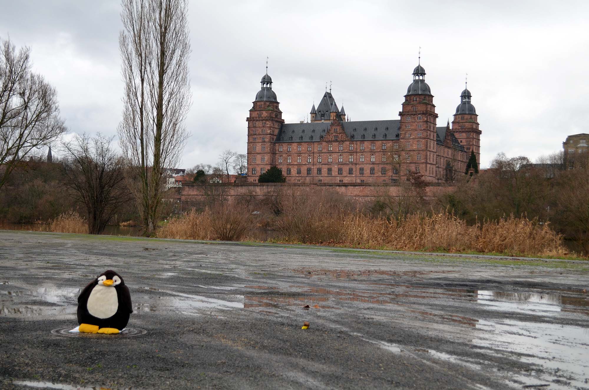 Und gar nicht weit weg von dort liegt, bereits auf hessischer Seite, der vorherige geografische Mittelpunkt der EU-27. Na, da haben wir diesem doch auch gleich noch einen Besuch abgestattet. Recht spontan, zugegebenermaßen. Und genau deswegen wurde es auch langsam spät. Nun waren wir zwar bereits in Hessen, aber der einzig vernünftig klingende Wohnmobilstellplatz schien in Aschaffenburg zu sein, weswegen wir dort hin fuhren. Natürlich auch mit der Absicht, am nächsten Tag, das Zentrum von Aschaffenburg zu besichtigen.