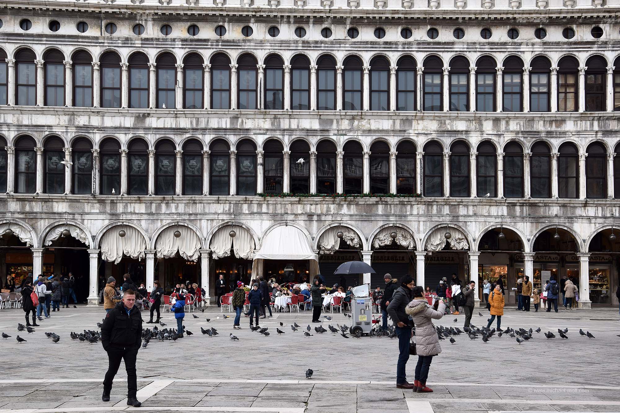 Früh morgens standen wir auf und wunderten uns über einen Wohnmobilfahrer aus Spanien, der seinen Motor laufen ließ. Unsere Vermutung war, dass er kein Gas mehr hatte und nun die Motorwärme zum Heizen nutzt. Vermutlich hat da jemand nicht ganz aufgepasst. Anschließend bezahlten wir eine weitere Nacht und machten uns dann auf zu einer umfangreichen Stadtbesichtigung. So wie am Vorabend fuhren wir auch wieder mit dem Bus zum Piazzale Roma und schlenderten den ganzen Tag durch die Gassen Venedigs. Wir folgten wieder der Hauptachse, vorbei an der Rialtobrücke und besuchten natürlich auch den Markusplatz, den Campanile und die Seufzerbrücke. Witzigerweise war aber genau der Markusplatz das Einzige in Venedig, was mich jetzt nicht sonderlich überzeugen konnte. Es war halt ein Platz. Sehenswert, ja. Aber eben nicht mehr sehenswert als viele andere Plätze in europäischen Städten. Da fand ich die Gassen und die vielen kleinen Kanäle, die alten Häuser und die Stimmung in anderen Teilen Venedigs irgendwie viel aufregender.