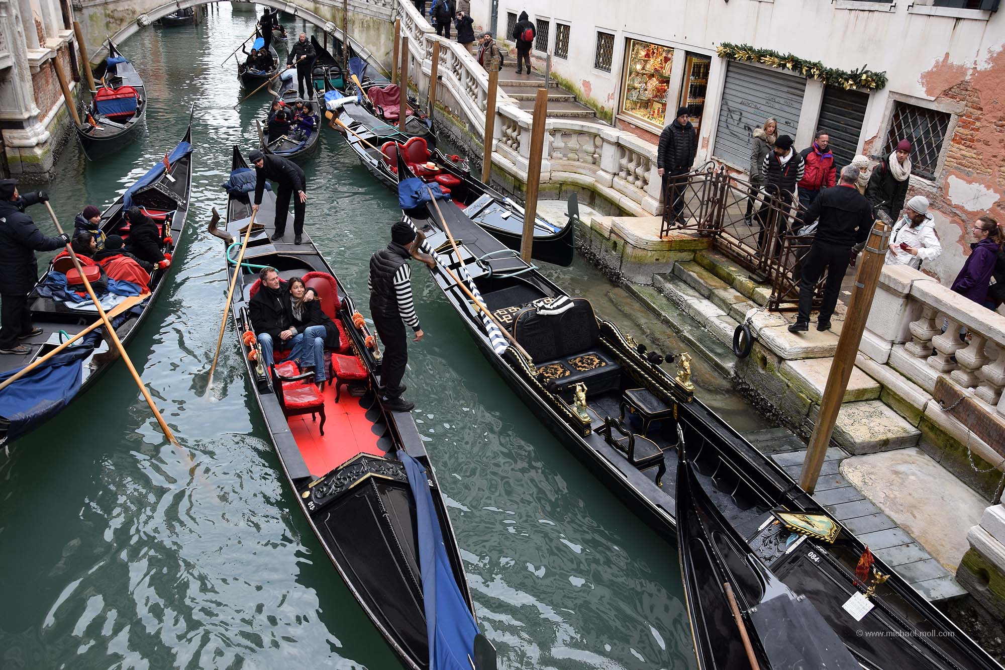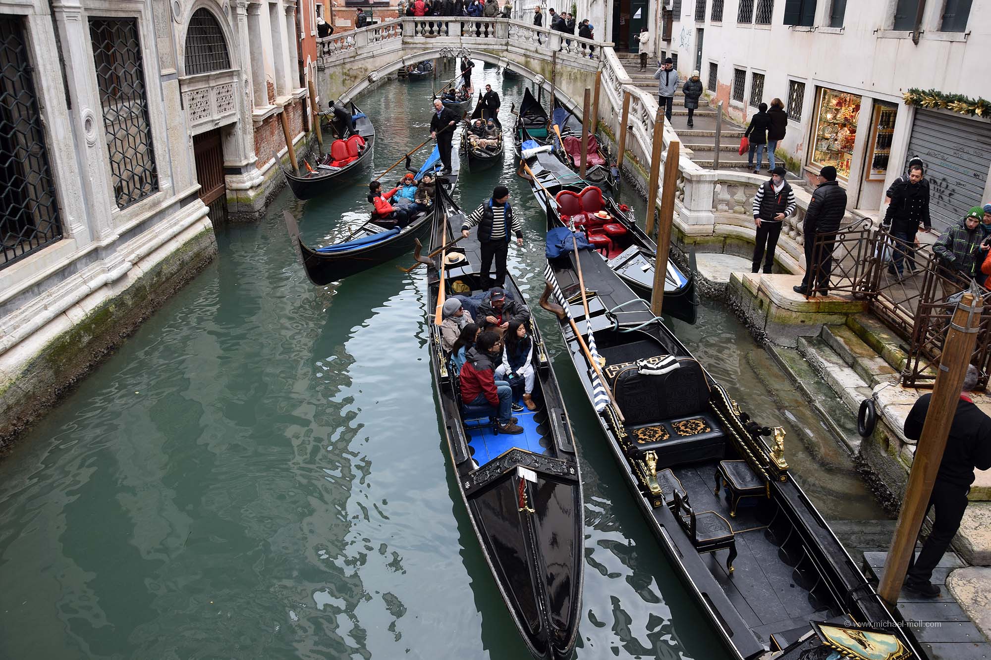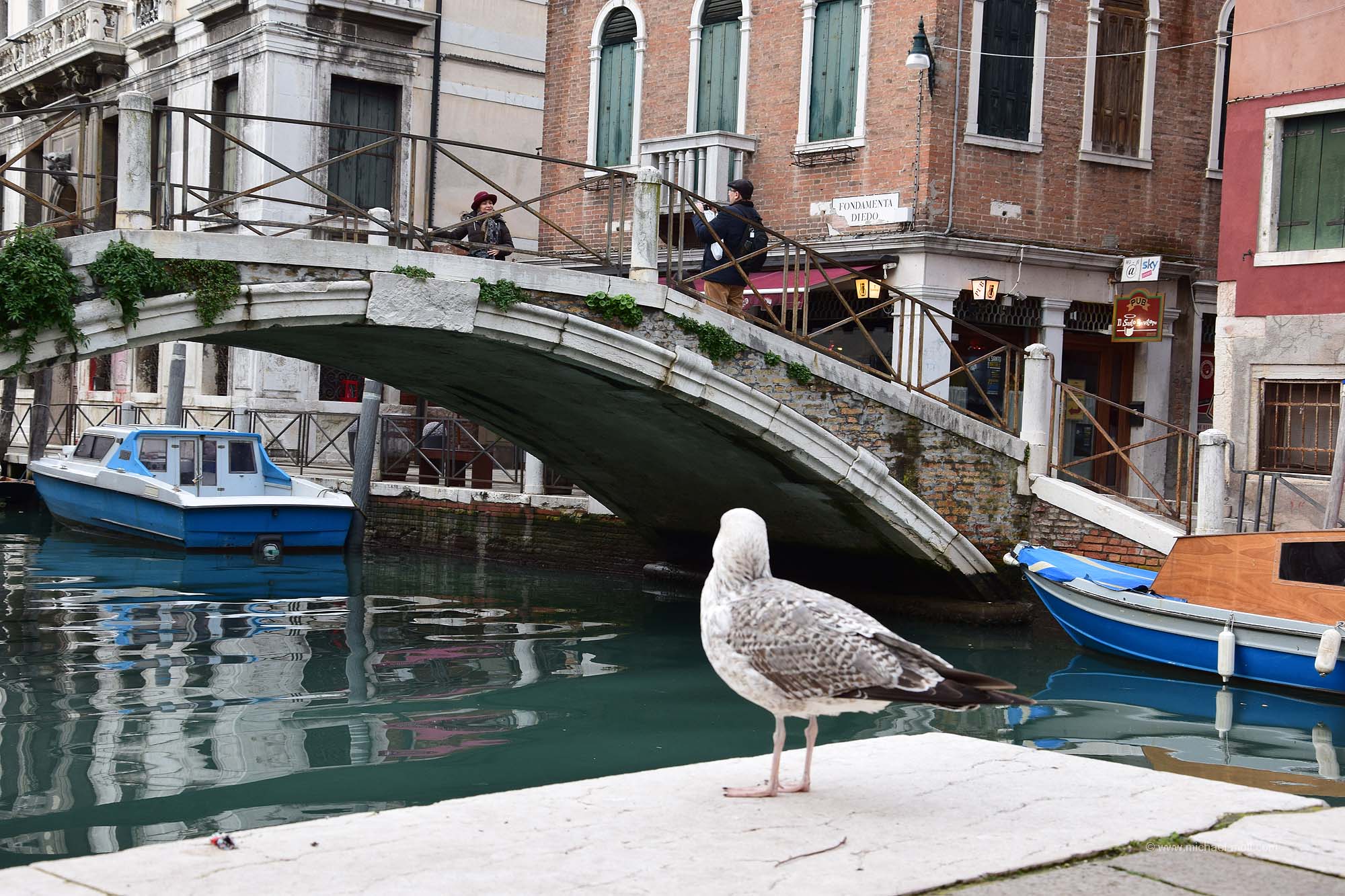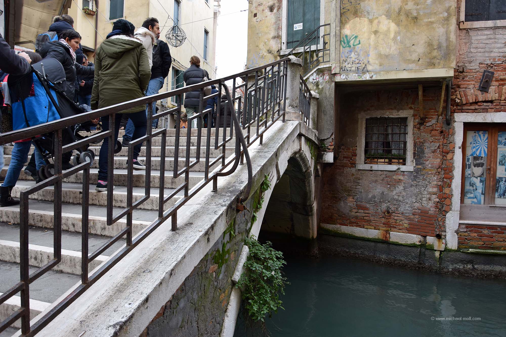 Wir spazierten durch den Trubel am Markusplatz, durch den kleineren Trubel in San Polo und abseits des Trubels zum Geburtsort des Wortes Ghetto. Wir beobachteten, wie die Touristen auf die vielen Selfie-Stangen-Verkäufer hereinfielen, was uns im Übrigen auch schon in Pisa und Florenz auffiel und wir besichtigten die eine oder andere Kirche. Außerdem hielt ich an jeder Brücke an, die über irgendeinen Kanal führte und machte ein Foto von ihr. Denn schnell war mir klar, dass ich nun die Brücken Venedigs sammeln würde. Zumindest als Bild. Herausgekommen ist mein Blog-Artikel über die Brücken Venedigs. Die größte Arbeit lag später darin, den Namen der teilweise sehr kleinen Brücken herauszubekommen. Bis auf wenige Ausnahmen hatte ich das aber geschafft.
