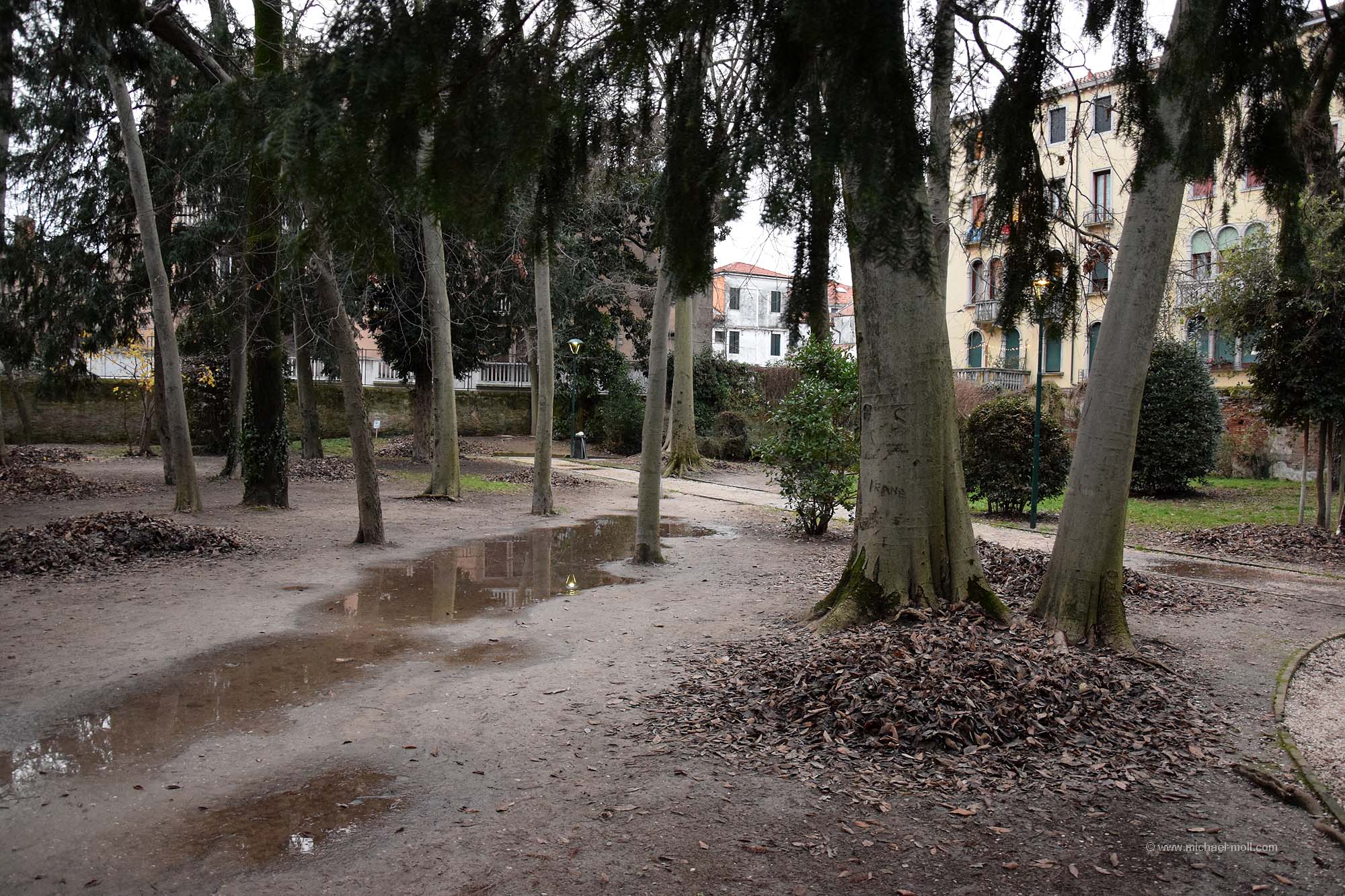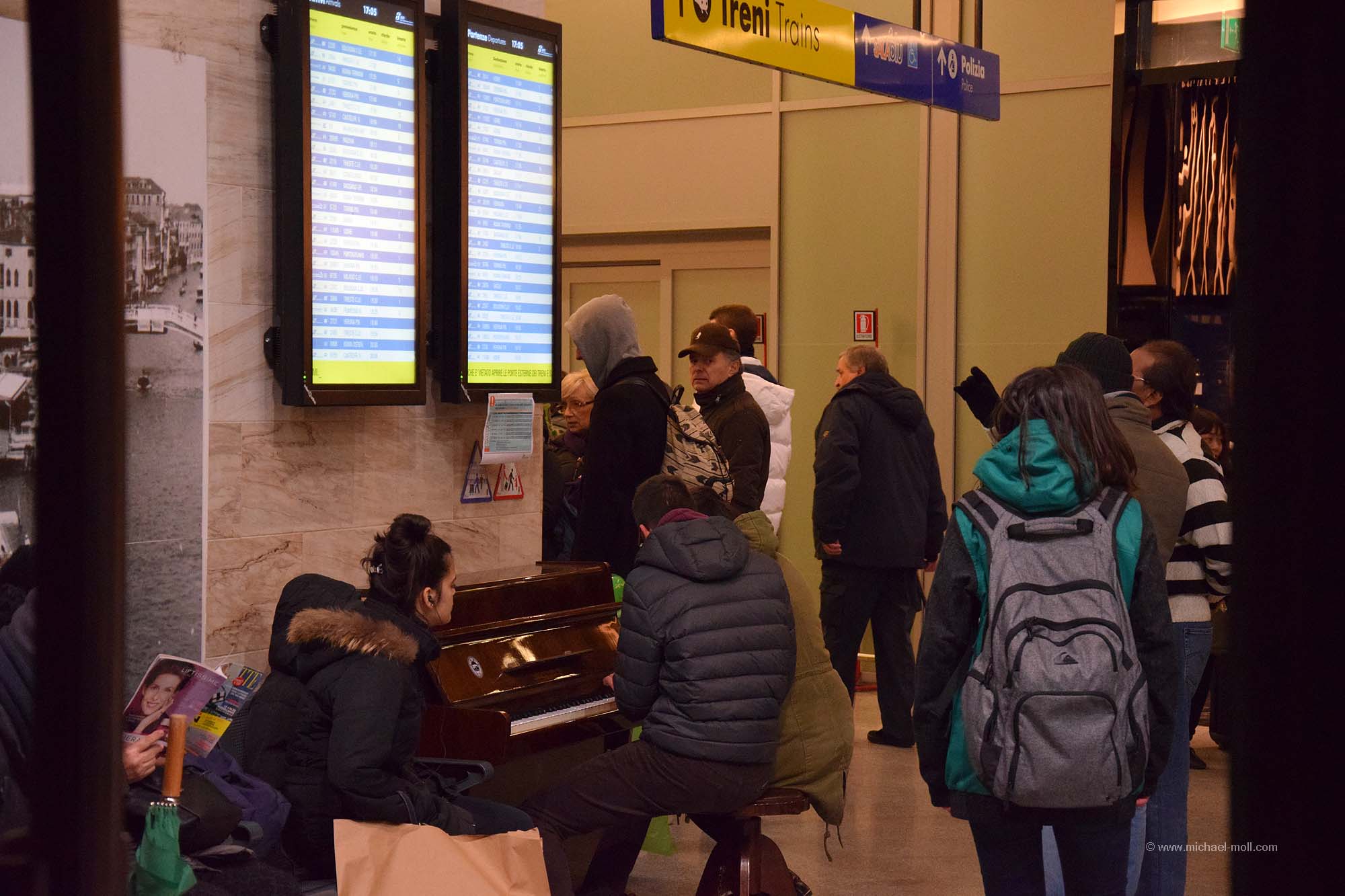 Der erste Tag nach Weihnachten war der Tag, auf den ich mich ursprünglich am meisten freute, weil es eben der erste Tag NACH Weihnachten wäre. Den Vormittag verbrachten wir aber an diesem Samstag mit einer längeren Fahrt auf der Autobahn, nur unterbrochen von einer kurzen Tankpause. Wir durchquerten den Apennin auf einer ziemlich kurvigen Autobahn, zogen an Bologna vorbei und steuerten in der Po-Ebene auf Venedig zu. Rund drei Stunden waren wir unterwegs, in denen uns laufen Wohnmobile entgegen kamen. Aber nur wenige fuhren mit uns in dieselbe Richtung. Außerdem war das Wetter an dem Tag nun deutlich schlechter als am Vortag in Florenz. Dichte tief hängende Wolken öffneten sich eine halbe Stunde bevor wir Venedig erreichten. Außerdem warnte uns unser Außenthermometer vor Kälte knapp über dem Gefrierpunkt. Das war doof, aber nicht zu ändern.
