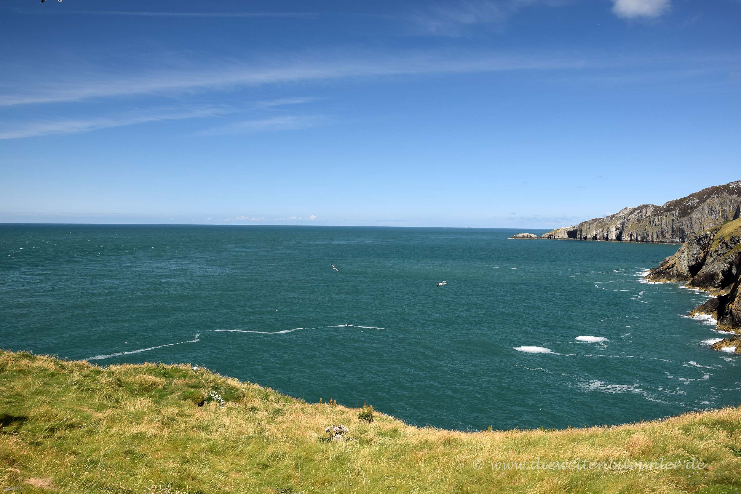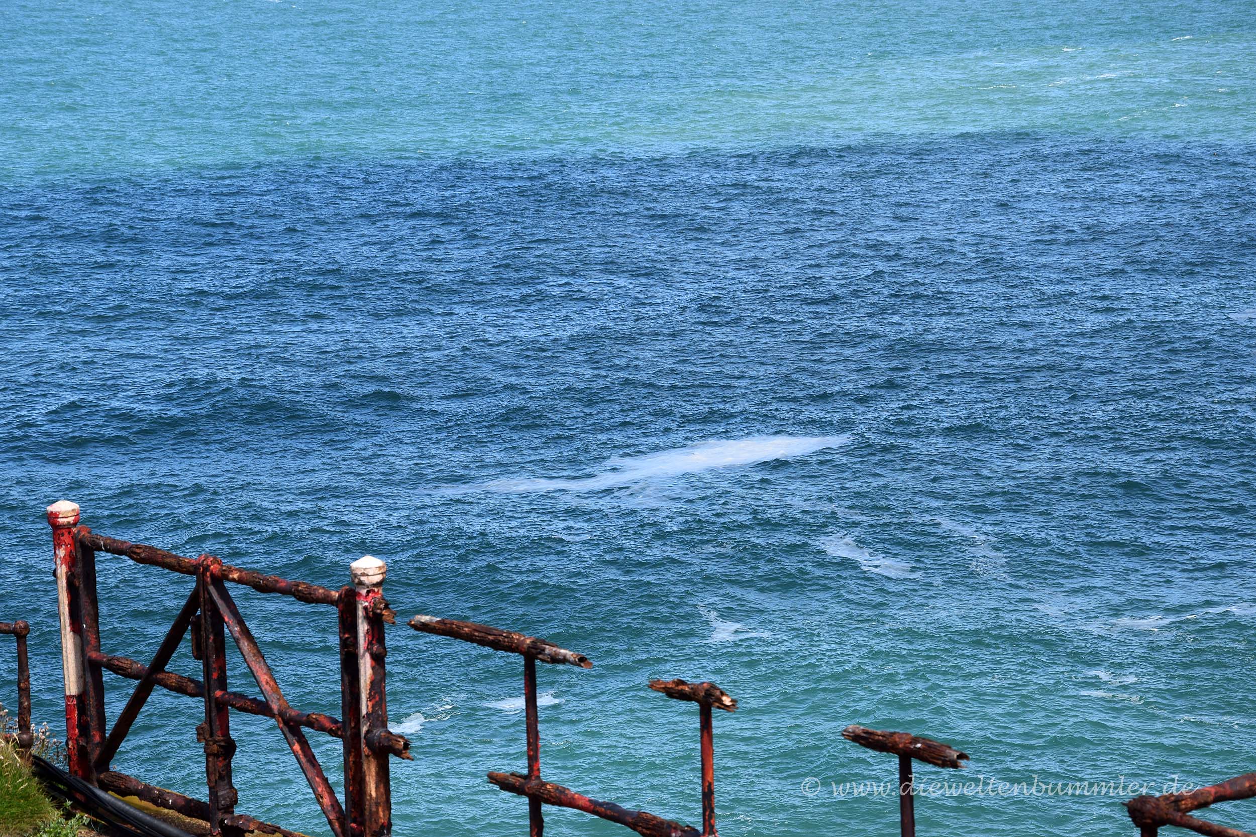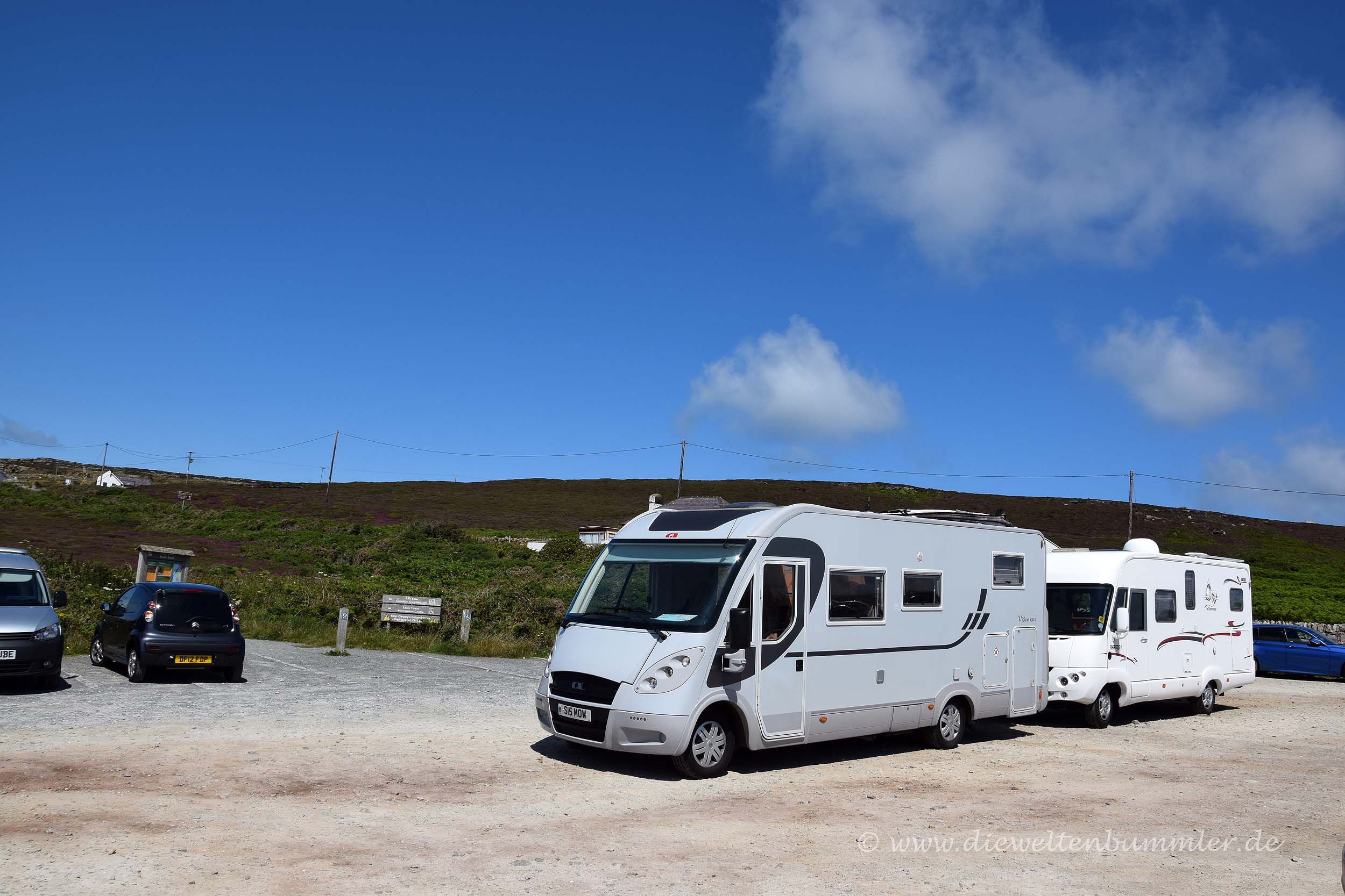 Auf einem Parkplatz stellten wir unser Wohnmobil ab, wo auch schon zwei andere britische Wohnmobile standen und machten uns daran, einem kleinen Küstenweg zu folgen. Auch hier wäre es übrigens nicht möglich gewesen, ein mögliches Titelbild zu schießen, denn im Hintergrund des Parkplatzes war nur Meer zu sehen. Sieht zwar schön, ist aber beliebig und ein Titelfoto von einem Wohnmobil, das zwischen zwei Pkw eingeparkt ist, macht sich natürlich auch nicht so gut.