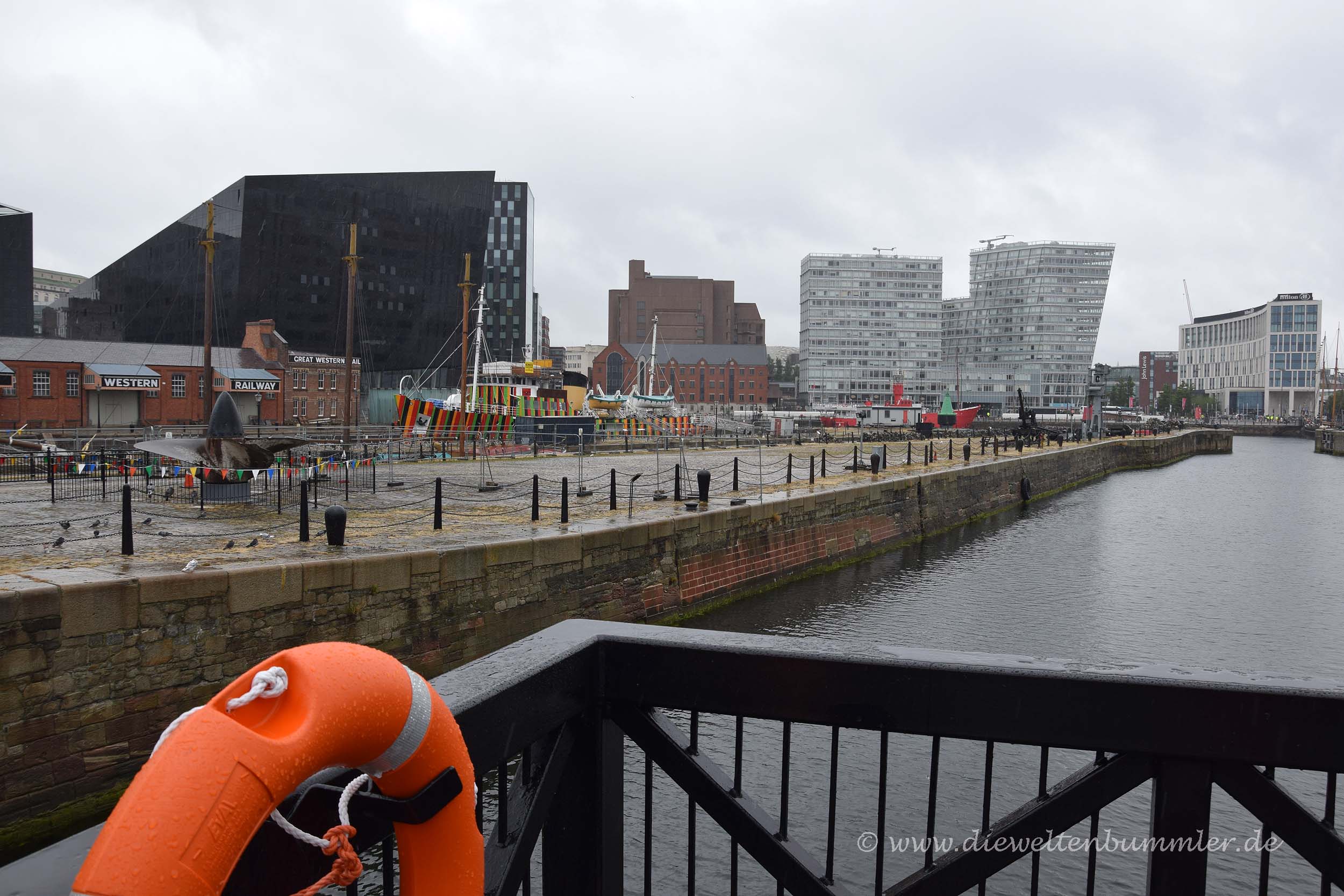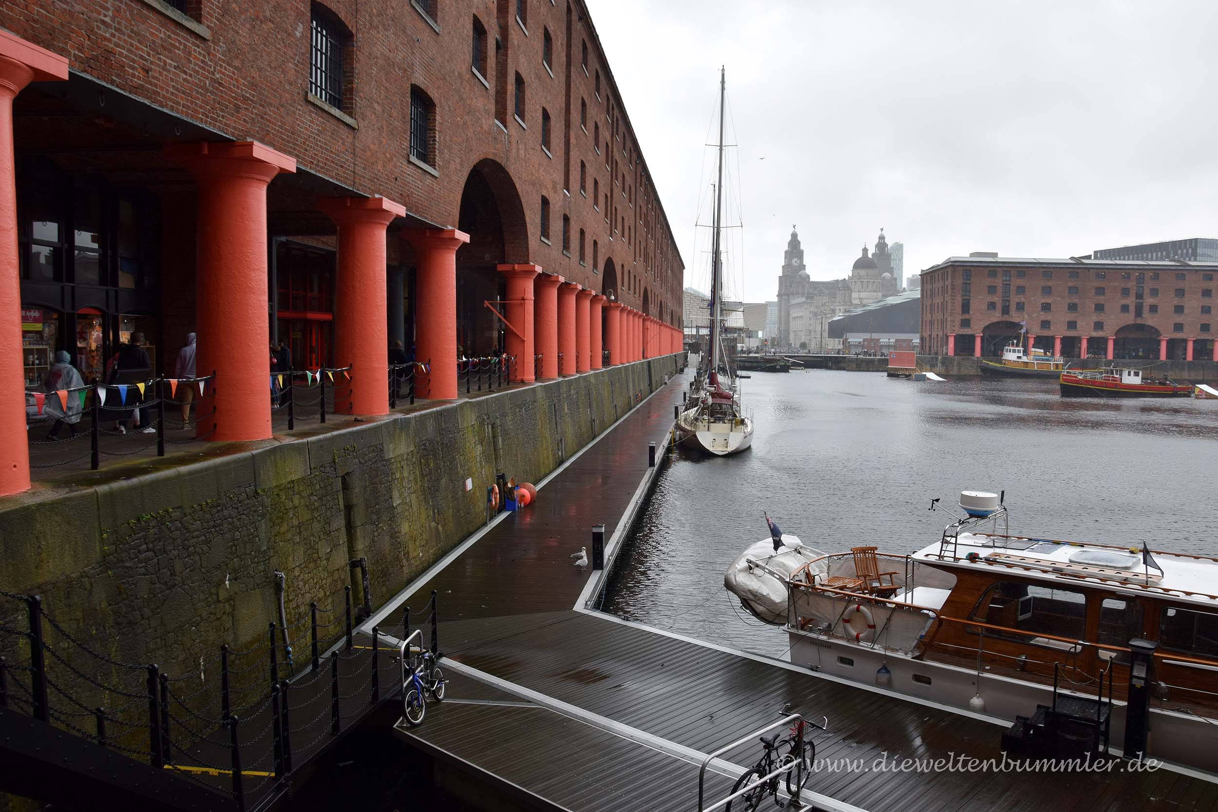 Gleich im Anschluss folgen die Albert Docks, die sich in den letzten Jahren zum neuen Zentrum von Liverpool wandelten und zahlreiche Museen beherbergen sowie auf der Unesco-Liste der Weltkulturerben eingetragen sind. Wir schlenderten, weiterhin bei starkem Regen, durch die Docks, versuchten einige Bilder machen und kehrten irgendwann wieder langsam zurück in Richtung Wohnmobil. Die Zeit war mittlerweile gekommen, um dem britischen Festland Auf Wiedersehen zu sagen. Wir fuhren die wenigen hundert Meter zum Terminal, checkten dort ein und wurden vom Personal unterrichtet, wo wir parken sollten. Soweit kennt man das ja von Fährüberfahrten, doch in diesem Fall war das Problem der Mitarbeiter, der mit einem Akzent sprach, den ich kaum verstehen konnten. Bei jedem Satz, den er von sich gab, musste ich drei Mal nachfragen und ich kam mir schon mittlerweile ein wenig doof war. Aber was soll man machen, wenn man mit jemanden spricht, der anscheinend von der Isle of Man stammt und wesentlich undeutlicher spricht?