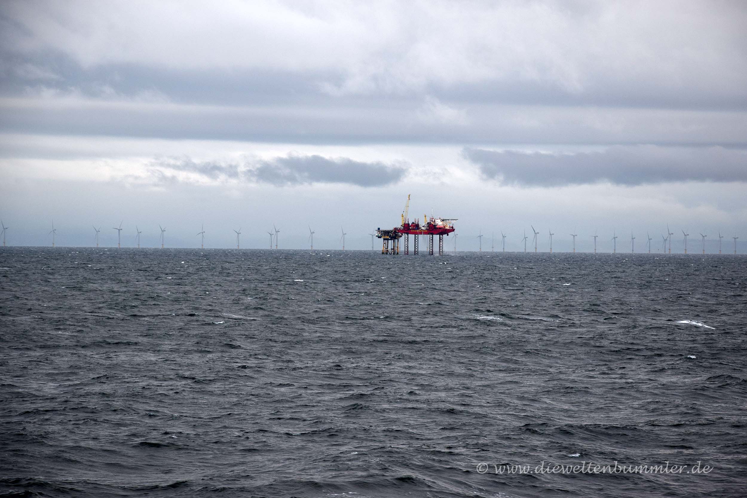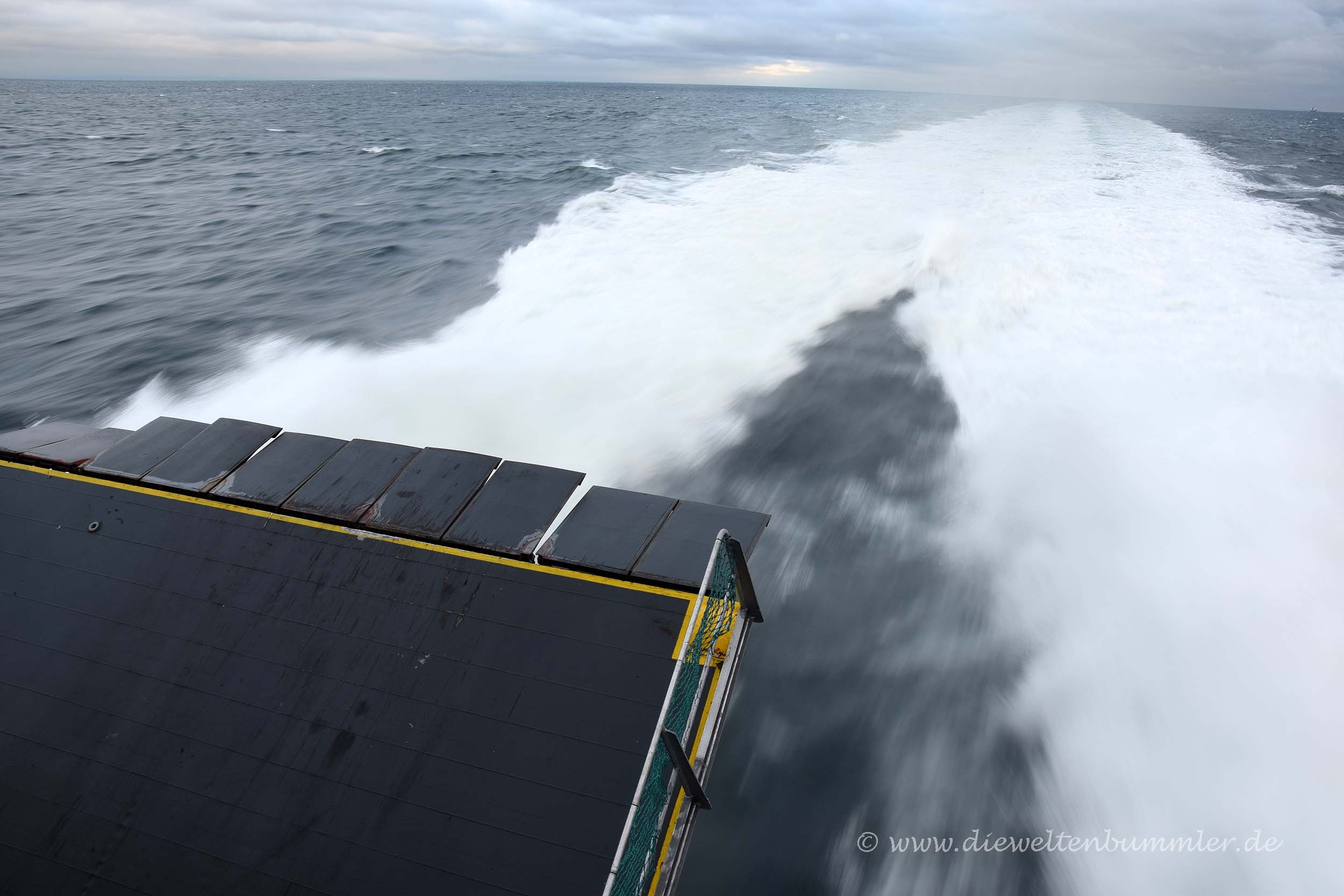 Später fuhren wir mit all den anderen Fahrzeugen auf die Fähre, wo ich innerhalb des Frachtraums wenden und ebenfalls rückwärts einparken sollte. Hier gab es ein ähnliches Spiel, bis ich den Leuten klar machte, dass ich ihre Zeichen nur im Rückspiegel sehen kann. Ich fand das seltsam, weil sie das doch eigentlich wissen sollten. Aber letztendlich ging ja alles gut und wir konnten Liverpool mit dem Katamaran verlassen.