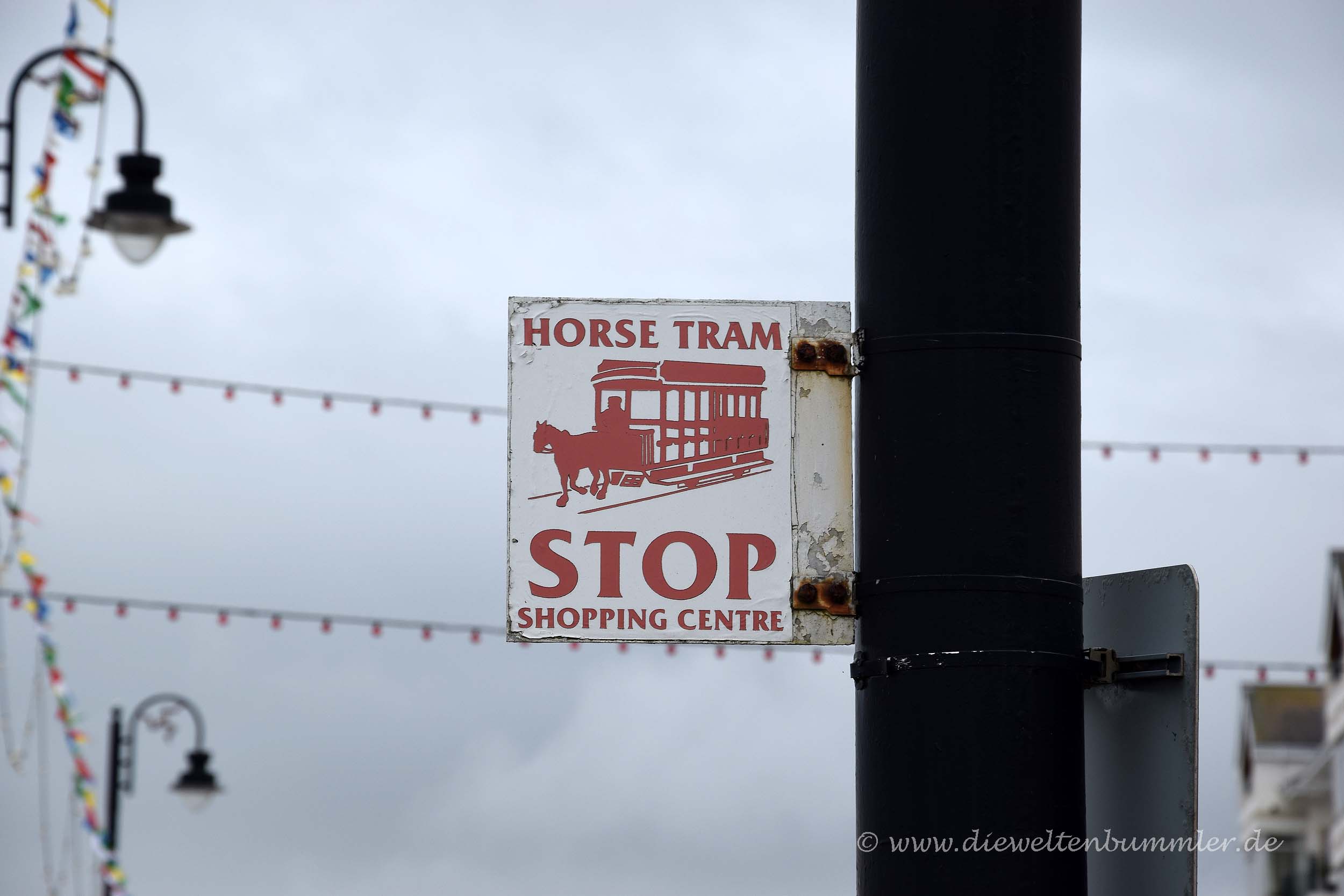 Wir stellten unser Wohnmobil auf dem Parkplatz von Tesco ab und gingen zunächst durch die Stadt, wo wir aber gar nicht allzu weit kamen. Denn als wir den Yachthafen passierten, gelangten wir zur Promenade, wo gerade die Pferdestraßenbahn abfahrtbereit auf Fahrgäste wartete. Das ließen wir uns nicht nehmen, sprangen in den offenen Wagen und ließen uns bis zu Endhaltestelle mitnehmen. Ein gewagtes Experiment, denn ich hatte keine Jacke an und das Wetter sah nicht besonders stabil aus.