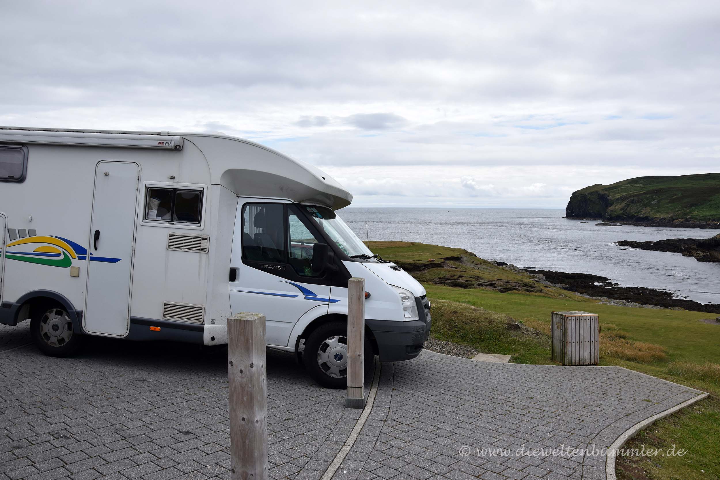 Aber auch dort war es nicht einfach einen Parkplatz zu finden. Das heißt, wir hatten zwei Parkplätze zur Auswahl. Bei dem einen standen wir aber direkt hinter einer Kaimauer und es war Ebbe. Wir wussten nicht, was uns bei Flut erwarten würde, zumal es ja ein wenig stürmisch war. Also ließen wir diesen Parkplatz aus Sicherheitsgründen lieber aus. Ein anderer Parkplatz gehörte zu einem Supermarkt, auf dem große Schilder das nächtliche Parken von Wohnmobilen untersagten. Da wir nicht genau wussten, wie man das hier auf der Isle of Man handhabt, ließen wir auch das lieber sein. Unser Glück fanden wir dann aber auf einem Schotterparkplatz eines kleinen Museums. Dort konnten wir dann endlich spät in der Nacht die Fenster verdunkeln und direkt ins Bett fallen.