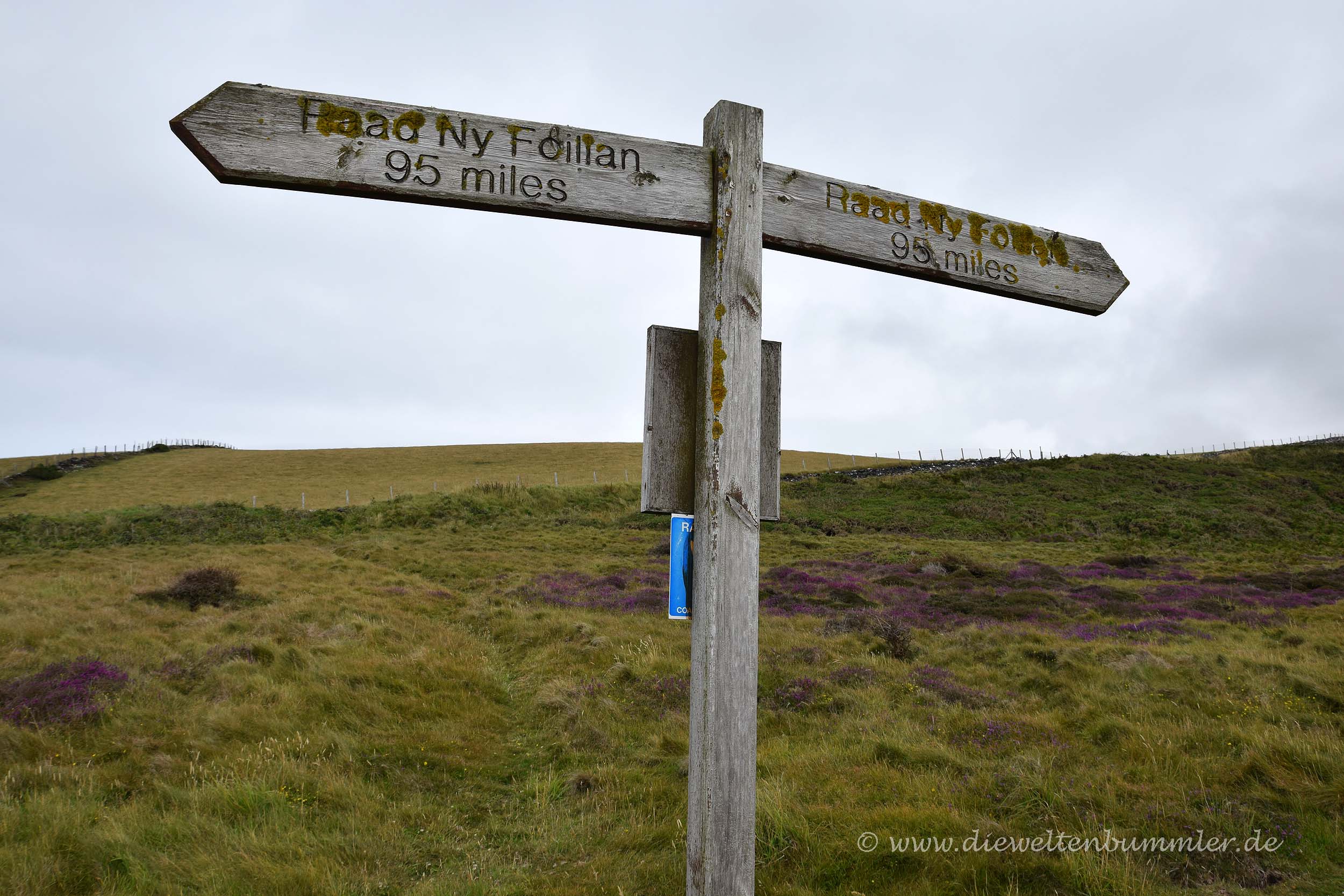 Wir spazierten ein wenig am Calf Sound umher, freuten uns, dass die Wolkendecke zu diesem Zeitpunkt auch mal die ein oder andere Lücke zuließ und fanden die Beschilderung für einen Wanderweg, der einmal rund um die Isle of Man verlaufen soll. Der Wanderweg nennt sich Raad ny Foillan und ist rund 95 Meilen lang. Er weckte ein wenig unser Interesse, denn die Landschaft war natürlich wirklich schön und lud geradezu dazu ein, einmal rund um die Insel zu wandern. Aber dafür waren wir leider nicht hier und die Zeit wäre natürlich auch überhaupt nicht ausreichend gewesen. Doch alleine dieser Wanderweg wäre schon ein Grund, die Insel noch einmal zu besuchen.