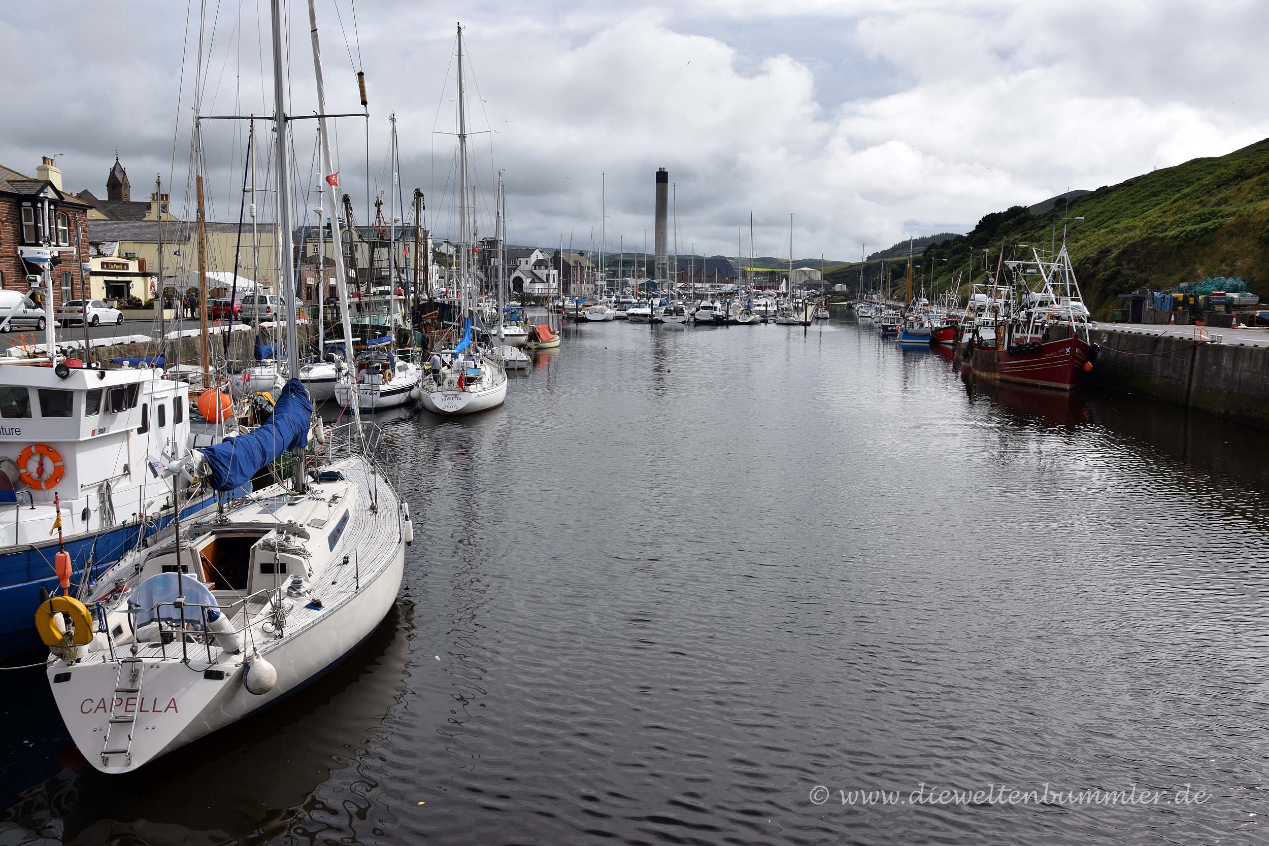 Das Ganze wirkte irgendwie gemütlich und auf eine Art auch romantisch. Ich denke, eine Fahrt mit so einem Bötchen hätte ich mir auch gut für uns vorstellen können. Wir fuhren jedoch natürlich noch weiter, denn wir hatten an diesem verregneten Tag noch viel vor und wir wussten, dass es durch die abendliche Überfahrt auf die Isle of Man noch ein langer Tag werden würde.