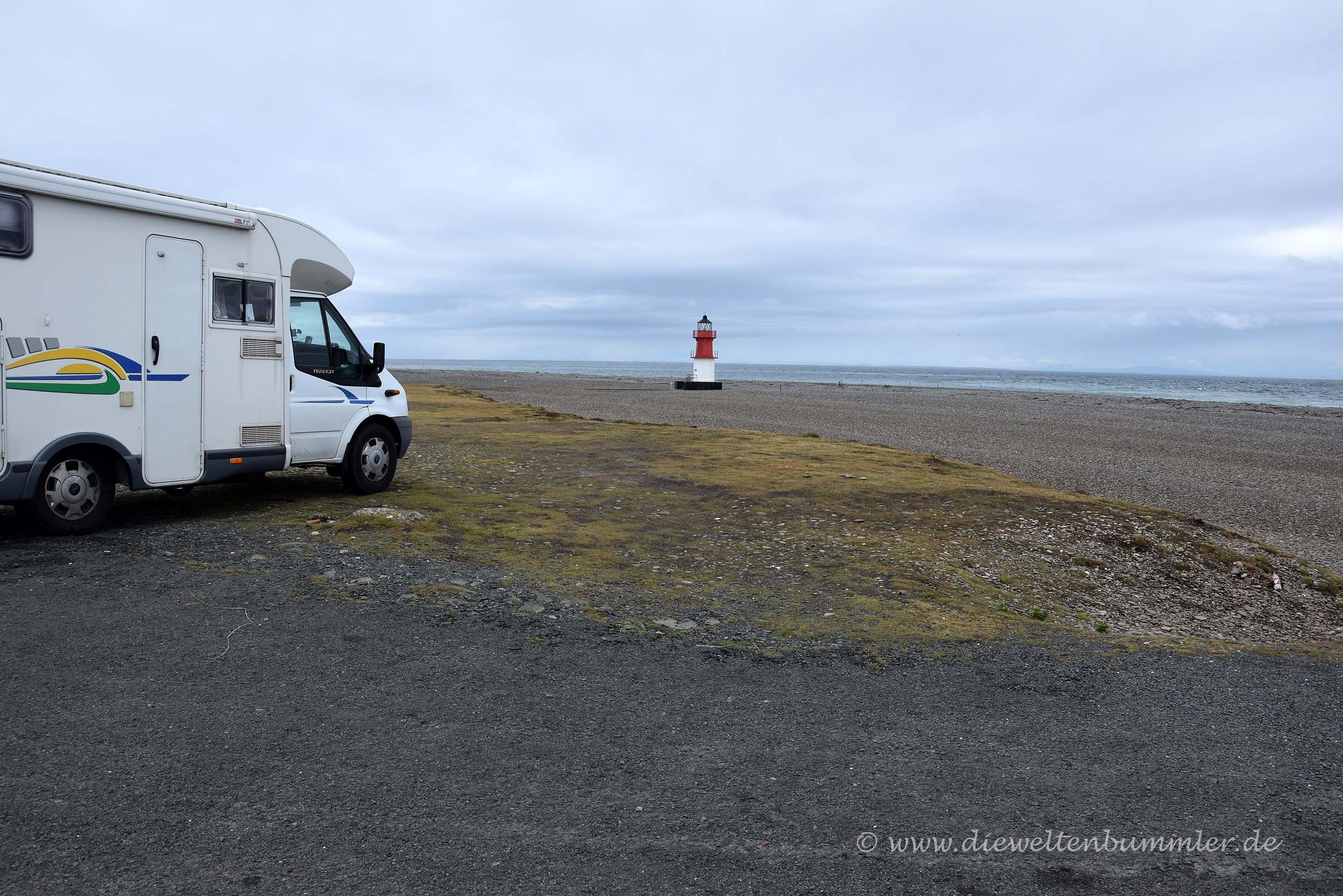 Ein einsames Wohnmobil stand in der Nähe des Leuchtturms und hatte scheinbar dort übernachtet. Auch wir fanden, dass dies eigentlich ein netter Platz zum Übernachten gewesen wäre. Hätte man das vorher mal gewusst. Etwas seltsam waren jedoch die vielen Betonfundamente, die darauf schließen ließen, dass sich hier mal etwas Größeres befunden haben musste. Aber was an diesem Point of Ayre gestanden hat, haben wir leider nicht herausgefunden. Der Leuchtturm an diesem Point of Ayre ist aber immerhin der älteste der Insel und außerdem ist die Nordspitze der Insel der nächstgelegene Punkt zum britischen Festland. Kein Wunder also, dass wir hier die schottische Küste schon deutlich sehen konnten.