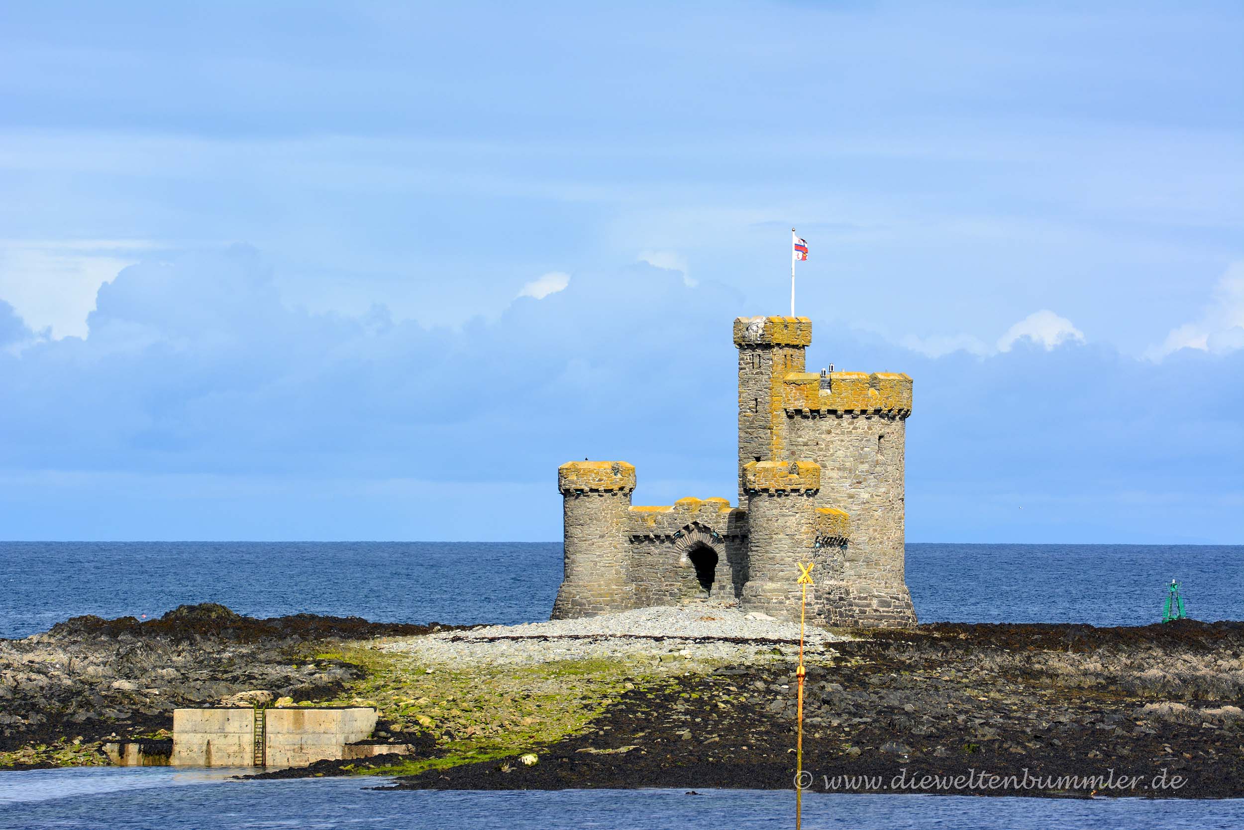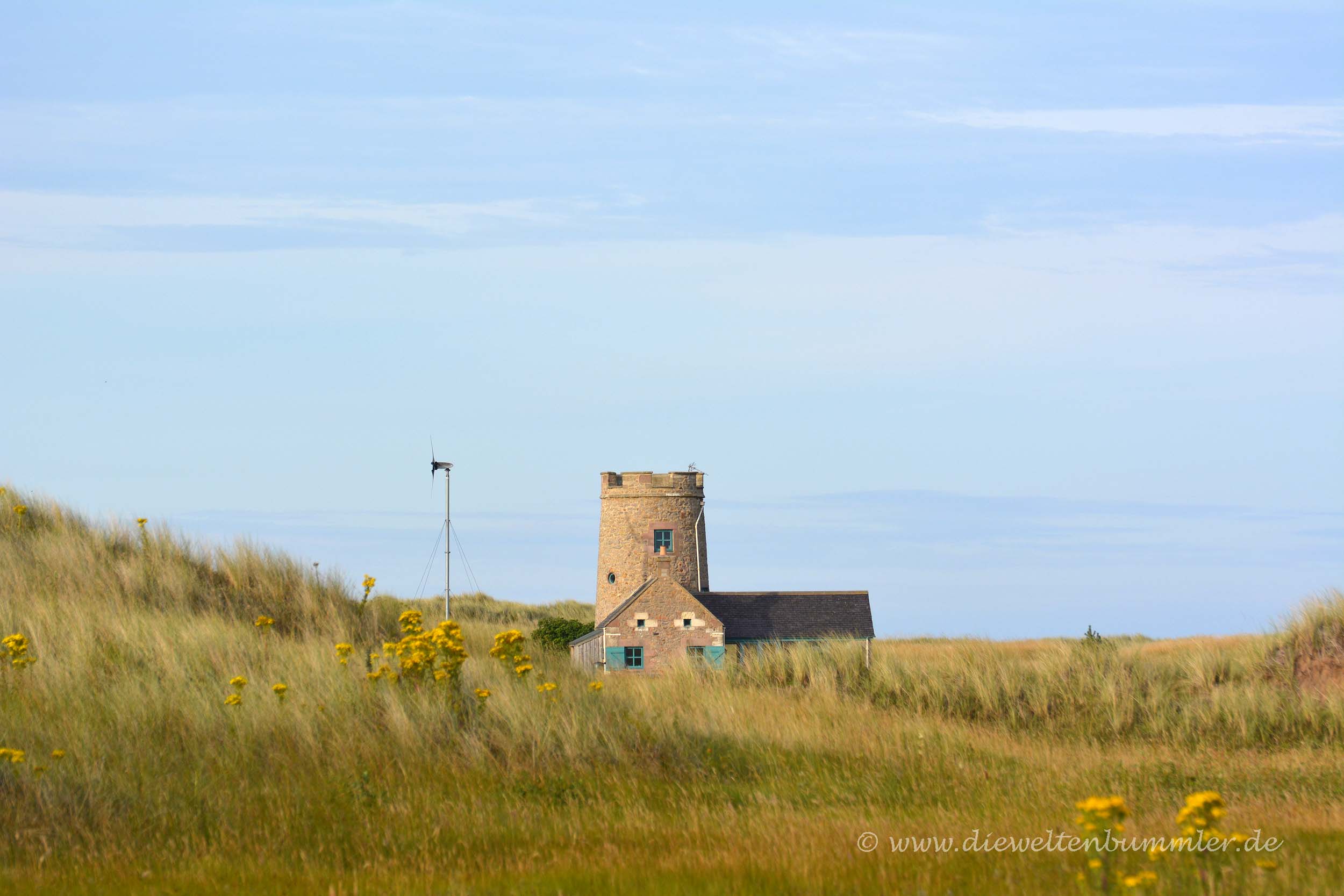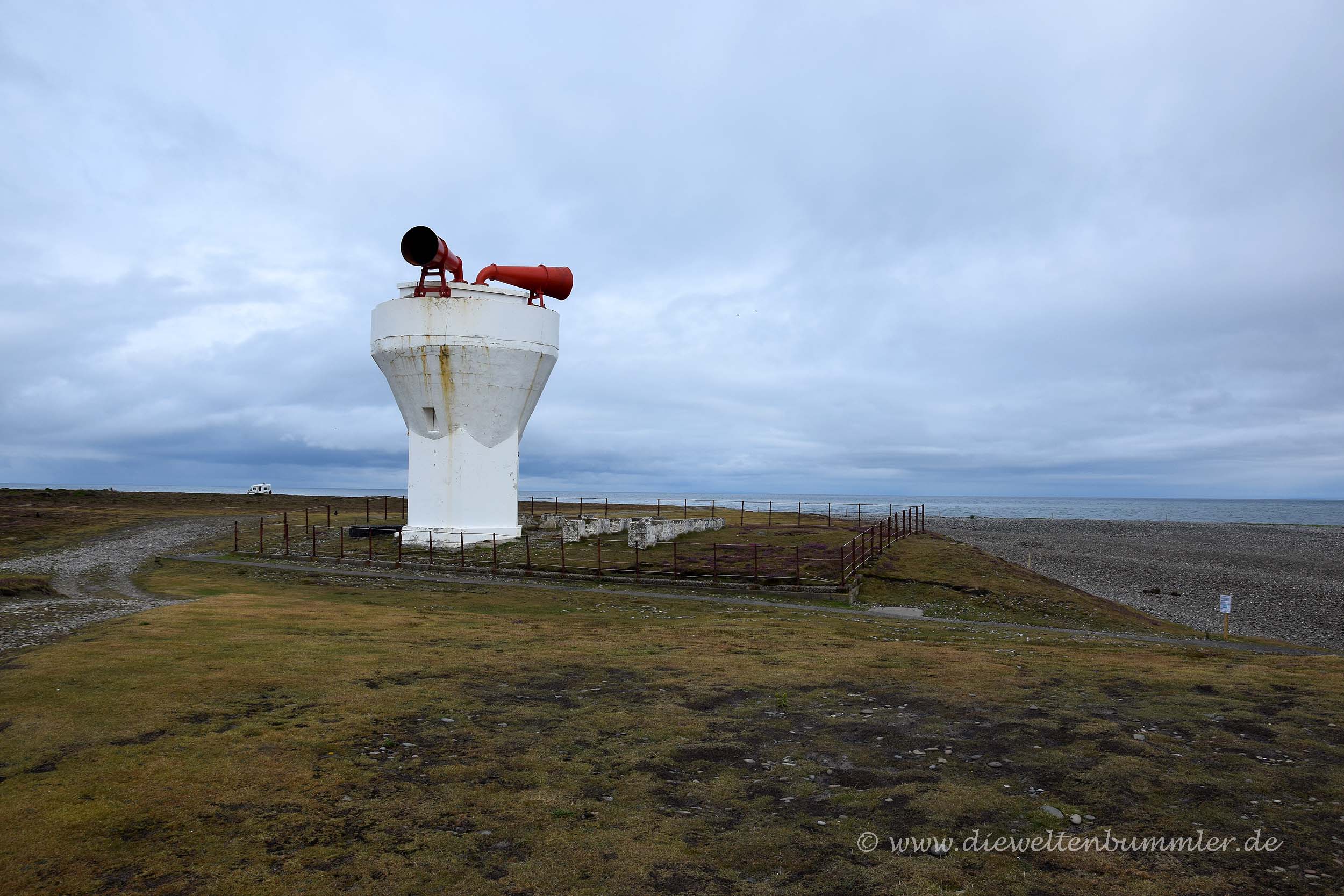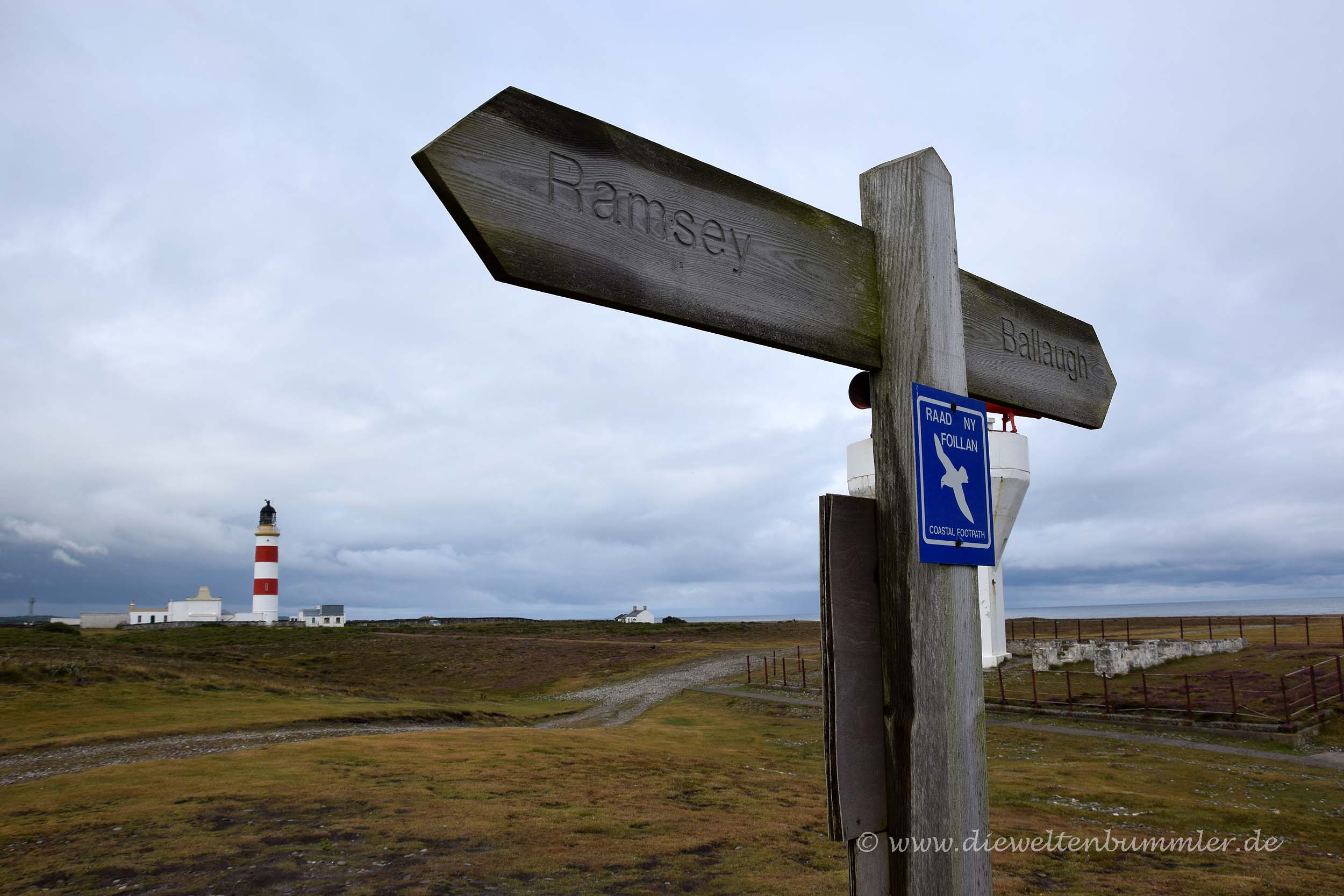 Die Hoffnung verflog am nächsten Morgen recht schnell, denn so wie der Vortag endete, so begann auch dieser Tag. Aber wir wollten uns den Aufenthalt auf der Isle of Man nicht durch das Wetter vermiesen lassen. Als Erstes fuhren wir am frühen Morgen zur nördlichsten Spitze der Insel, wo es nicht nur einen einsamen Leuchtturm gab, sondern auch ein Vogelschutzgebiet und ein ziemlich großes Nebelhorn. Letzteres war ziemlich beeindruckend und ich wollte nicht neben dem Nebelhorn stehen, wenn es mal ertönen sollte.