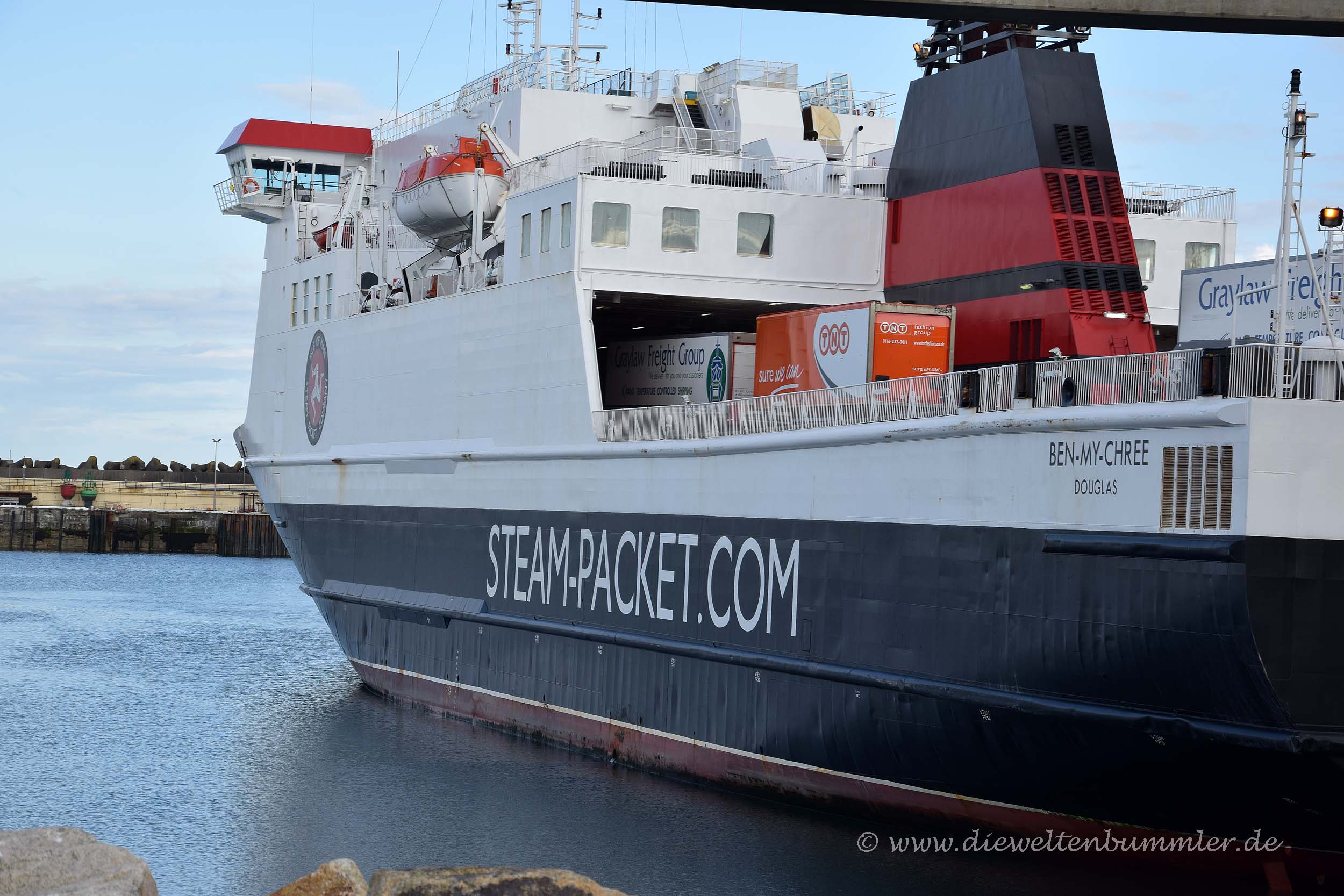 Weil das aber nicht eigentlich Sache des Zolls ist, sondern eher die Fährgesellschaft betrifft, wurde sogleich mal jemand von der Gesellschaft geholt, der sich das doch bitte mal anschauen möge. Dass es sich um ein ganz normales Wohnmobil handelt, in dem zwei Gasflaschen im Flaschenkasten Platz haben, ist überflüssig zu erwähnen. Wenn einmal die Staatsmacht rollt, dann rollt sie eben. Aber es gibt eben auch Leute, die Ahnung haben und das zeigte sich, als der Mitarbeiter der Fährgesellschaft kam, einen sehr kurzen Blick in den Flaschenkasten warf und den Zöllnern sagte, dass dies völlig okay und normal sei. Es überraschte mich ein wenig, denn wir waren definitiv nicht die Ersten mit einem Wohnmobil auf der Isle of Man. Ganz im Gegenteil, während unseres Aufenthaltes sahen wir sogar ganz viele Wohnmobile, die auf der Insel zugelassen sind.