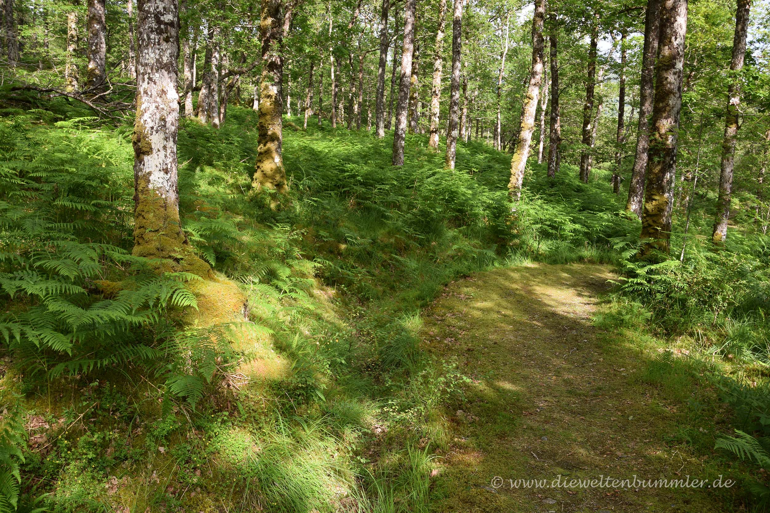 Es war schon später Nachmittag, als wir weiter fuhren und eigentlich bot sich dieser Wanderparkplatz als fast ideale Übernachtungsmöglichkeit an. Doch wenn ich in einem Land wie Schottland bin, möchte ich beim freien Stehen weniger in einem Wald parken, sondern lieber versuchen, einen weiten Blick in die Highlands oder über einen See zu haben. Außerdem wussten wir schon, was als nächstes kommen würde. Und dieses nächste Ziel wollten wir am nächsten Tag nicht einfach nur durchqueren, sondern lieber auch etwas länger davon haben.