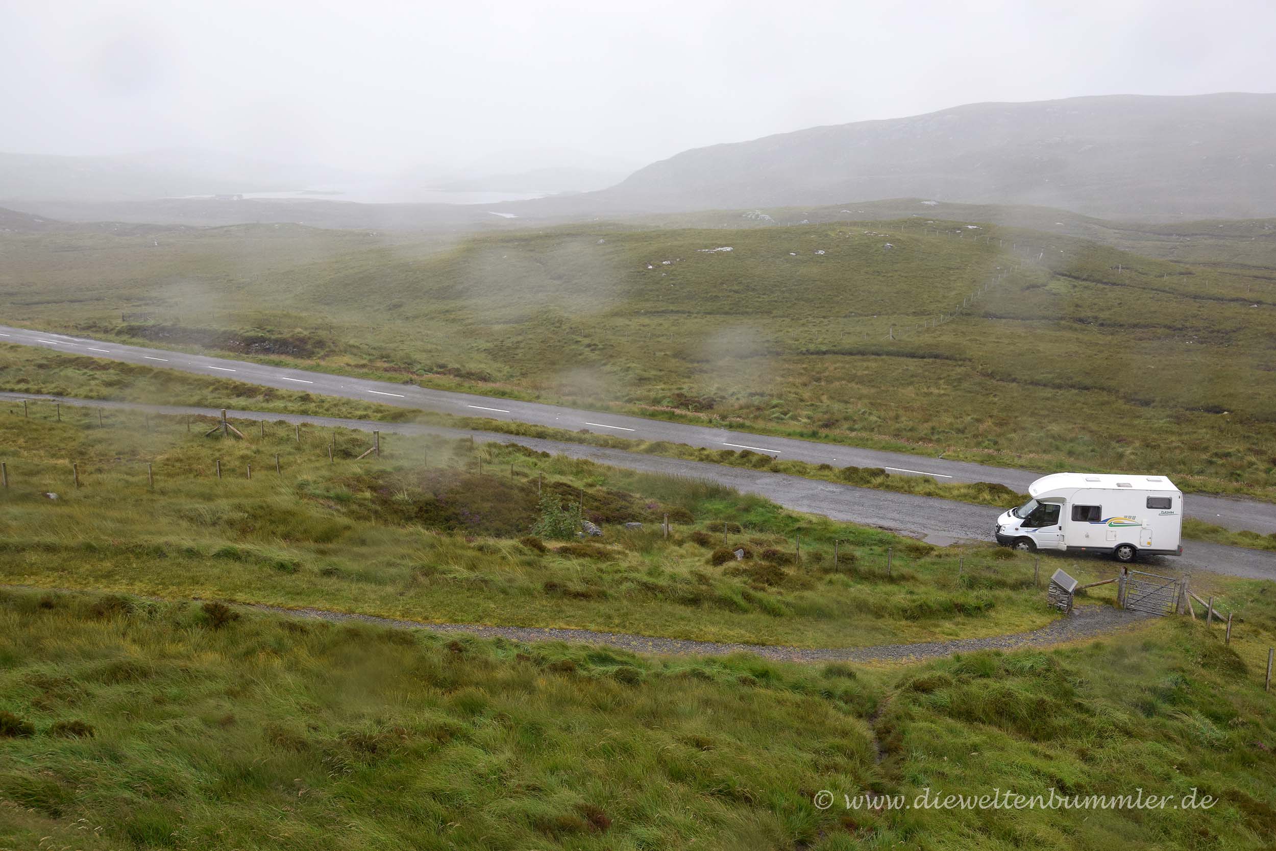 Wieder einmal waren wir auf dieser Reise etwas wehmütig. Denn wir wussten, dass wir so schnell nicht wieder auf die Äußeren Hebriden kommen würden. Und hinzu kam noch, dass wir bei diesem Inselaufenthalt nicht gerade vom Wetter verwöhnt wurden. Ähnliches hatten wir ja bereits auf der Isle of Man erlebt, als wir einige Tage zuvor noch mit dem Wohnmobil durch England und Wales unterwegs waren.