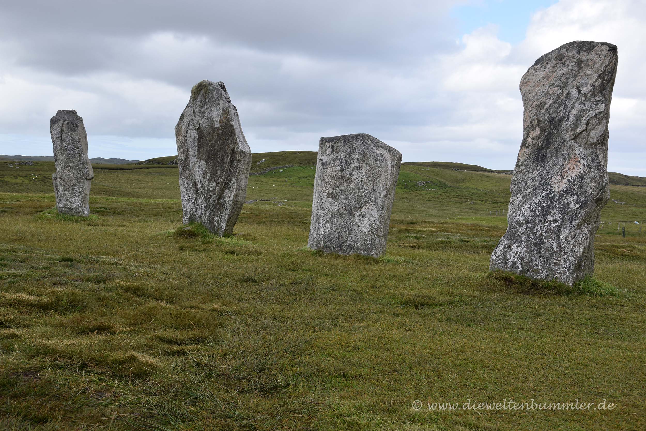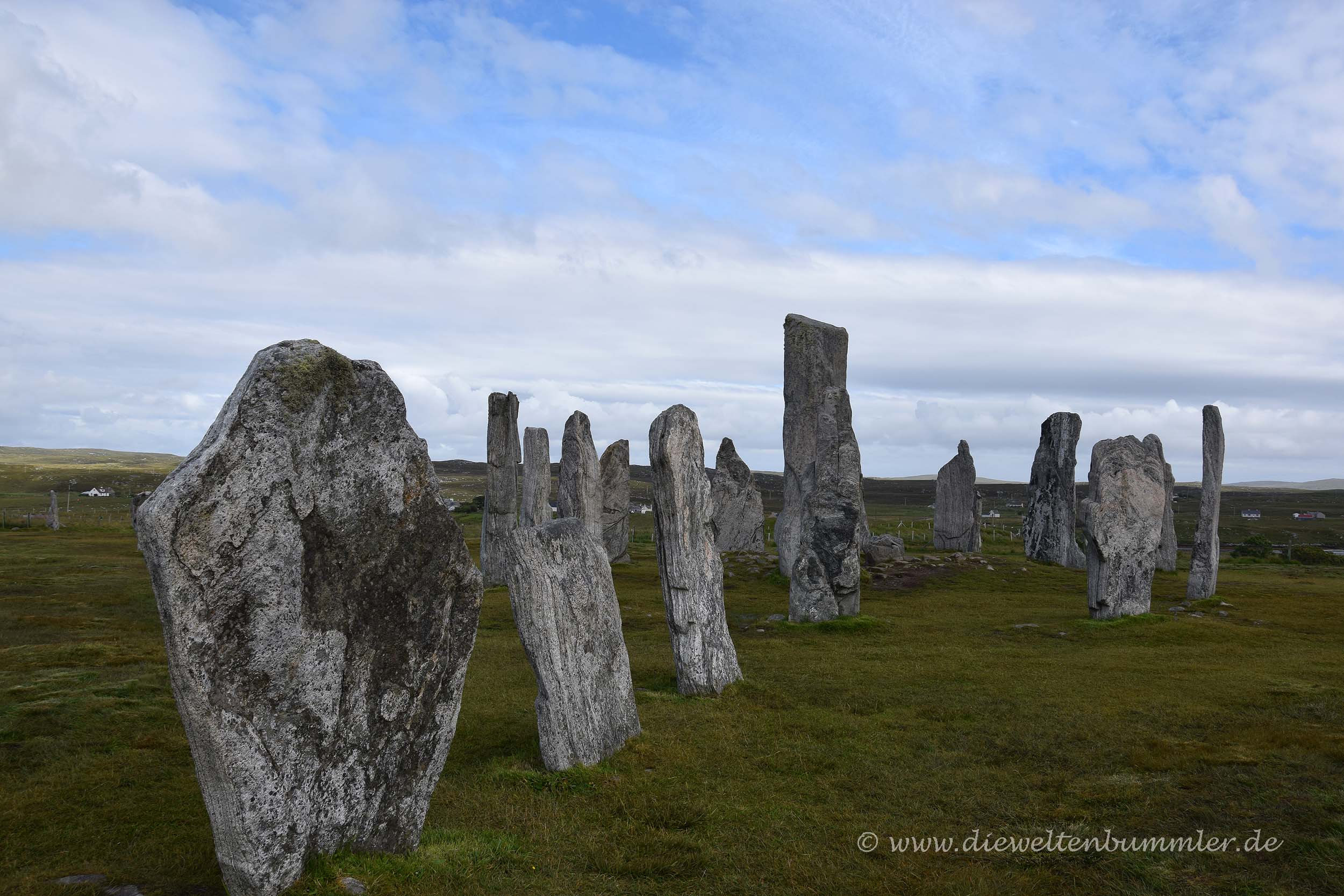 Zuerst wollten wir nämlich zu dem Wahrzeichen der Insel, zu den Callanish Steinen. Diese sind ähnlich bedeutend wie Stonehenge im Süden von England, kommen auch auf ein ähnliches Alter, sind aber einfach deutlich unbekannter. Das hat natürlich zur Folge, dass man sich bis zu den aufrecht stehenden Steinen bewegen und sie sogar berühren darf. Und zu allem Überfluss muss man hier noch nicht einmal Eintritt zahlen.