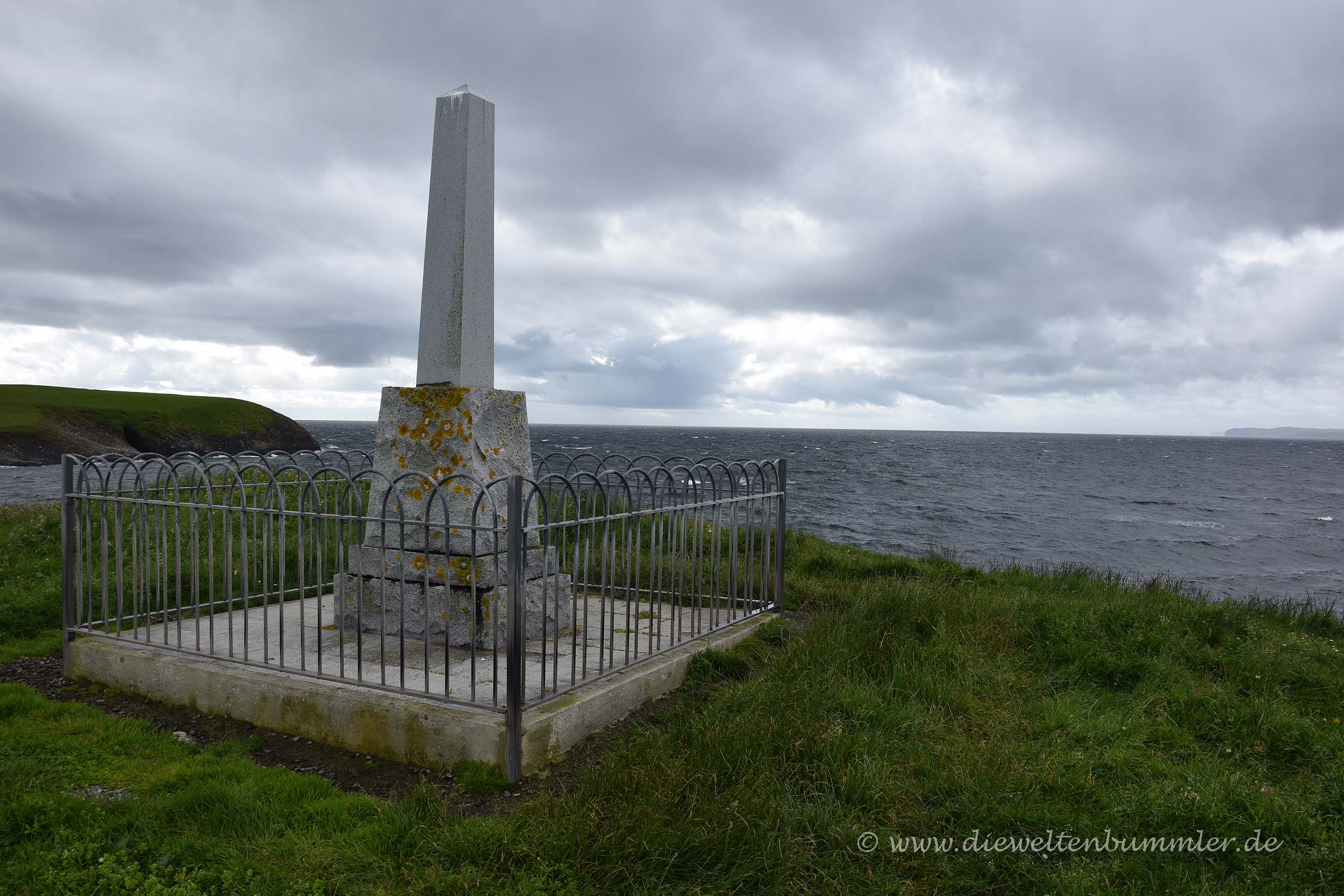 Der Tag begann endlich mal wieder trocken. Doch das Wetter hatte einen Haken, denn es war extrem windig. Der Westwind zog über die Insel und rüttelte ganz schön an unserem Wohnmobil. Das gab uns schon mal einen kleinen Ausblick auf die Fährüberfahrt, die wir an diesem Tag noch vor uns hatten. Wir überquerten zunächst die Insel von West nach Ost und ließen uns praktisch vom Rückenwind nach Stornoway tragen. Dort fuhren wir etwas außerhalb zu einem Denkmal, das zufälligerweise an ein tragisches Schiffsunglück vor der hiesigen Küste erinnert. Bei dem Unglück der HMS Iolaire starben über 200 Personen, obwohl das Schiff nur wenige Meter vor dem Hafen von Stornoway unterging.
