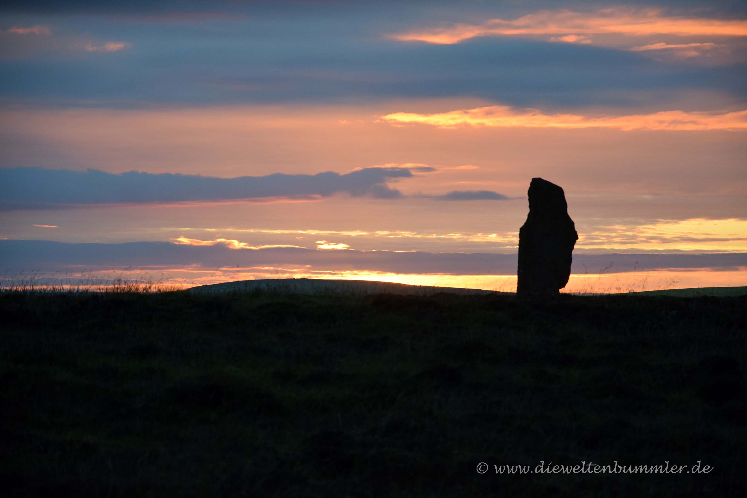 Gegenüber der Kathedrale warfen wir auch noch einen Blick in das kleine und kostenlose Orkney-Museum. Zum Abschluss des Stadtrundgangs füllten wir unsere Vorräte bei Tesco auf und fuhren schließlich noch einmal zum Ring of Brodgar. Dort hatte es uns bei der Ankunft auf den Orkney-Inseln so dermaßen gut gefallen, dass wir den Steinkreis einfach nochmal genießen wollten. Auf dem Parkplatz aßen wir noch eine Kleinigkeit und gingen dann nochmal zu jedem einzelnen der Steine. Dieser Steinkreis hatte uns irgendwie magisch in seinen Bann gezogen. Nur das Wetter spielte leider nicht mehr ganz so schön mit, wie bei unserer Ankunft zwei Tage zuvor. Aber zu der Stimmung an dem Tag passte das trübselige Wetter traurigerweise.