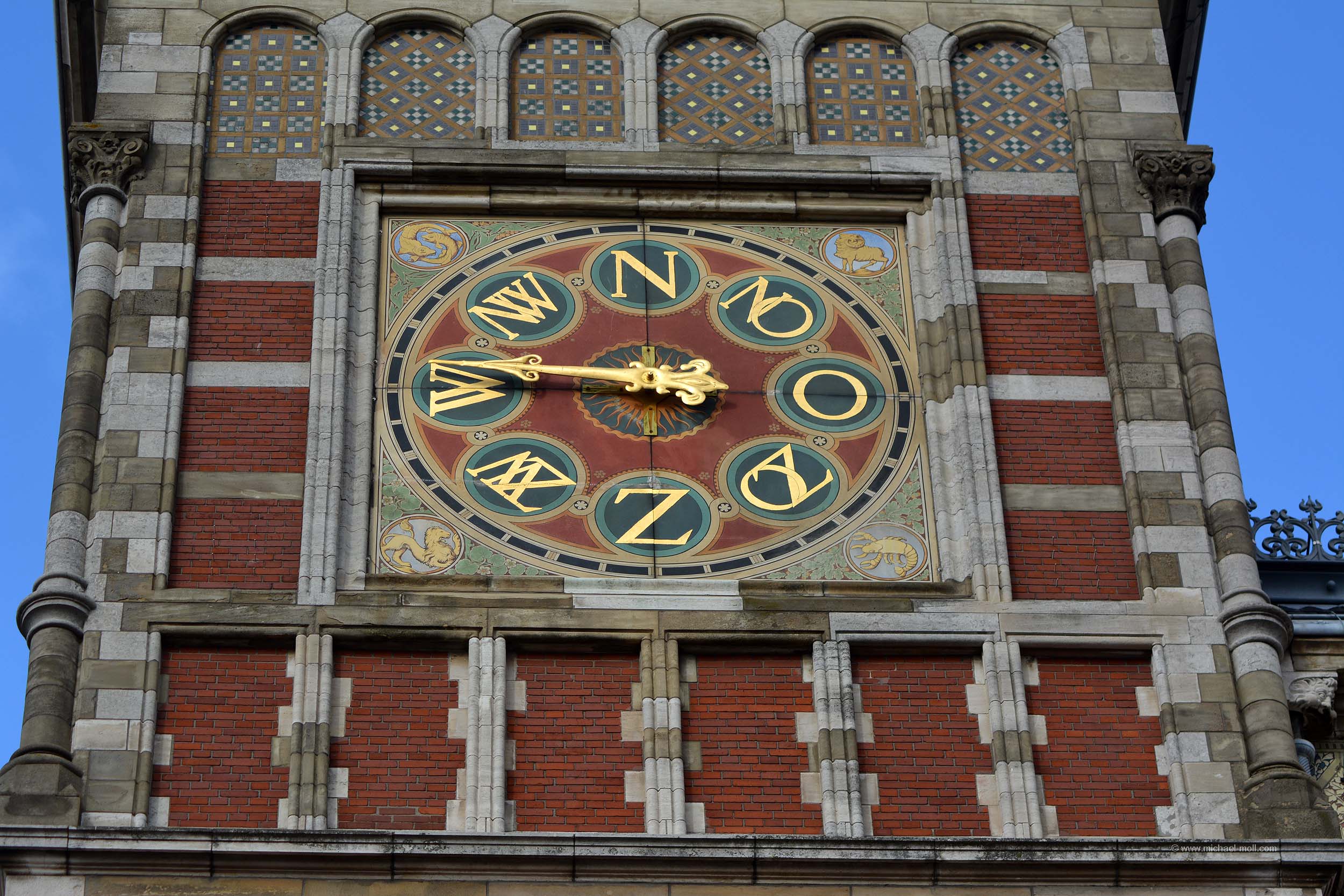 Beim Blick auf die beiden Türme am Amsterdamer Bahnhof fand ich es ganz drollig, dass an dem rechten Turm eine gewöhnliche Uhr zu sehen ist, während die linke Uhr die Richtung anzeigt, aus der der Wind bläst. Sieht im ersten Augenblick auch wie eine Uhr aus, ist aber keine. Apropos Wind. Ja, es war noch immer sehr windig und dementsprechend auch kühl, aber wenigstens gab es an diesem Nachmittag keinen Niederschlag.