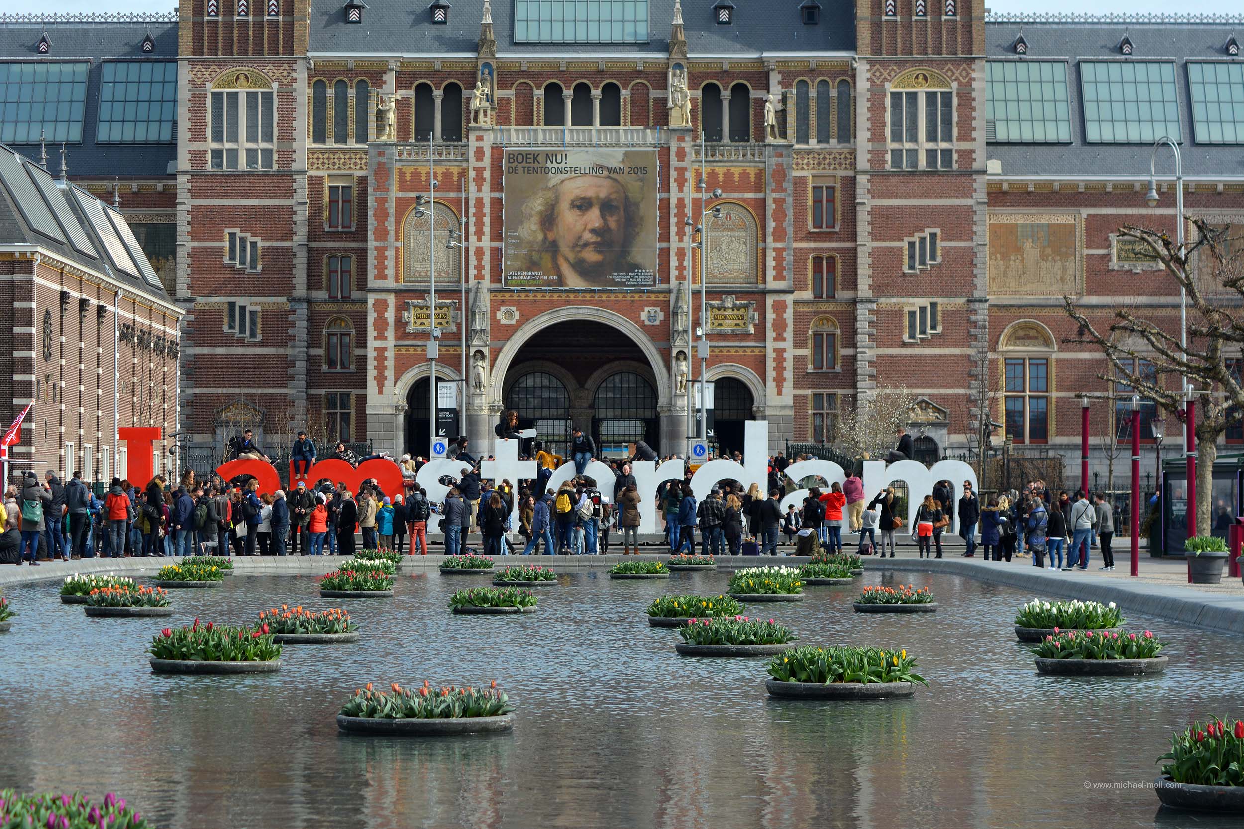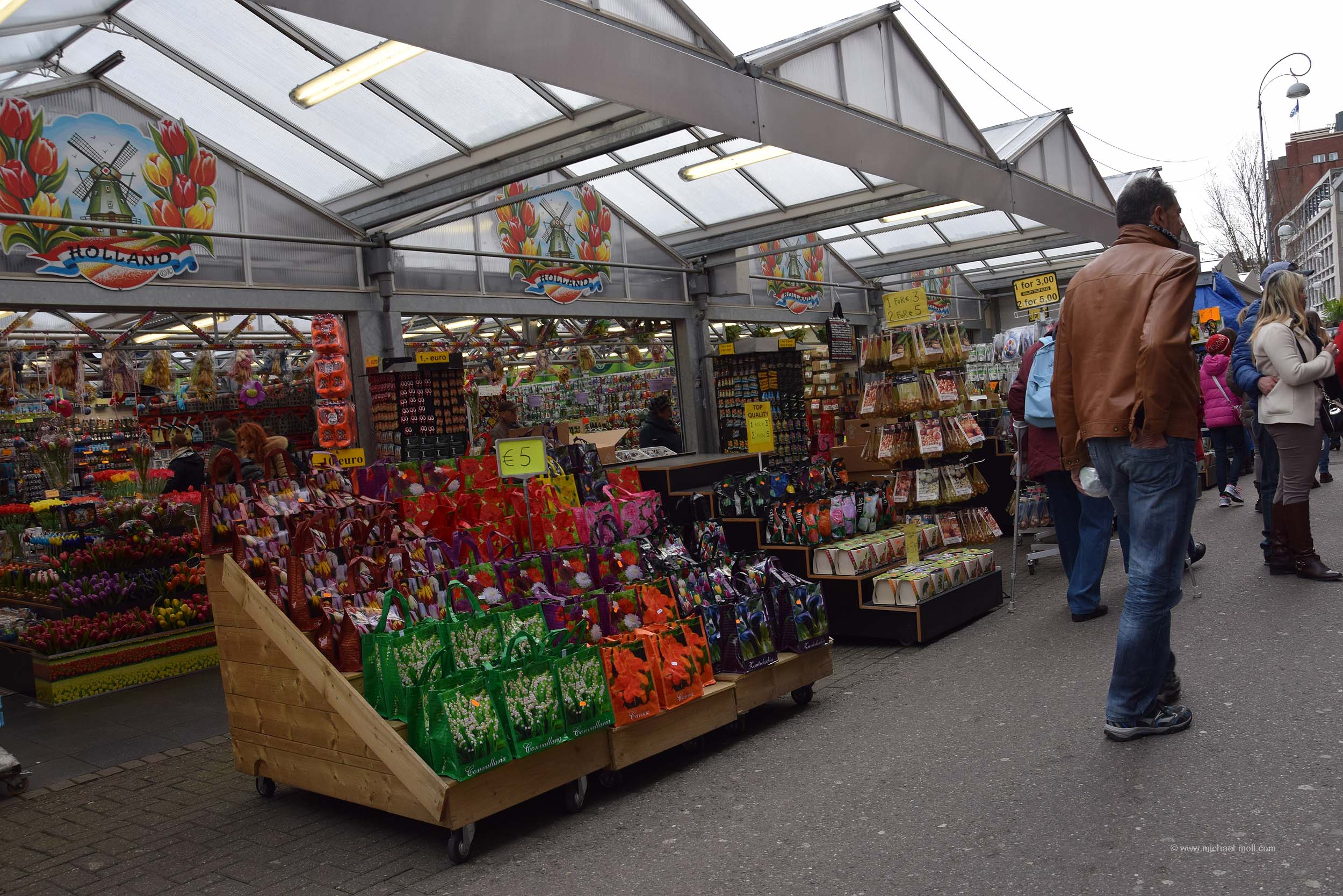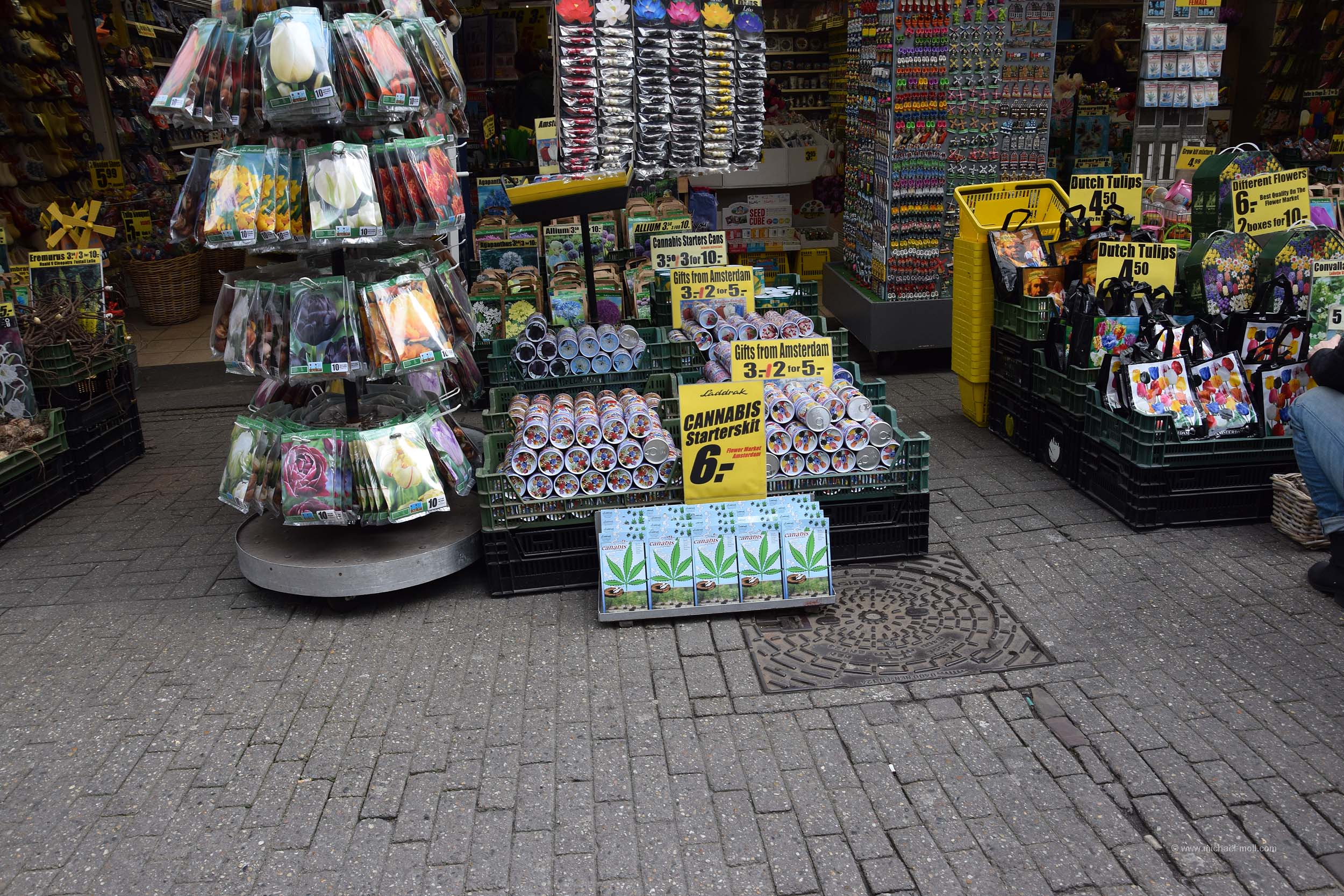 Im Süden der Altstadt erreichten wir das Rijksmuseum, dass wir zwar grundsätzlich auch gerne besucht hätten, immerhin befinden sich zu diesem Zeitpunkt einige Rembrandt-Werke in der Ausstellung. Doch auch hier waren lange Wartezeiten einzuplanen, genauso wie im nahegelegenen van Gogh-Museum. Hier war es sogar besonders ausgeprägt. Zunächst musste man sich nämlich an einem Pavillon für die Tickets anstellen und später natürlich noch direkt am Museum, um Einlass zu erhalten. Wenn man also diese ganzen Museen in Amsterdam besichtigen möchte, muss man Zeit mitbringen. Das stand aber bei uns nicht auf dem Programm. Daher schlenderten wir zwar noch ein wenig durch die Gassen zwischen den Grachten und machten uns langsam auf den Rückweg zum Hauptbahnhof. Lediglich die „richtige“ Fußgängerzone enttäuschte uns dann doch noch. Denn diese unterschied sich kein bisschen von einer typischen Fußgängerzone irgendeiner Provinzstadt. Aber man kann ja nicht alles haben. Da schauten wir uns dann doch lieber noch den Blumenmarkt an, der sogar Cannabis-Startersets bereithält.