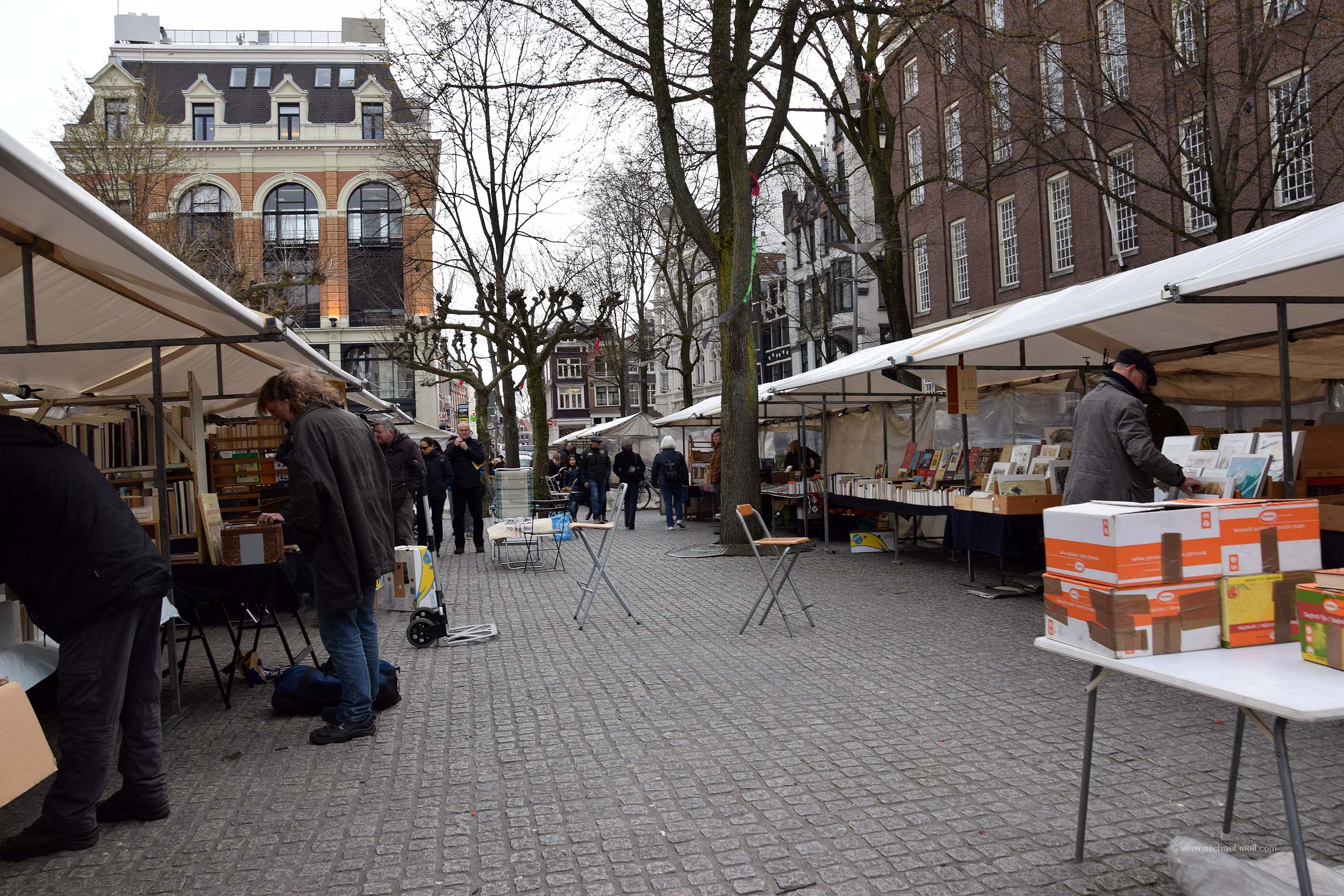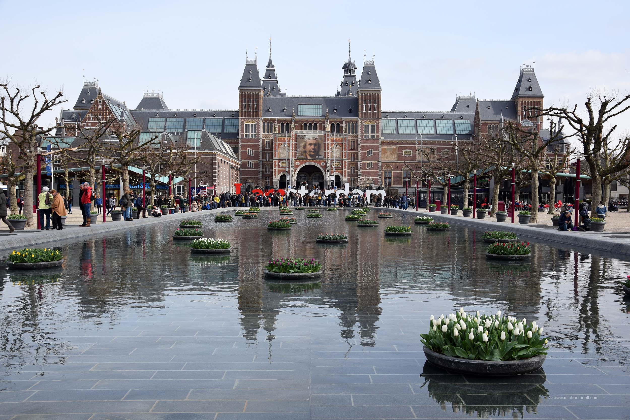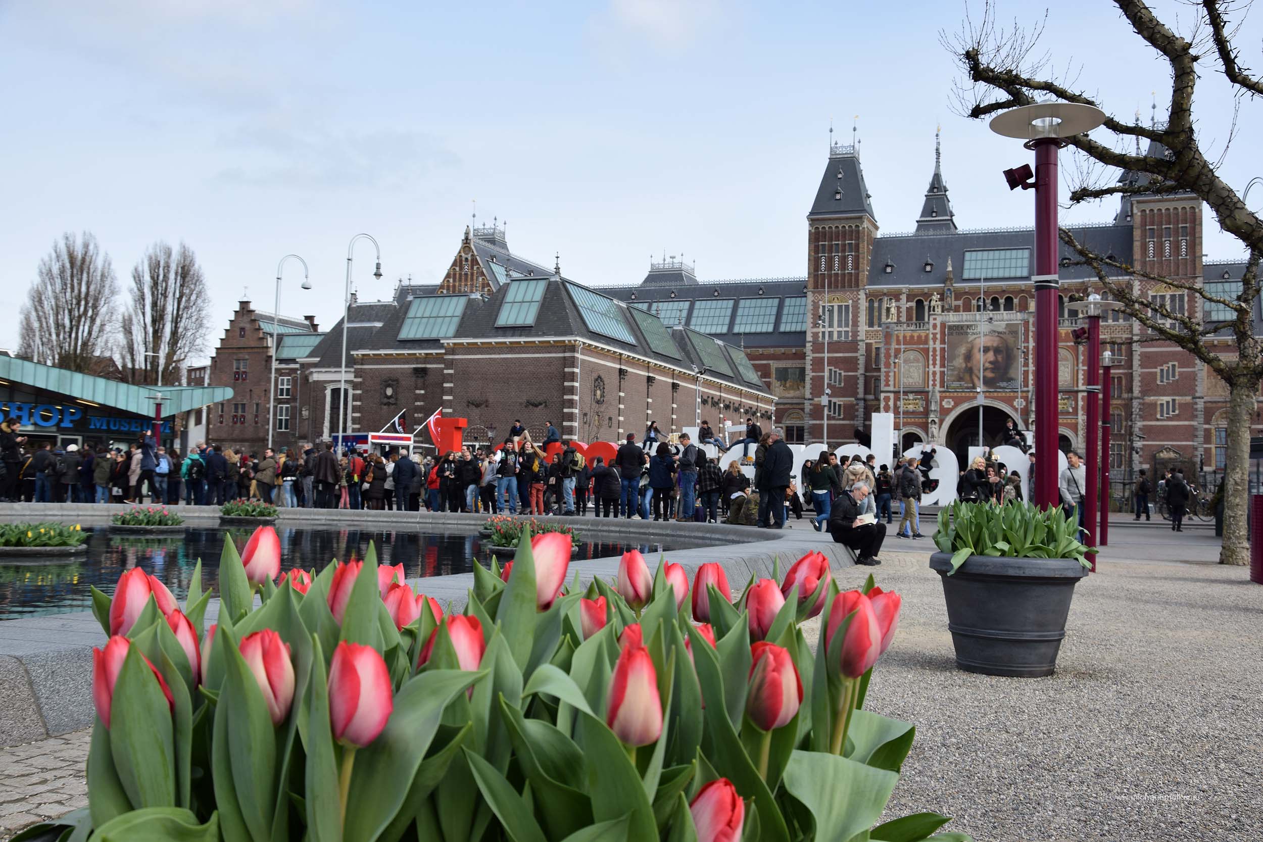Im Süden der Altstadt erreichten wir das Rijksmuseum, dass wir zwar grundsätzlich auch gerne besucht hätten, immerhin befinden sich zu diesem Zeitpunkt einige Rembrandt-Werke in der Ausstellung. Doch auch hier waren lange Wartezeiten einzuplanen, genauso wie im nahegelegenen van Gogh-Museum. Hier war es sogar besonders ausgeprägt. Zunächst musste man sich nämlich an einem Pavillon für die Tickets anstellen und später natürlich noch direkt am Museum, um Einlass zu erhalten. Wenn man also diese ganzen Museen in Amsterdam besichtigen möchte, muss man Zeit mitbringen. Das stand aber bei uns nicht auf dem Programm. Daher schlenderten wir zwar noch ein wenig durch die Gassen zwischen den Grachten und machten uns langsam auf den Rückweg zum Hauptbahnhof. Lediglich die „richtige“ Fußgängerzone enttäuschte uns dann doch noch. Denn diese unterschied sich kein bisschen von einer typischen Fußgängerzone irgendeiner Provinzstadt. Aber man kann ja nicht alles haben. Da schauten wir uns dann doch lieber noch den Blumenmarkt an, der sogar Cannabis-Startersets bereithält.