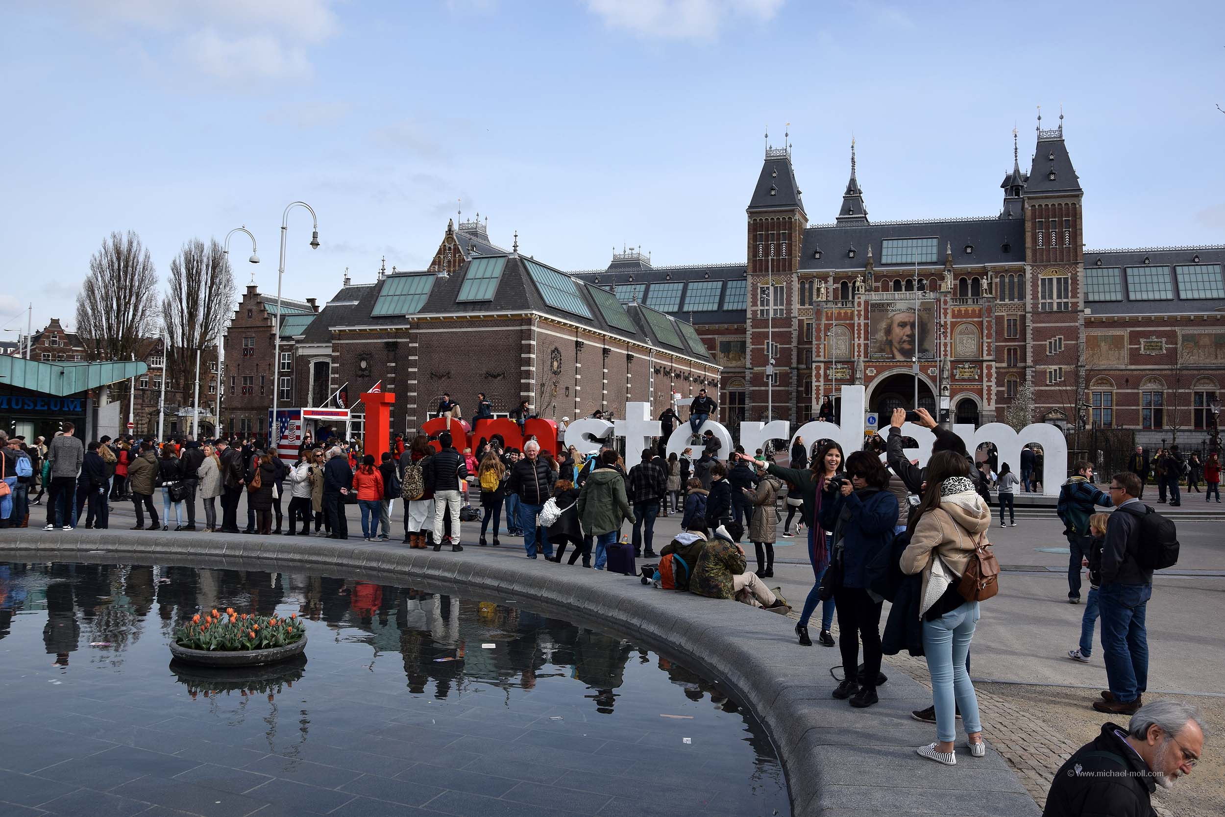 Ich fahre ja selber gerne Fahrrad und das Radwegenetz ist in Amsterdam scheinbar sehr gut ausgebaut. Doch manchmal kam ich mir vor, als würde ich neben einer Schnellstraße stehen, obwohl die vermeintliche Straße bloß ein Radweg war. Klassische Hollandräder, die völlig abgewrackt aussehen und nur über eine Rücktrittbremse verfügen teilten sich den Radweg mit Radlern, die ihr Fahrrad als Lastenesel nutzen. Und das alles in einer Geschwindigkeit, die ich schon recht faszinierend fand. Hat natürlich den Vorteil, dass weniger Autos herumfahren oder im Stau stehen. Nur wirkte es auf mich eben hektischer. Und ich bin ja doch so manche Metropole gewohnt. Es kann aber auch einfach sein, dass ich gedanklich noch in meiner Reise-Winterpause war.