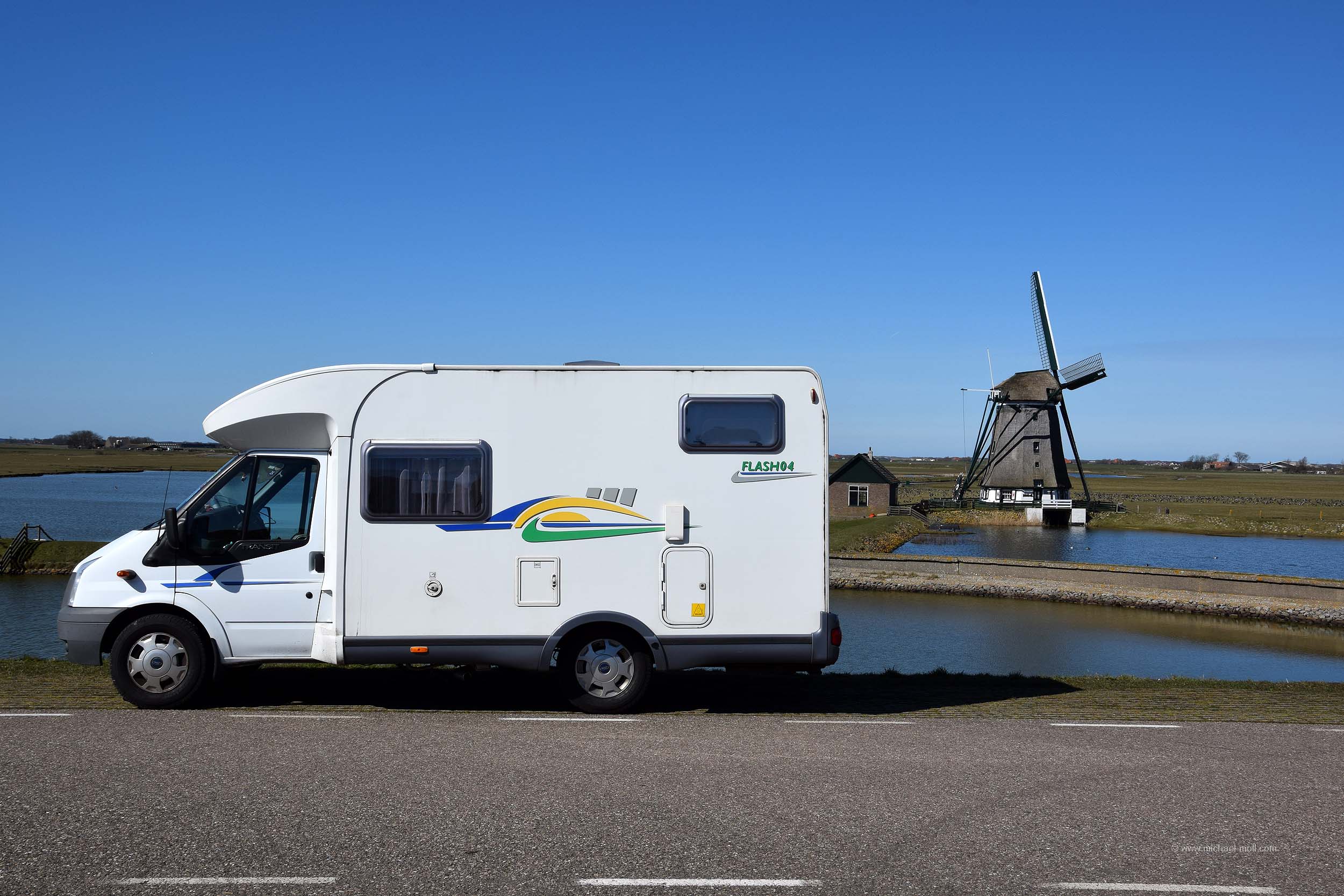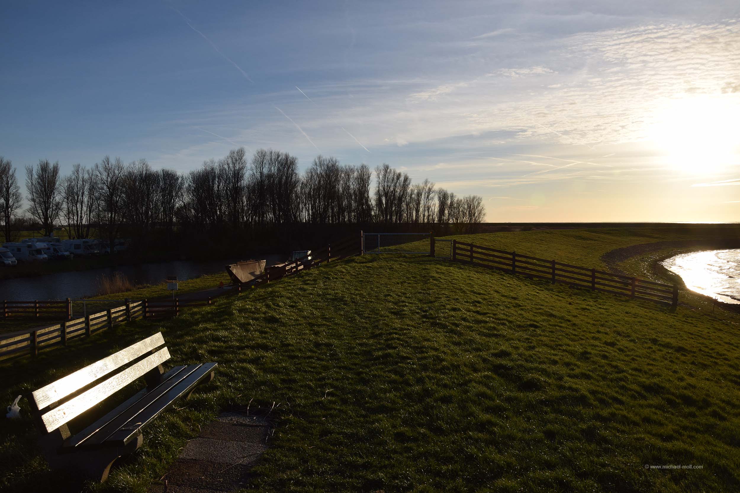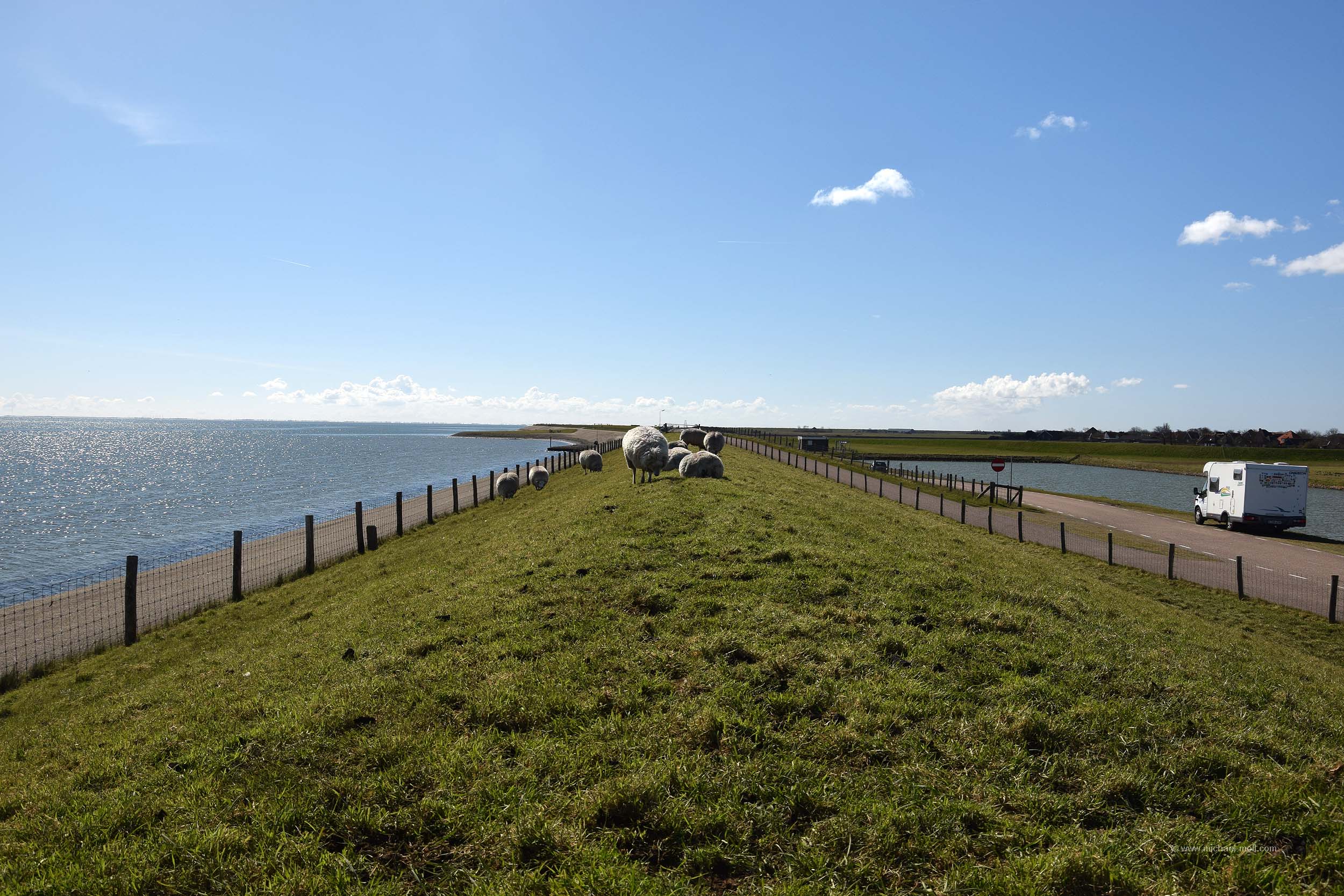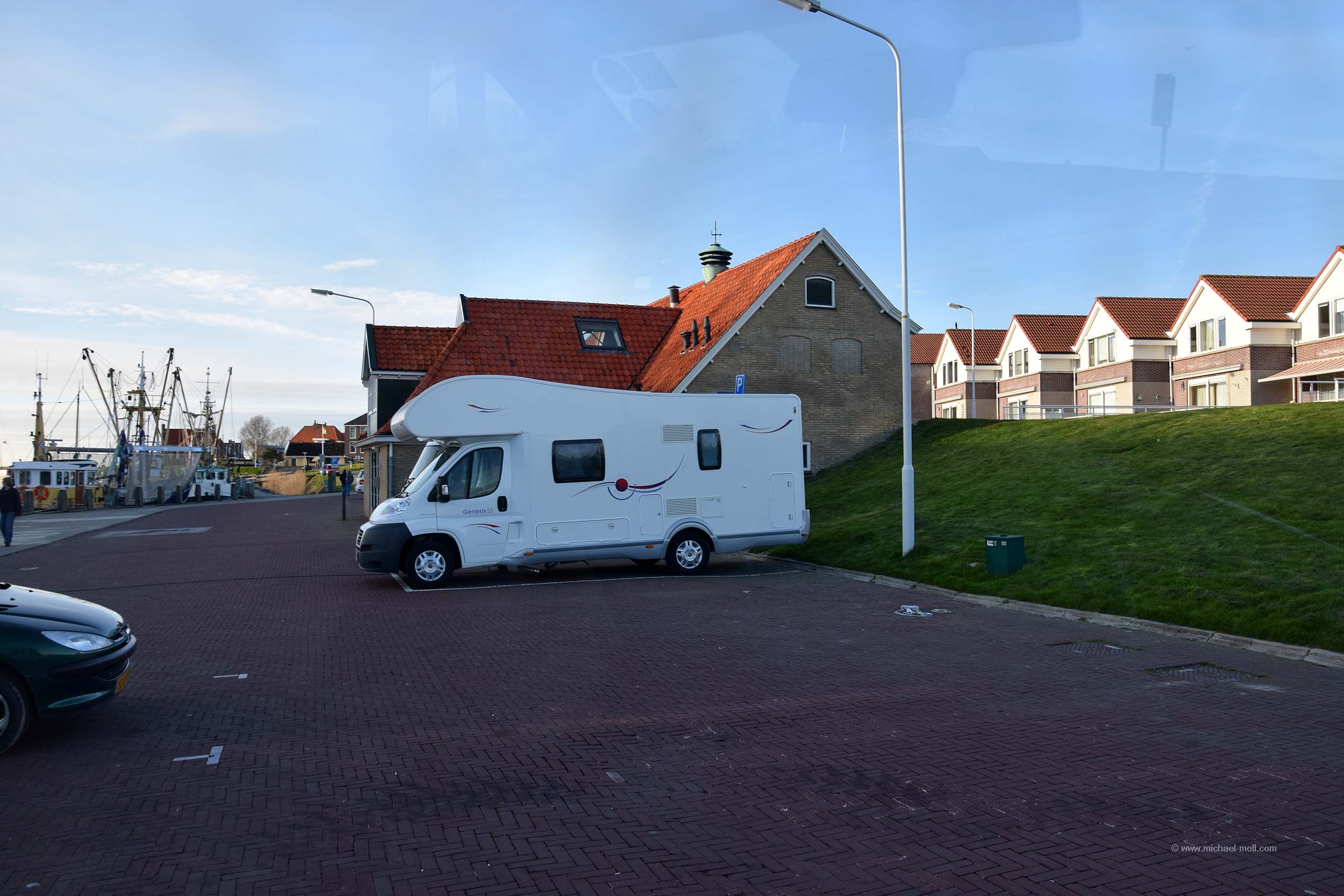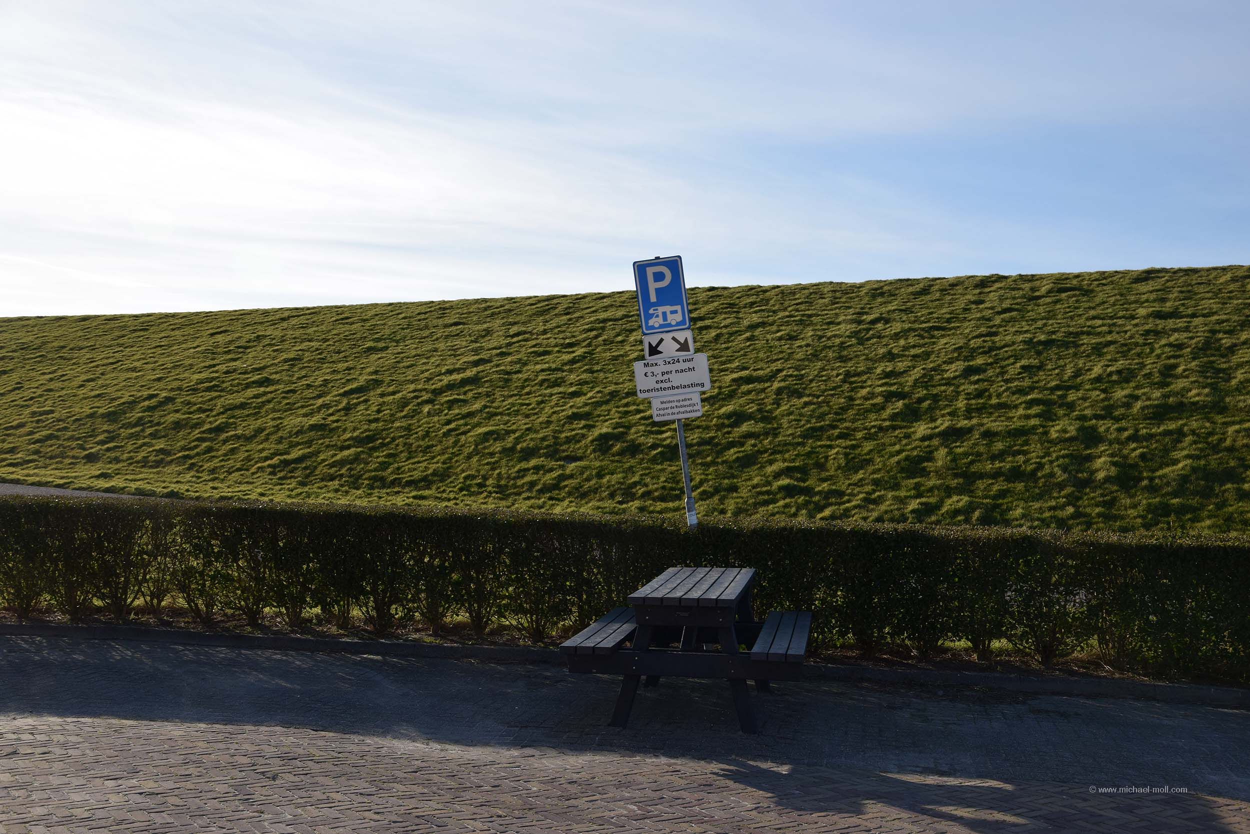 Am Ende des Damms machten wir uns auf die Suche nach einem Wohnmobilstellplatz. Wir hatten schon welche in Aussicht, so zum Beispiel in Zurich und in Makkum, doch diese sagten uns nicht zu oder waren voll. Und so fuhren wir immer am Deich des IJsselmeers entlang, bis wir bei Molkwerum zufällig einen kleinen Stellplatz fanden, der zu einem Campingplatz gehörte. Für 12 Euro die Nacht war das unser letzter Schlafplatz in der Niederlande.