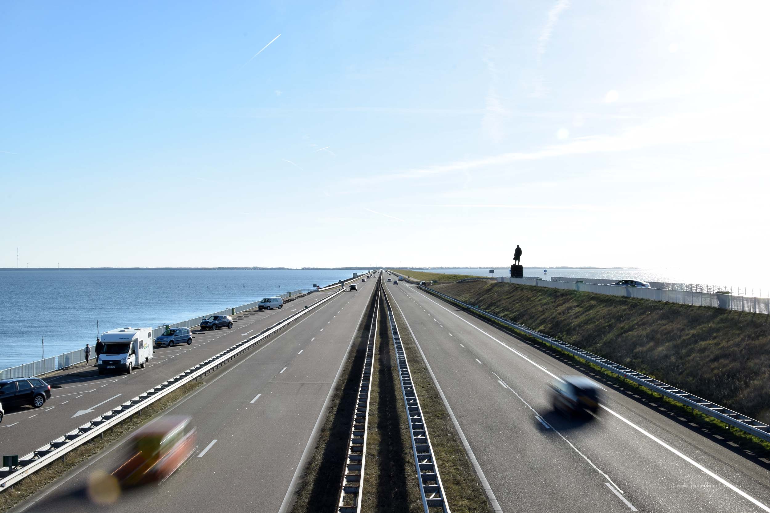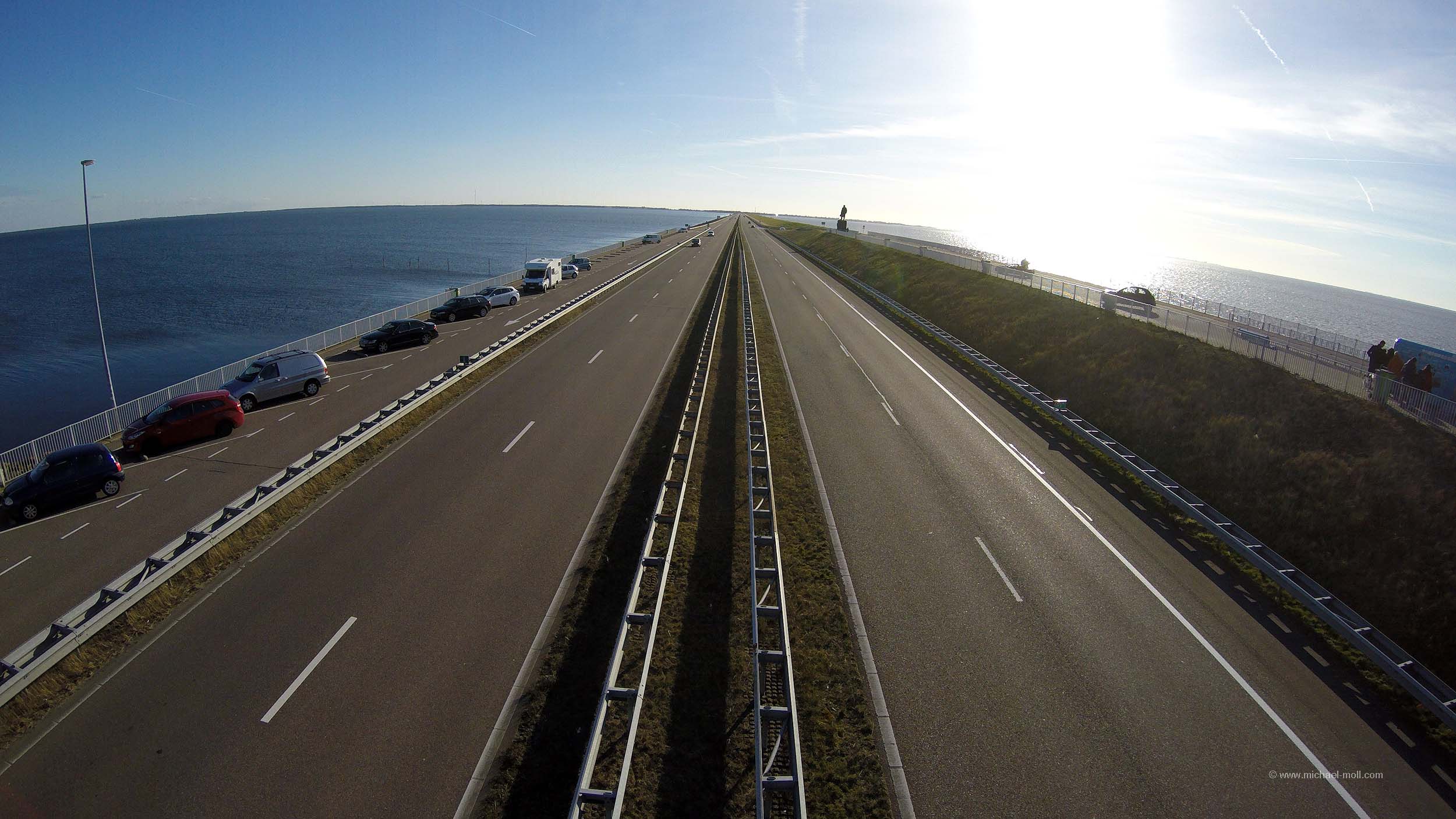 Doch dann war es wirklich Zeit, von der Insel Abschied zu nehmen. Immerhin ist es auch dementsprechend spät geworden. Mit der Fähre ging es wieder schnell nach Den Helder, wo wir zügig bis Den Oever fuhren. Dort lernten wir dann den Abschlussdeich kennen, der im letzten Jahrhundert gebaut wurde und das IJsselmeer entstehen ließ. Mir war bis zu diesem Zeitpunkt gar nicht so recht bewusst, wie lang dieser Damm eigentlich ist. Er bringt es immerhin auf schnurgerade 32 Kilometer, die nur von einer Raststätte und einem Aussichtsturm unterbrochen werden.