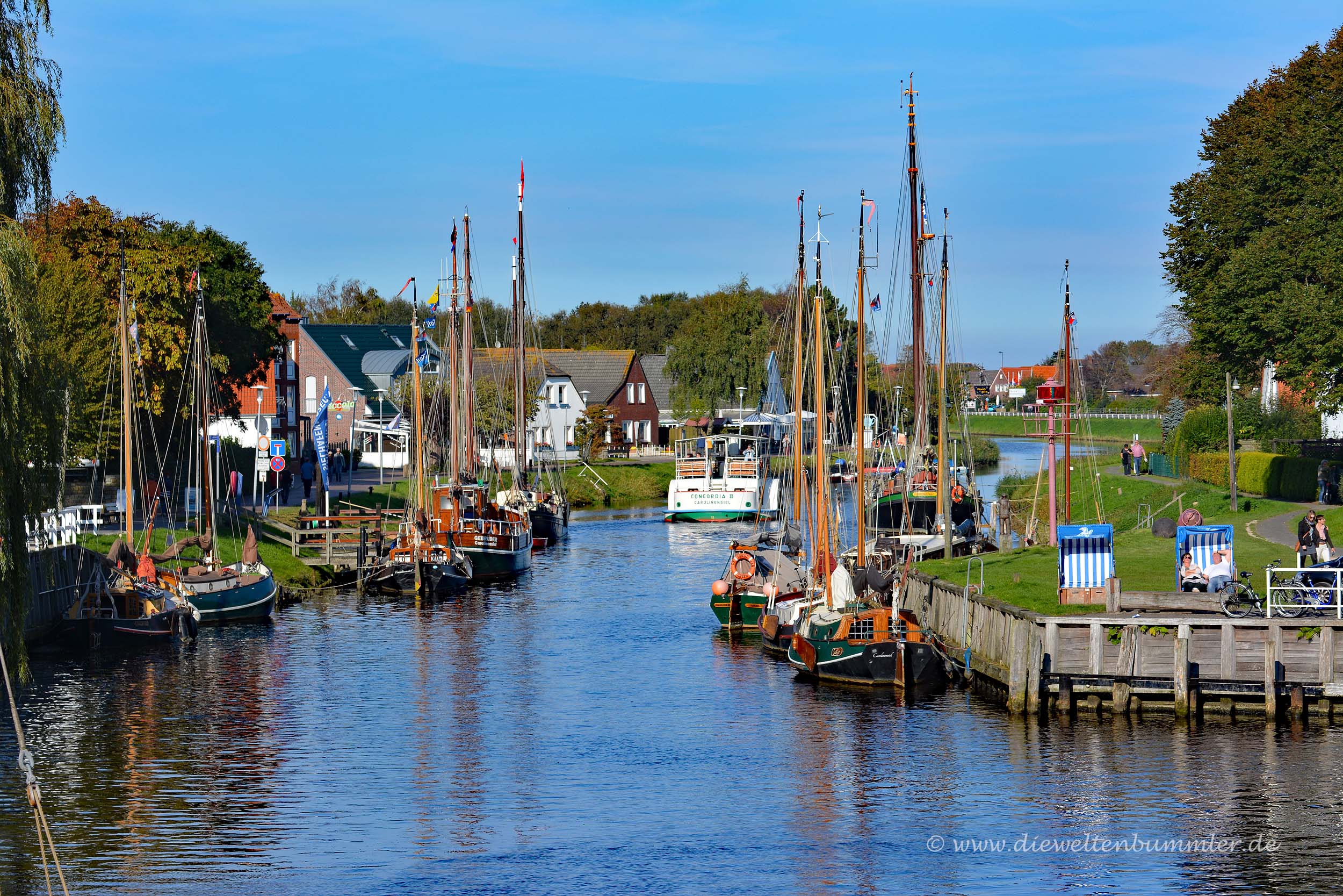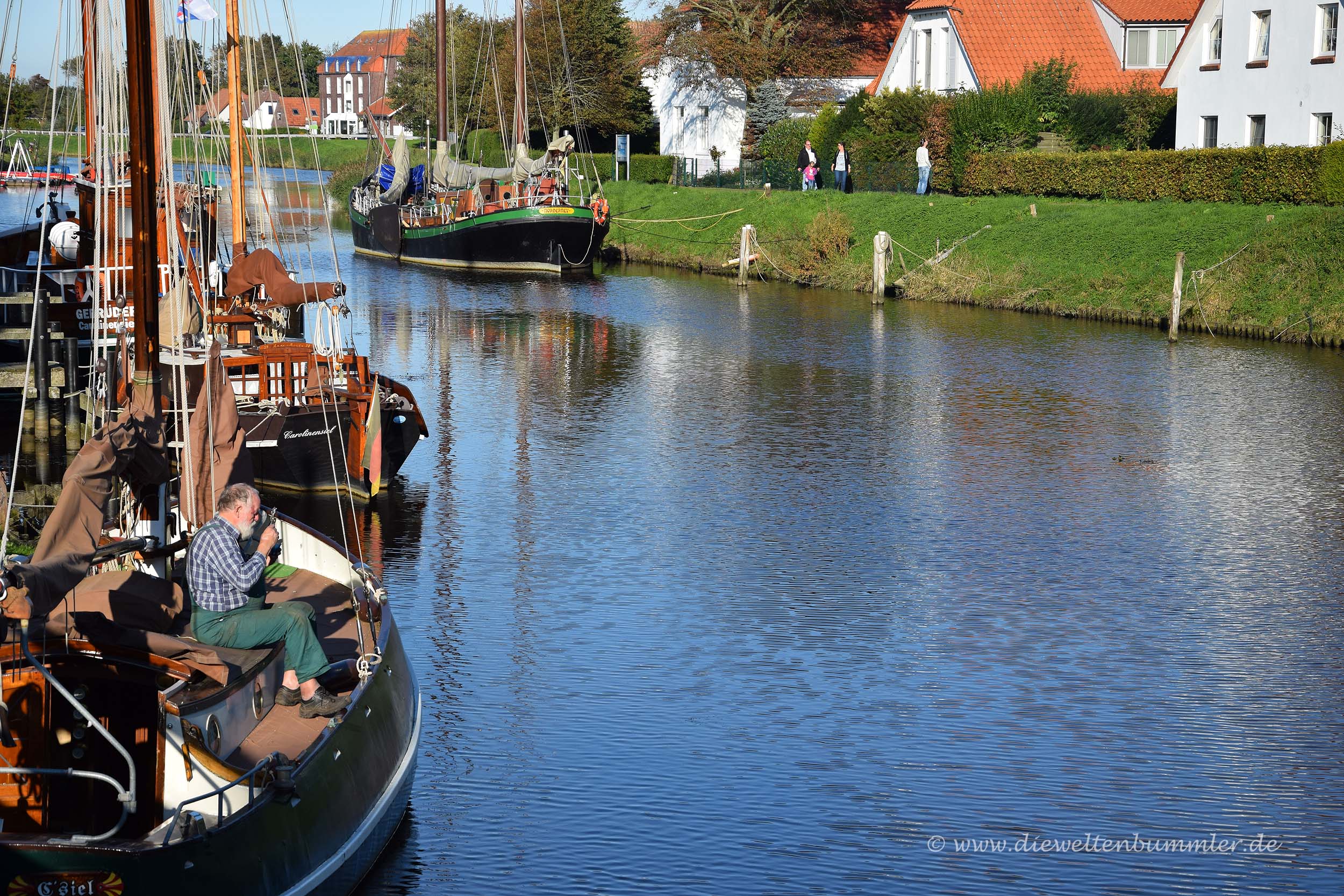 Und natürlich ließen wir es uns auch nicht nehmen, an jedem Tag den gemütlichen Weg am Ufer der Harle bis zum Hafen von Carolinensiel zu gehen. Hierzu muss man sagen, dass schon alleine der Weg über den Deich von Harlesiel nach Neuharlingersiel hin und zurück rund 15 Kilometer lang ist. Kaum wieder zurück am Wohnmobilstellplatz angekommen, gehen wir also dann direkt weiter nach Carolinensiel, womit weitere vier Kilometer dazukommen. Andere Menschen sehen das wohl nicht als Urlaub, wir schon.