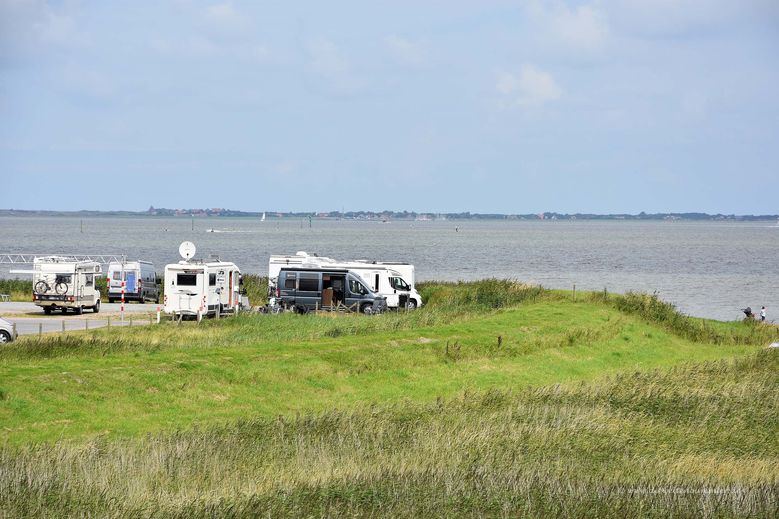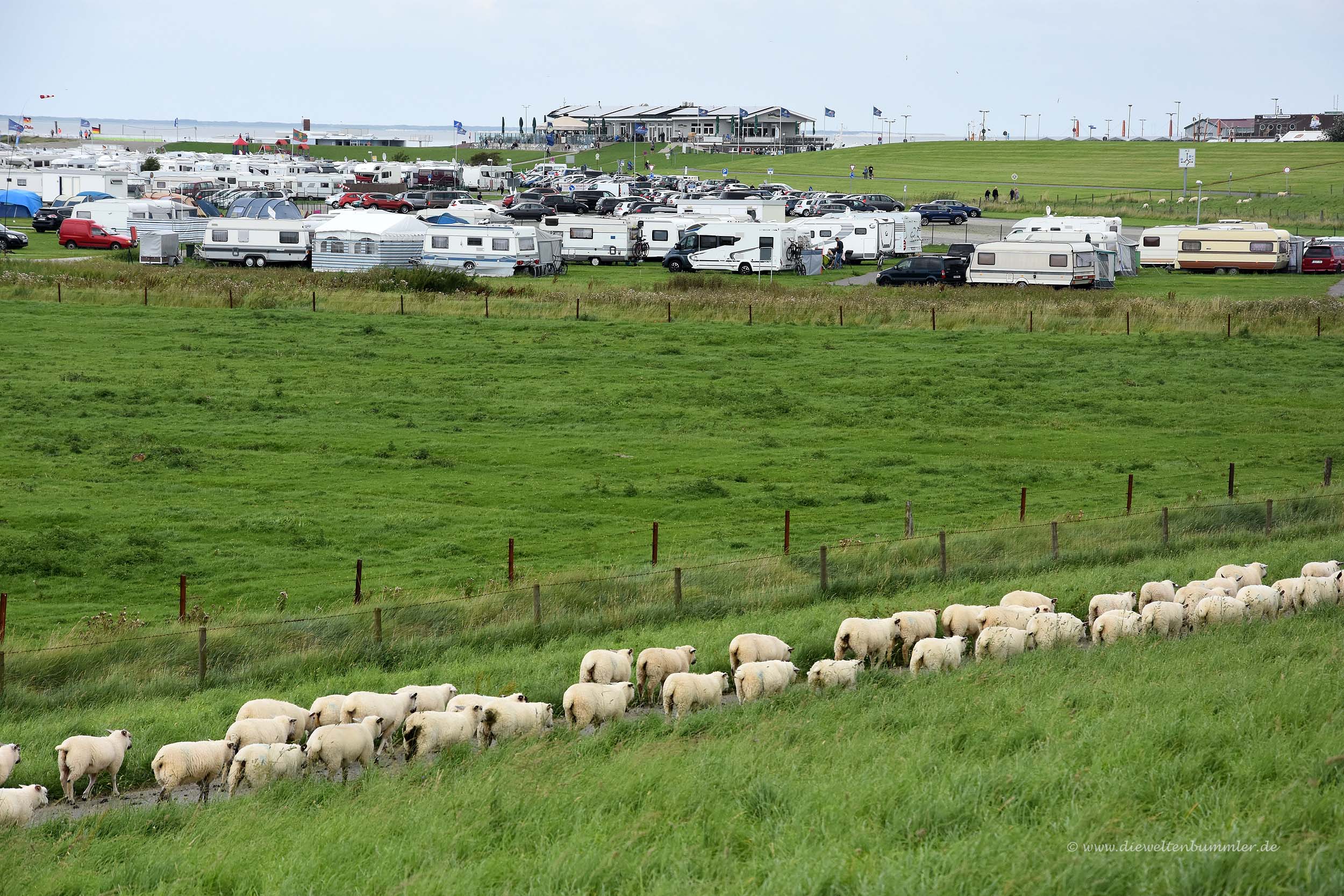 Der einzige Unterschied zu unseren sonstigen Touren war, dass Harlesiel und Carolinensiel deutlich besser besucht waren. Es war Sommer, es war voll. Der Campingplatz auf der anderen Seite des Deiches war voll und auch der dortige, noch relativ junge Wohnmobilstellplatz war komplett belegt.