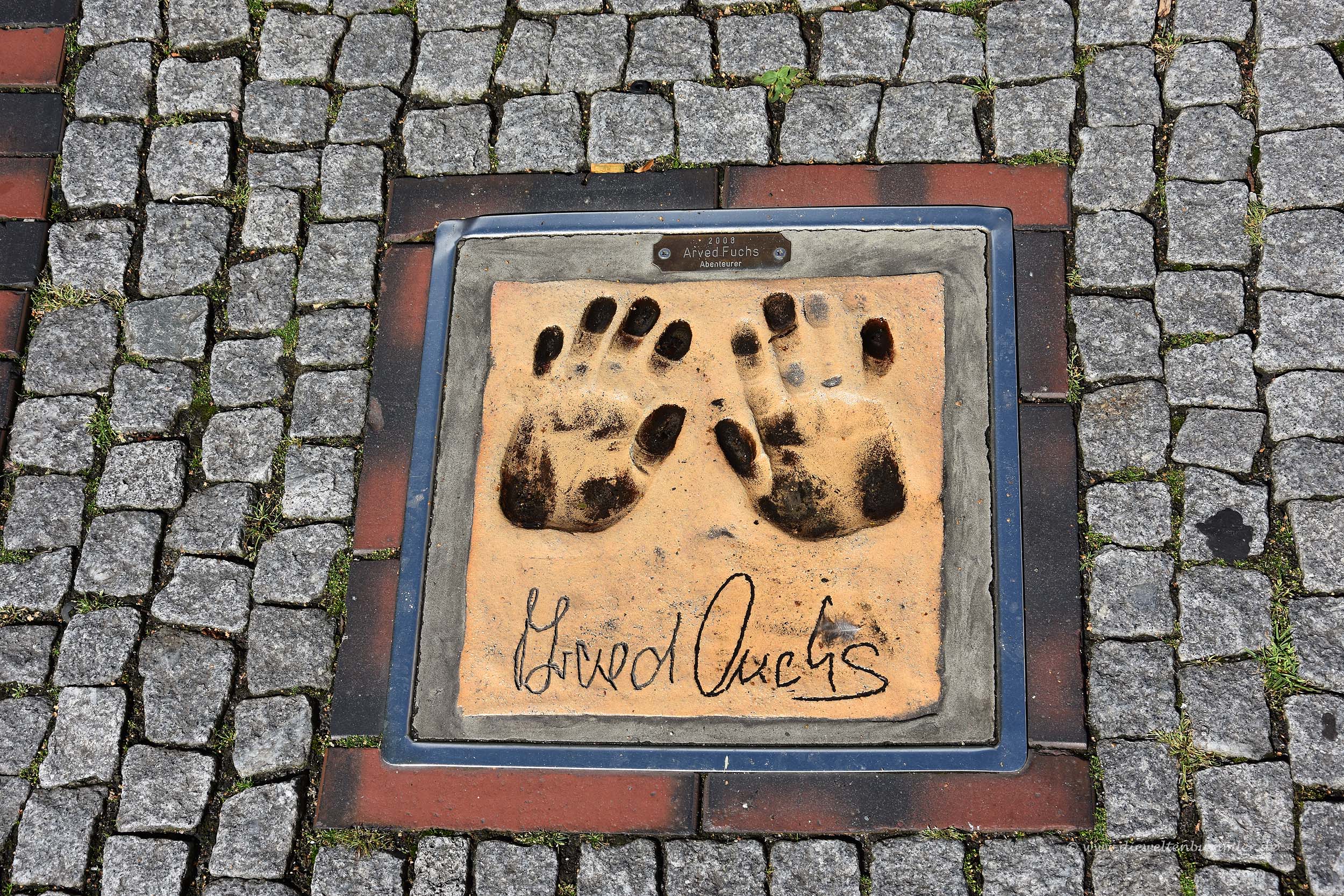 Es war Sonntag und die Straßen und Ortschaften relativ ruhig. Das war natürlich schon mal ein entscheidender Vorteil. Also nutzten wir die leeren Straßen und steuerten unser Wohnmobil zunächst nach Wittmund. Dort war ich ein wenig neugierig auf die Hand of Fames. Ähnlich wie in Los Angeles mit dem Walk of Fame, hat man hier Handabdrücke von prominenten Persönlichkeiten in den Boden der Fußgängerzone eingelassen und kann diesen folgen.
