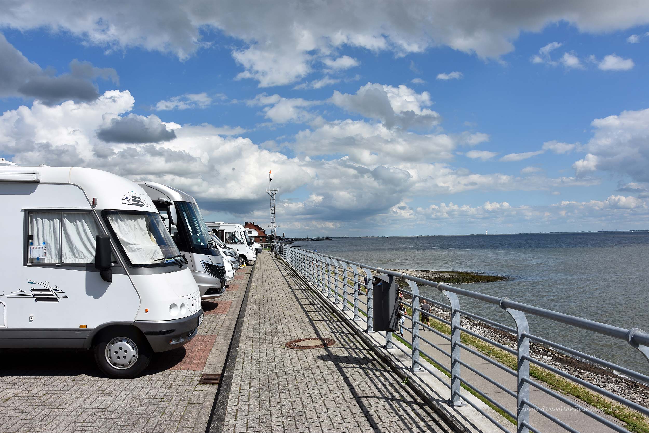 Weiter südlich kamen wir in die erste größere Stadt auf unserer Tour, nach Wilhelmshaven. Die Auswahl an Wohnmobilstellplätzen ist in der Stadt ziemlich gut. Wir entschieden uns, unseren Wagen am Fliegerdeich zu den anderen Wohnmobilen zu stellen und spazierten dann unter anderem am Südstrand entlang.