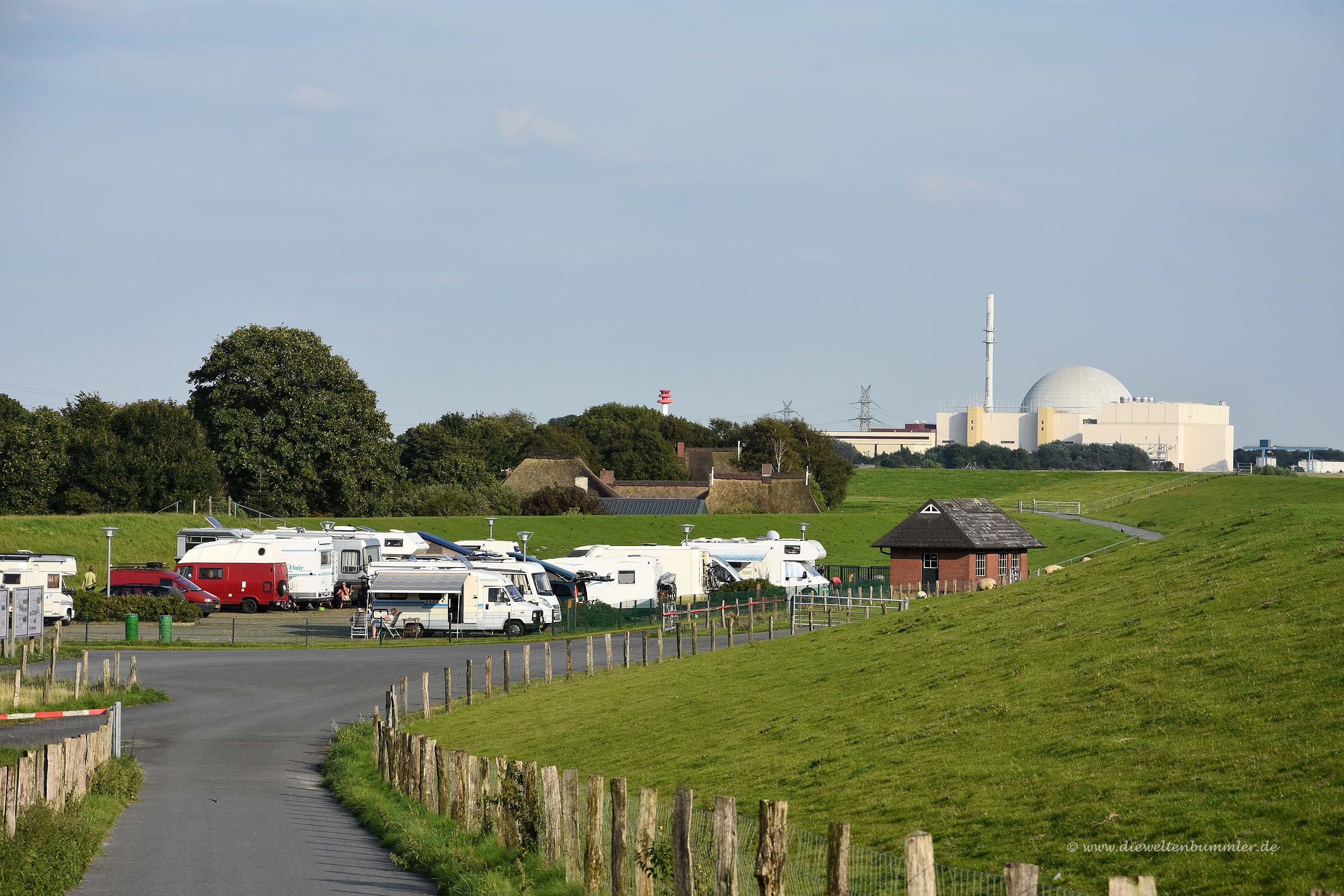 Zwar befindet er sich in unmittelbarer Nähe zum Kernkraftwerk, was ihn nicht gerade anziehend macht, aber er ist extrem ruhig gelegen, befindet sich gleich hinter dem Deich und bietet am Abend noch ein wenig Spaziermöglichkeiten am Elbufer entlang. Wir waren zufrieden und konnten uns nicht beklagen.