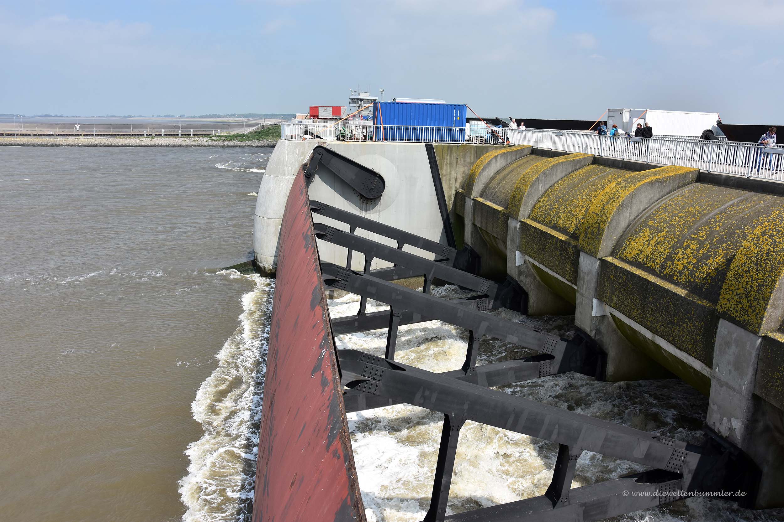 Das berühmte Sperrwerk an der Mündung der Eider bietet einen großen Parkplatz, von dem aus man über eine Treppe auf das Werk gelangt und man sich sowohl Technik als auch Natur anschauen kann. Letzteres war insofern total interessant, weil hier viele Küstenseeschwalben ihr Abendbrot fingen. Immer wieder sah man die Vögel sehr nah an einem vorbeifliegen, ganz so als wollten sie stolz ihren Fang zeigen, den sie in Form eines Fisches im Schnabel hatten. So einen Anblick hatten wir zuletzt auf Farne Island bei unserer Wohnmobilreise durch England.