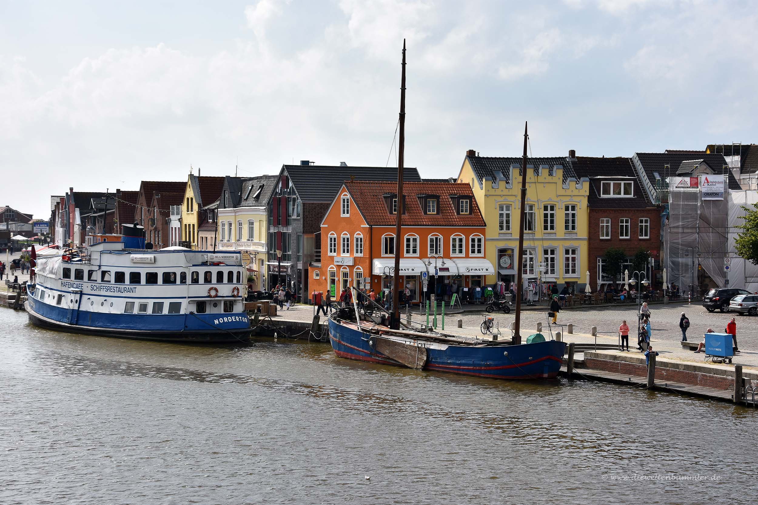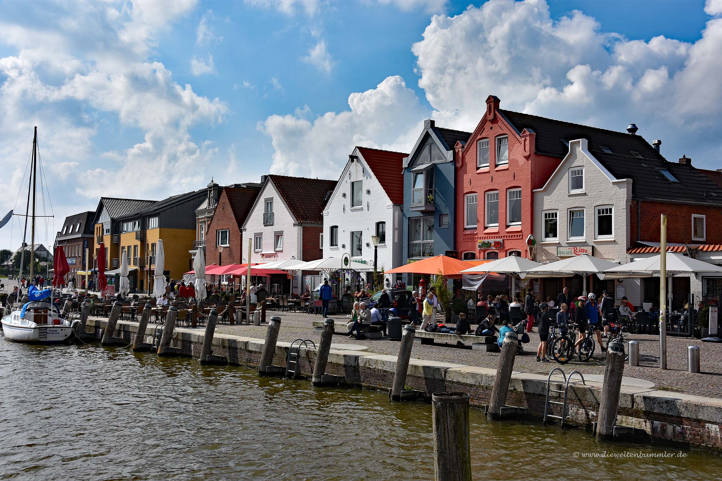 Anschließend saßen wir wieder hinter dem Steuer und fuhren in das nahe gelegene Husum. Da es noch früh am Tag war, benötigten wir den dortigen Wohnmobilstellplatz nicht und parkten unseren Kastenwagen in der Nähe vom Schloss Husum. Von dort aus gingen wir zu Fuß auf Erkundungstour.