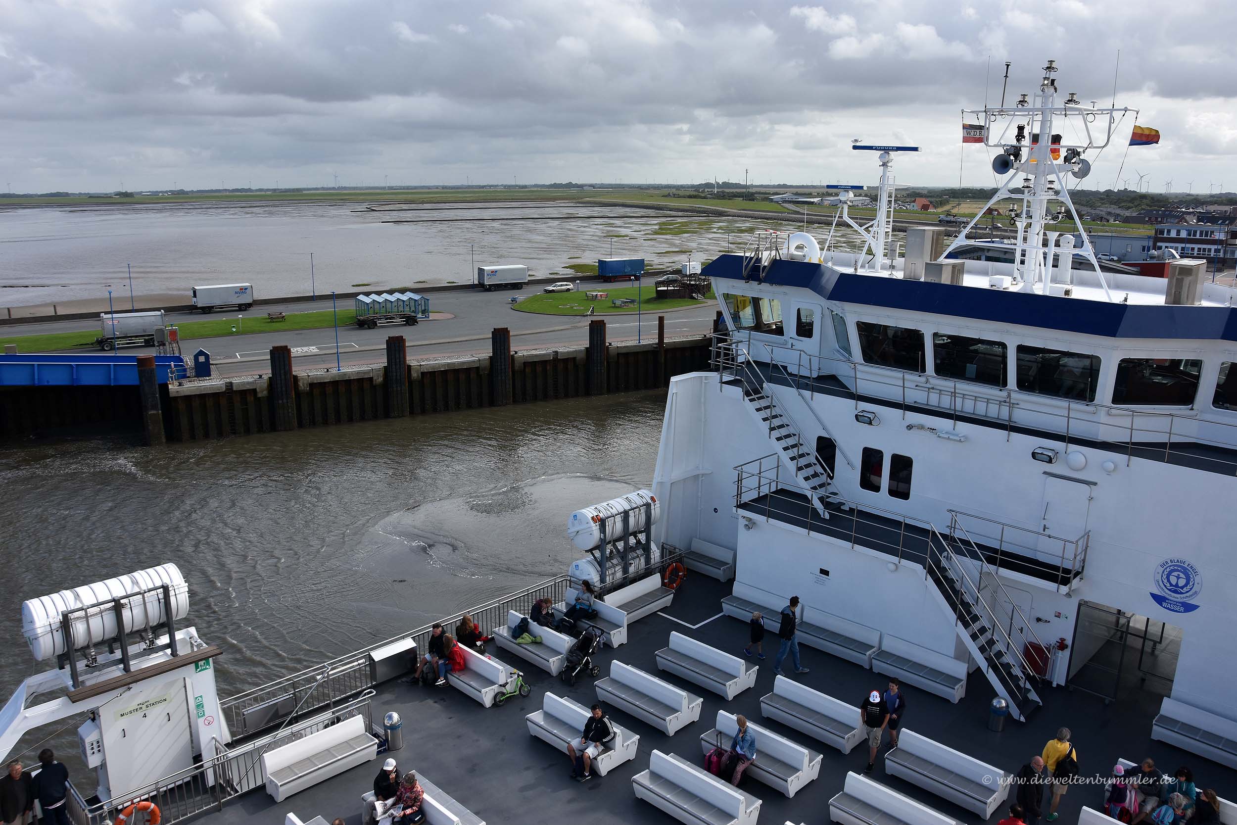 Nach einigen anstrengenden Stunden in Husum fuhren wir auf die Halbinsel Nordstrand, wo es dann endlich wieder ruhiger zuging. Bis zum Ende fuhren wir die Straße durch, wo die Fähre nach Pellworm ablegt.