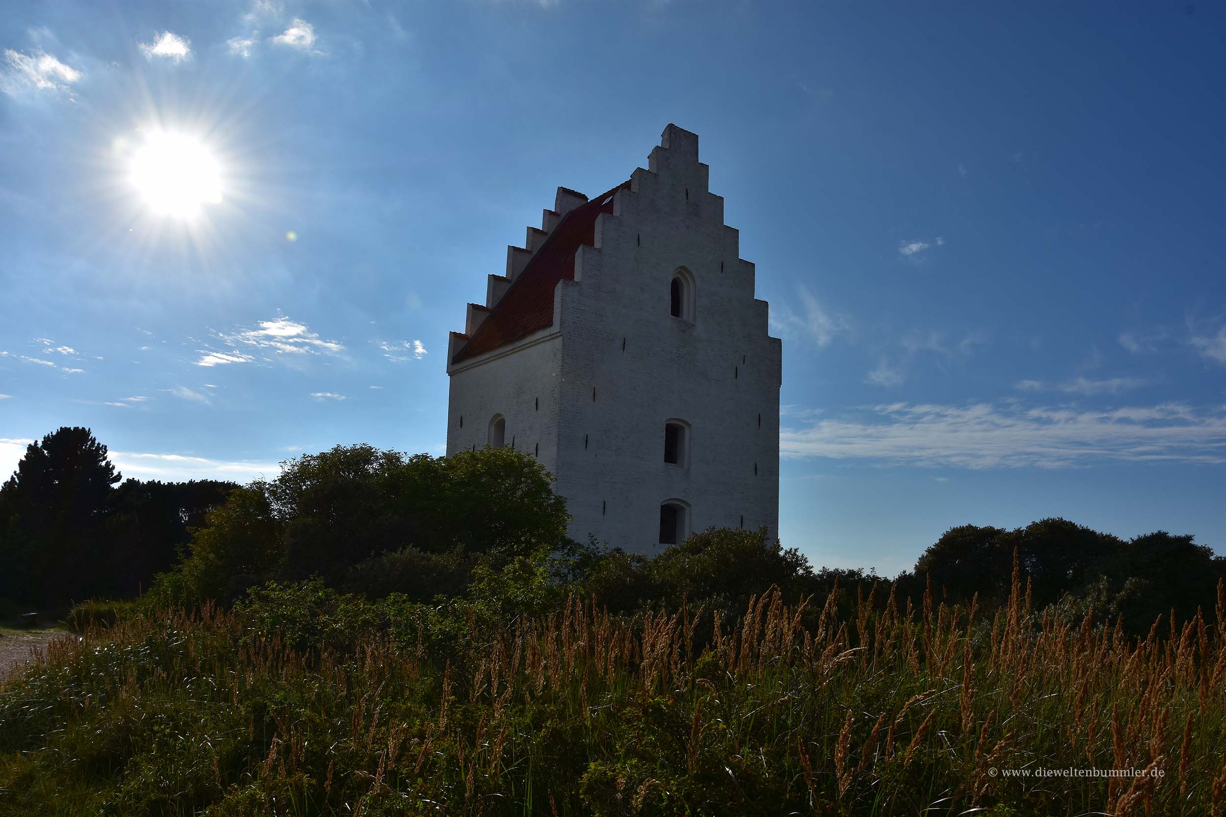 Doch vorher fuhren wir noch einmal nach Süden. Wir wollten nämlich auch noch einmal die versandete Kirche südlich von Skagen besuchen. Nur noch der Kirchturm ist zu sehen, das Kirchenschiff existiert nicht mehr. Und drumherum gibt es nur noch Sanddünen und knorrige Bäume. Die Natur hat sich hier alles geholt, was es einmal gab. Auf dem Rückweg zum nördlichsten Punkt stoppten wir zu einem Einkauf in Skagen, warfen einen Blick in die Fußgängerzone und fuhren schnell wieder zum Parkplatz zurück.
