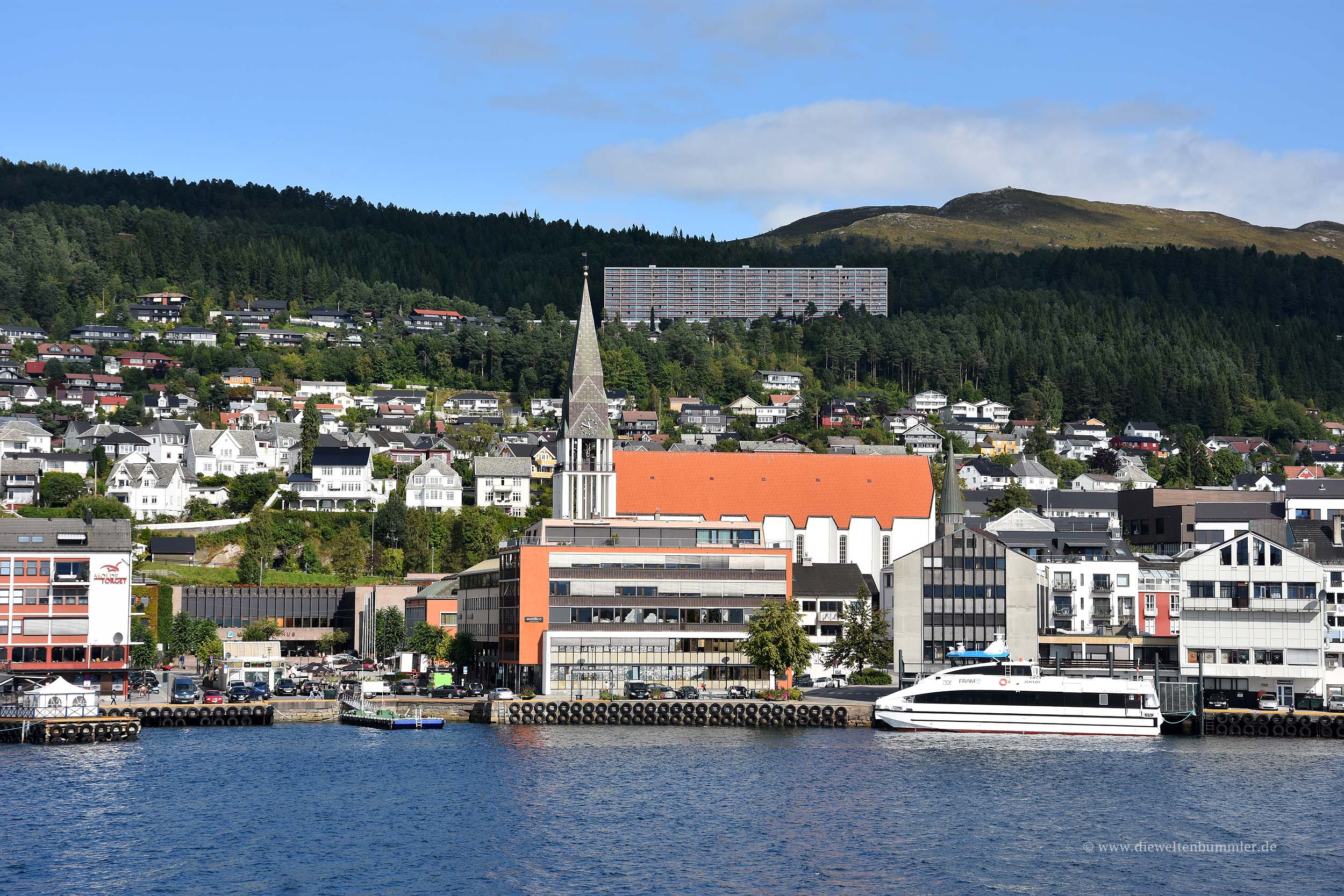 Wir folgten der Beschilderung zum Wohnmobilstellplatz, den wir auch schnell erreichten und wo wir angesichts der Enge dieses Platzes beschlossen, hier keine Nacht bleiben zu wollen. Wir konnten gerade so eben noch einen Platz ergattern und bezahlten rund 8 Euro für drei Stunden Aufenthalt. Woanders bezahlt man so viel für die ganze Nacht. Klar, hier hat man Blick auf das Meer und man ist in wenigen Gehminuten im Stadtzentrum. Aber ich bin in Norwegen, da bevorzuge ich dann doch lieber den Aufenthalt in der Natur.