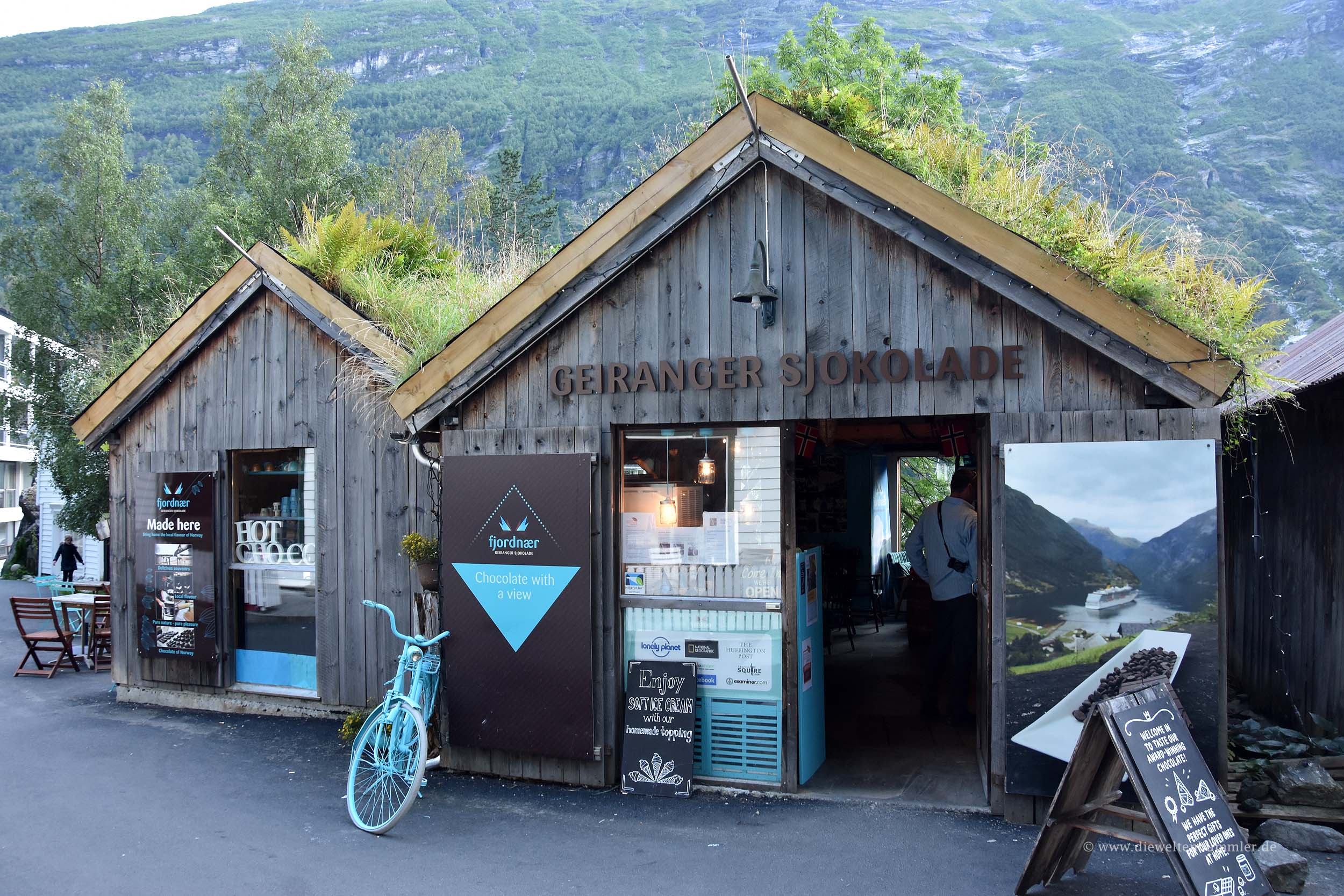 Wir entschieden uns für Letzteres, denn wir wollten ja auch noch etwas von der Ortschaft sehen. Groß ist Geiranger nicht, aber ein kleiner Bummel tat uns ganz gut. Außerdem war dies die bisher einzige Übernachtung auf einem norwegischen Campingplatz während dieser Reise und bezahlen mussten wir nachts bisher auch nur ganz wenige Male.