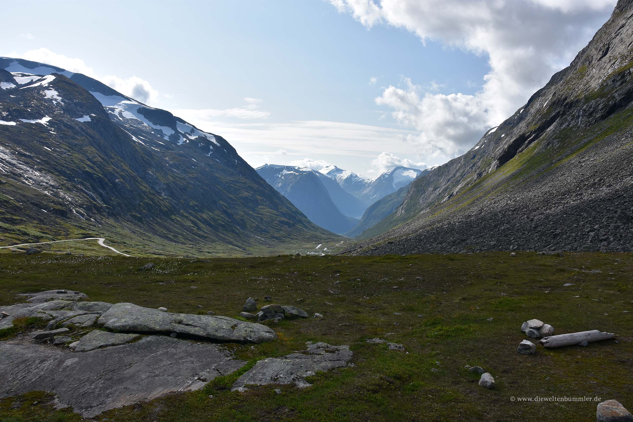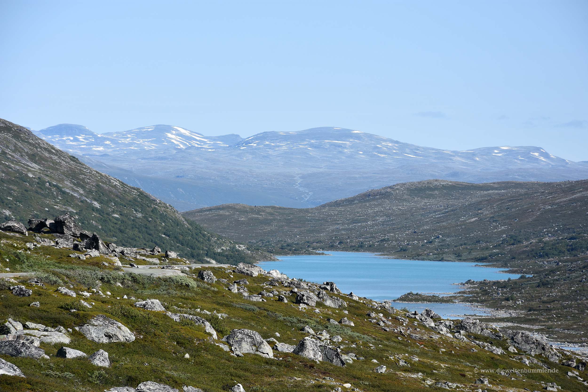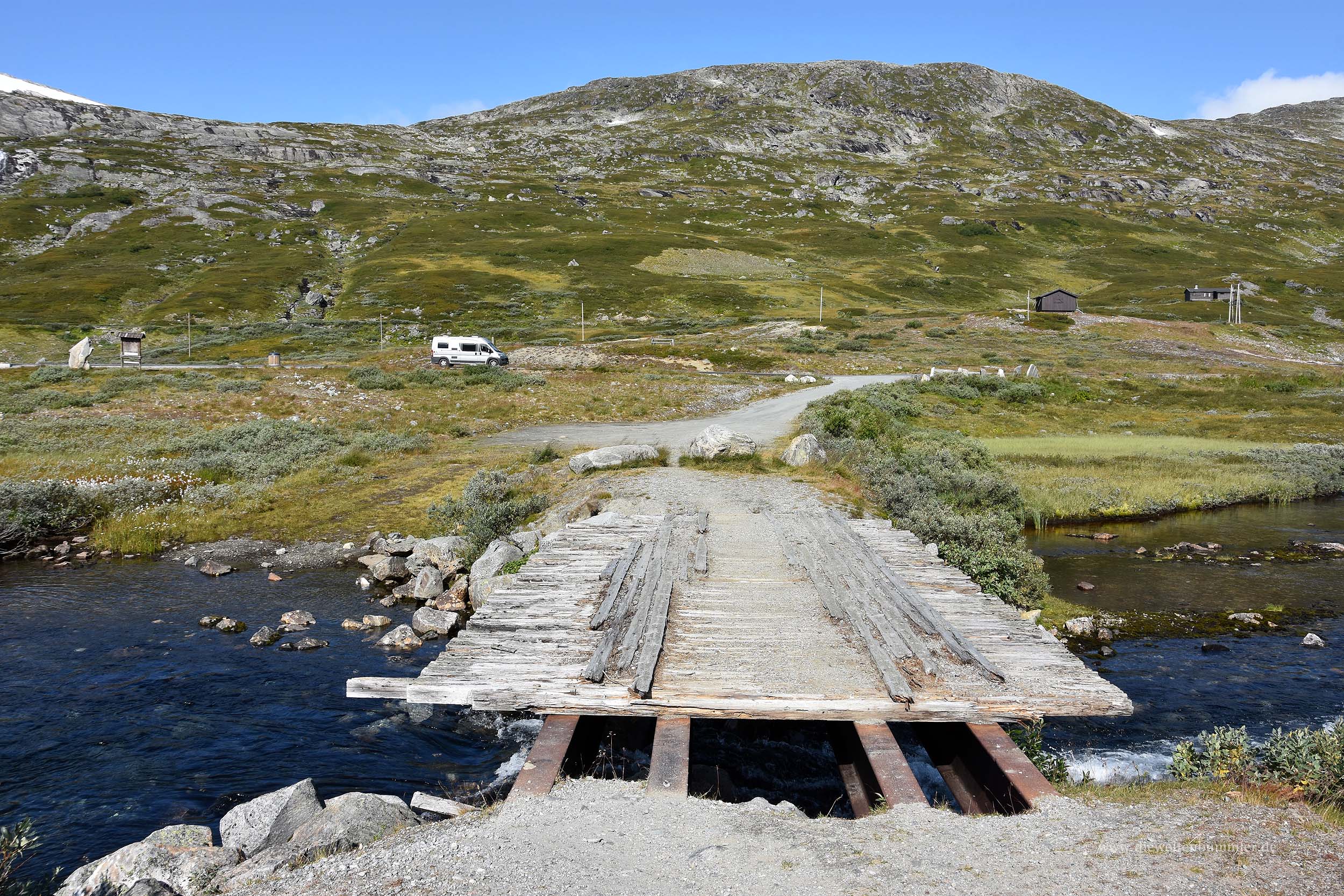 Nachdem wir unsere Fahrt fortsetzten, wurden wir auf eine abzweigende Straße aufmerksam, die als touristisch interessant und sehenswert ausgewiesen war. Das machte uns neugierig und wir warfen einen kurzen Blick auf die Karte, um zu sehen wo die Straße uns denn hinbringen würde. Es handelte sich um den Gamle Strynefjellsvegen, eine alte Passstraße, die mit der Fertigstellung der Straße 15 und zweier Tunnel ihre Bedeutung verlor.