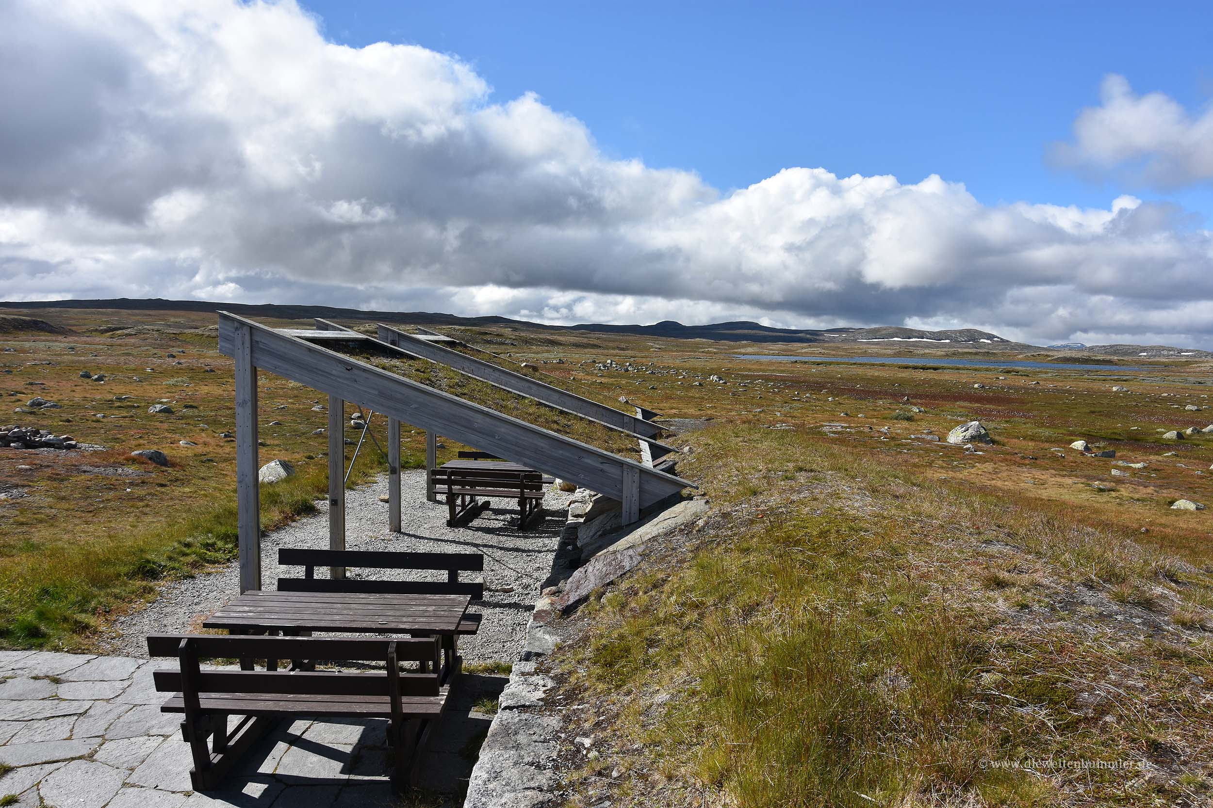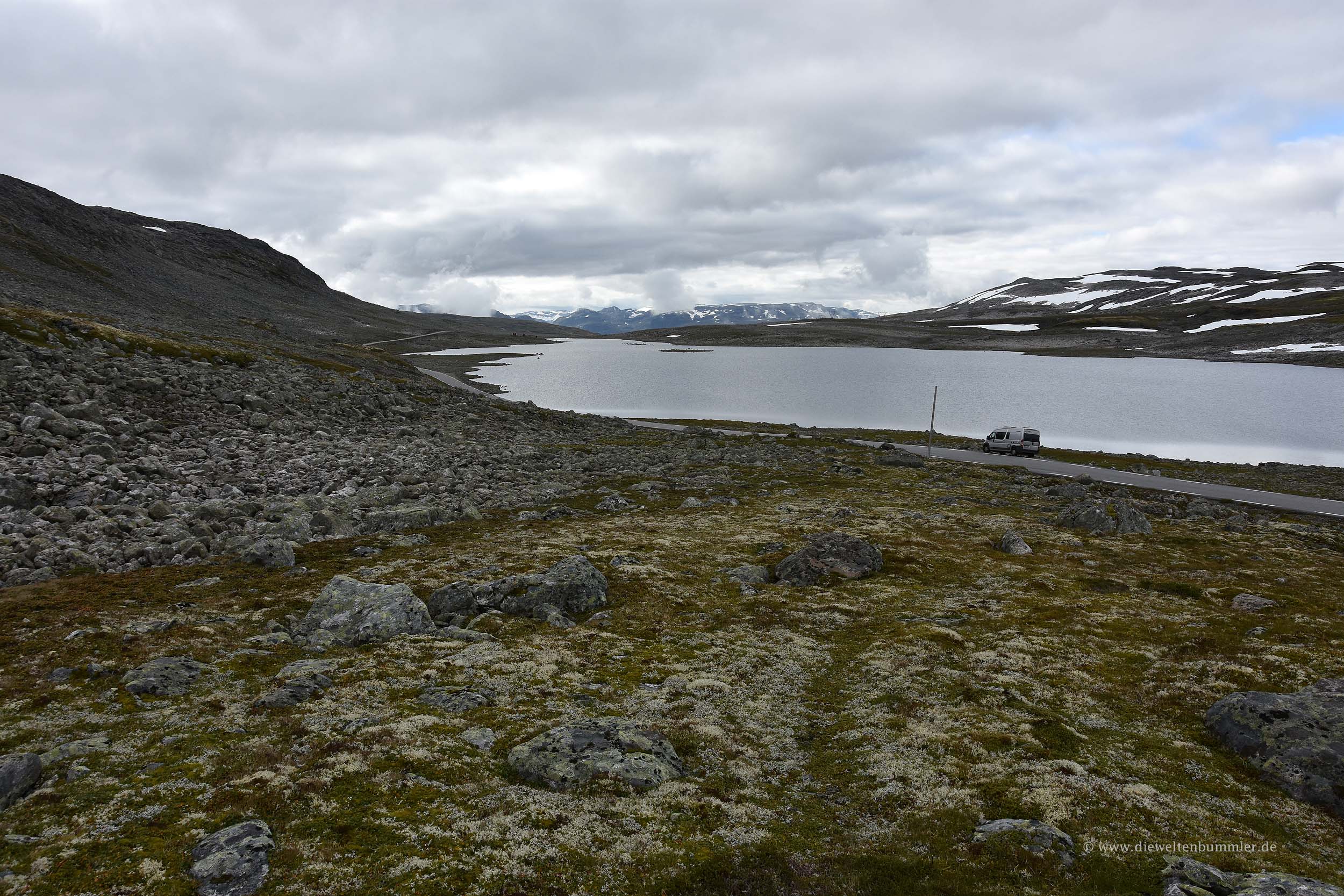 Kurz hinter Eidfjord hielten wir auch an einem Parkplatz an, den wir von unserer VW-Bustour aus dem Jahr 2009 kannten. Damals wollten wir dort übernachten, wurden aber – ganz im Glauben der Norweger – von Trollen verscheucht. Lustige Geschichte, die auch immer wieder zu Lachern bei meinen Reisevorträgen führt.