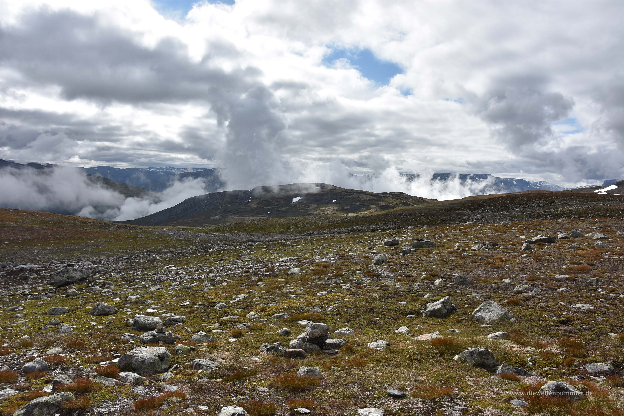 Nein, diese Vorstellung ist alles andere als angenehm und führte dazu, dass wir wieder ein Stück vom Abhang zurück traten. Anschließend ging unsere Reise durch den Nationalpark Hardangervidda. Auch hier galt natürlich, dass wir mehrfach anhielten und einige Schritte in die tolle Landschaft unternahmen und sie fotografierten.