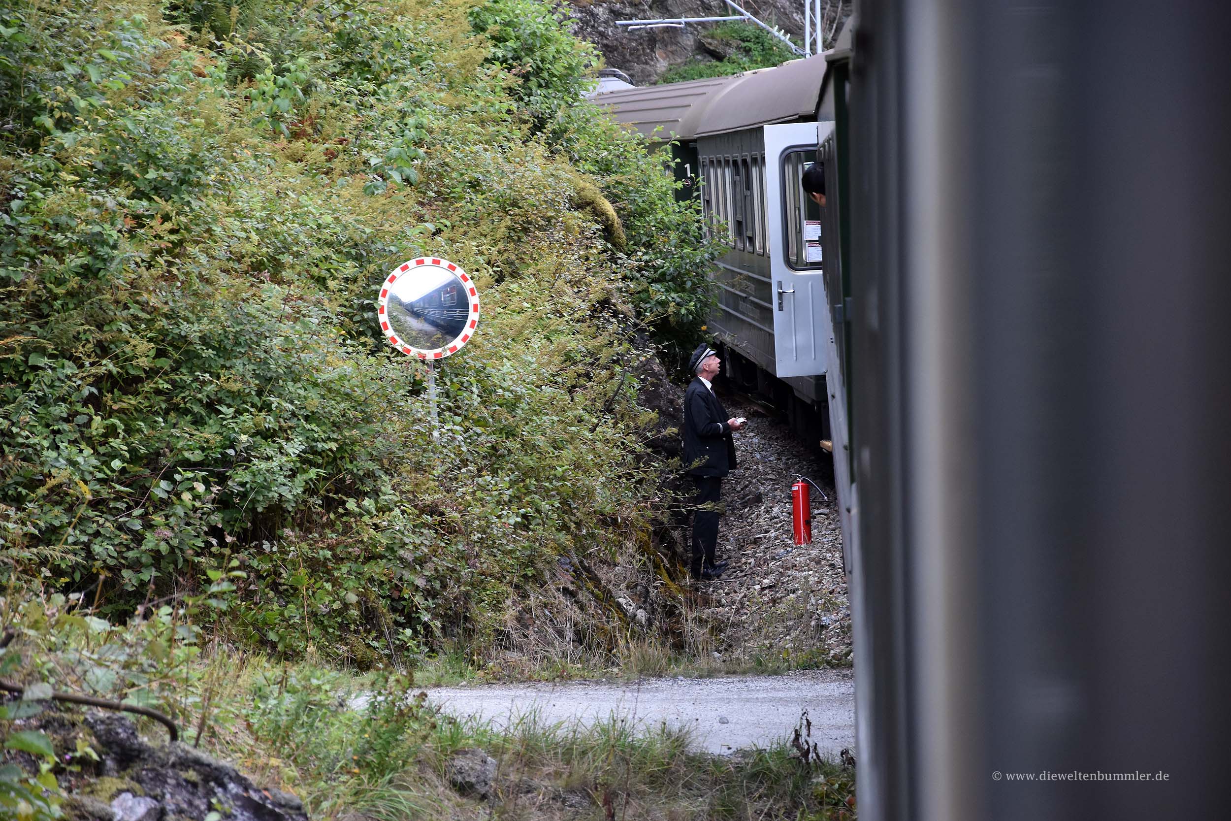 Doch die Bergfahrt war damit zu Ende gebracht. Zugbegleiter gingen durch den Waggon und erklärten sehr transparent, dass wir nicht weiter nach oben fahren könnte. Es hätte wohl einen Kurzschluss in einem Verteilerkasten gegeben und wir müssten wieder hinab ins Tal.