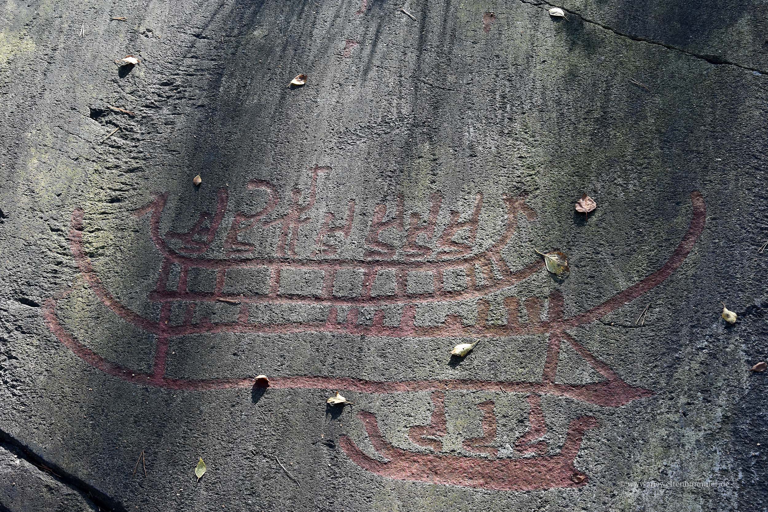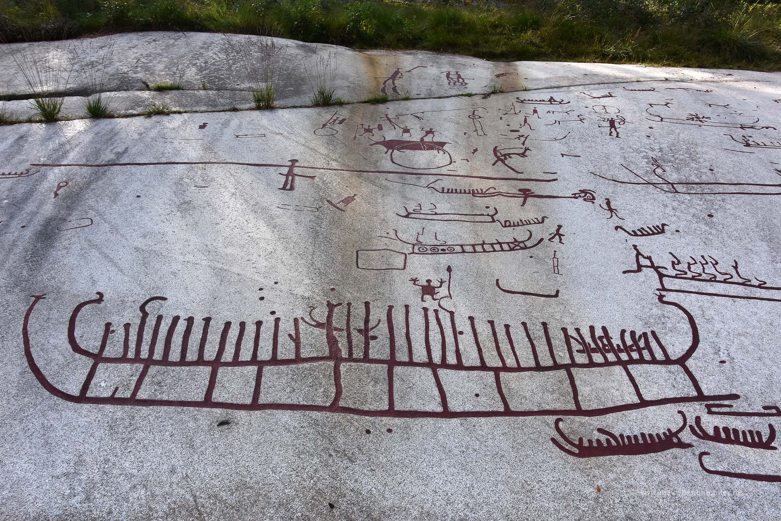 Südwärts fuhren wir gemütlich nach Tanumshede, wo wir im Tanum Shoppingcenter endlich unsere gewünschten Waren wie das leckere Brot Hönö Kaka und andere Sachen einkauften. In der Nähe schlenderten wir natürlich auf den Waldwegen zwischen den Felsritzungen von Tanum umher. Diese stehen auf der Liste der Weltkulturerben der Unesco und sind interessant anzusehen. Da wir sie aber schon kannten und eigentlich nur ein paar neue Bilder machen wollten, war unser Aufenthalt nur von kurzer Dauer. Uns war mehr daran gelegen, lieber auch mal etwas neues zu entdecken.