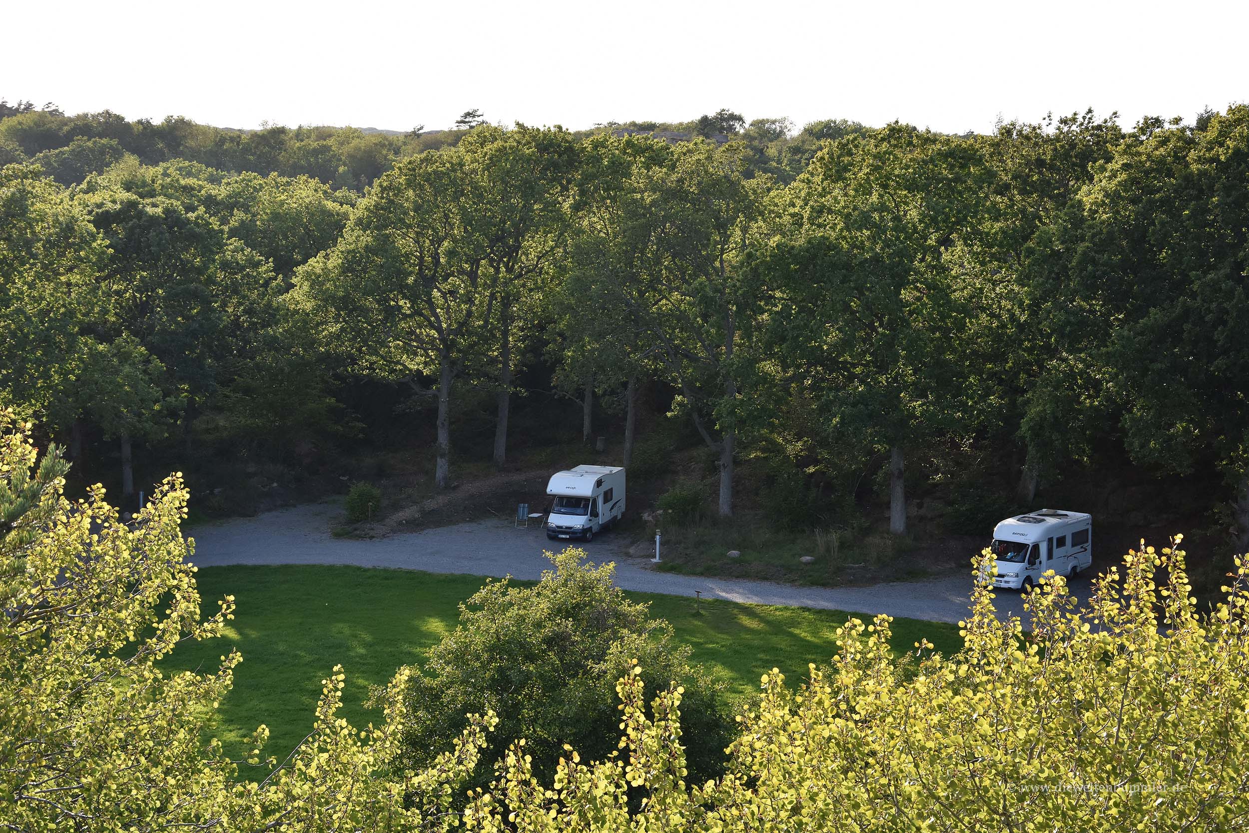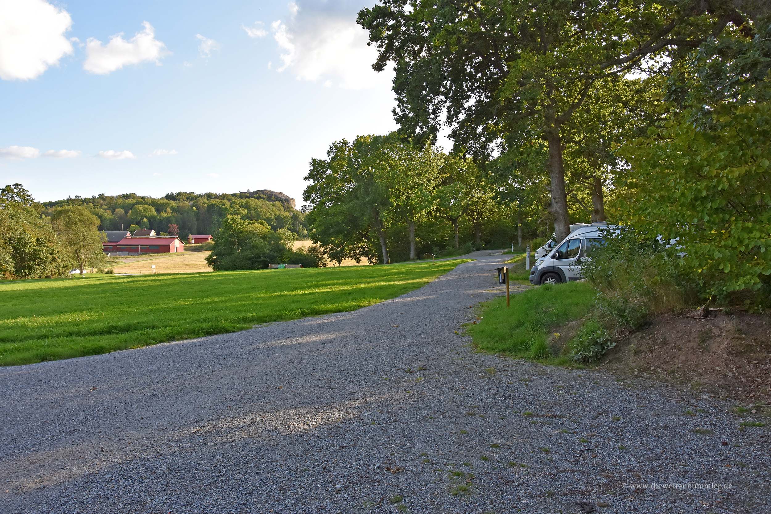 Auf dem weiteren Weg gen Süden sahen wir plötzlich kurz vor Gerlesborg einen kleinen Wohnmobilstellplatz, der uns sofort anlachte. So klein war er eigentlich gar nicht. Er hatte zwar nur Platz für zehn Wohnmobile, doch die Parzellen waren sehr großzügig um eine große Wiese verteilt. Das gefiel uns und wir entschieden spontan, den Abend hier zu verbringen.