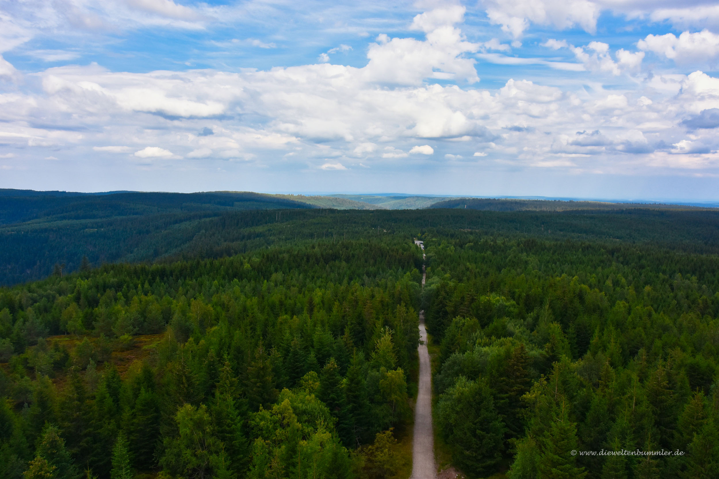Für uns stand nun wieder eine längere Fahrt auf dem Programm. Über eine Stunde lang durchquerten wir den Südschwarzwald in östliche Richtung. Unser nächstes Ziel hieß Lehenkopfturm. Dieser befindet sich bei St. Blasien, wo wir noch einige andere Dinge besuchen wollten, unter anderem natürlich den Dom. Auf einem kleinen Wanderparkplatz mitten im Grünen (47.741908, 8.116437) stellten wir unser Wohnmobil ab und zogen zu Fuß los. Die gute Nachricht war, dass das Wetter deutlich freundlicher aussah. Es war trocken. Das war schon mal eine gute Grundvoraussetzung. Aber an manchen Stellen schien sogar ein wenig die Sonne durch die Wolkendecke. Welch eine Freude.