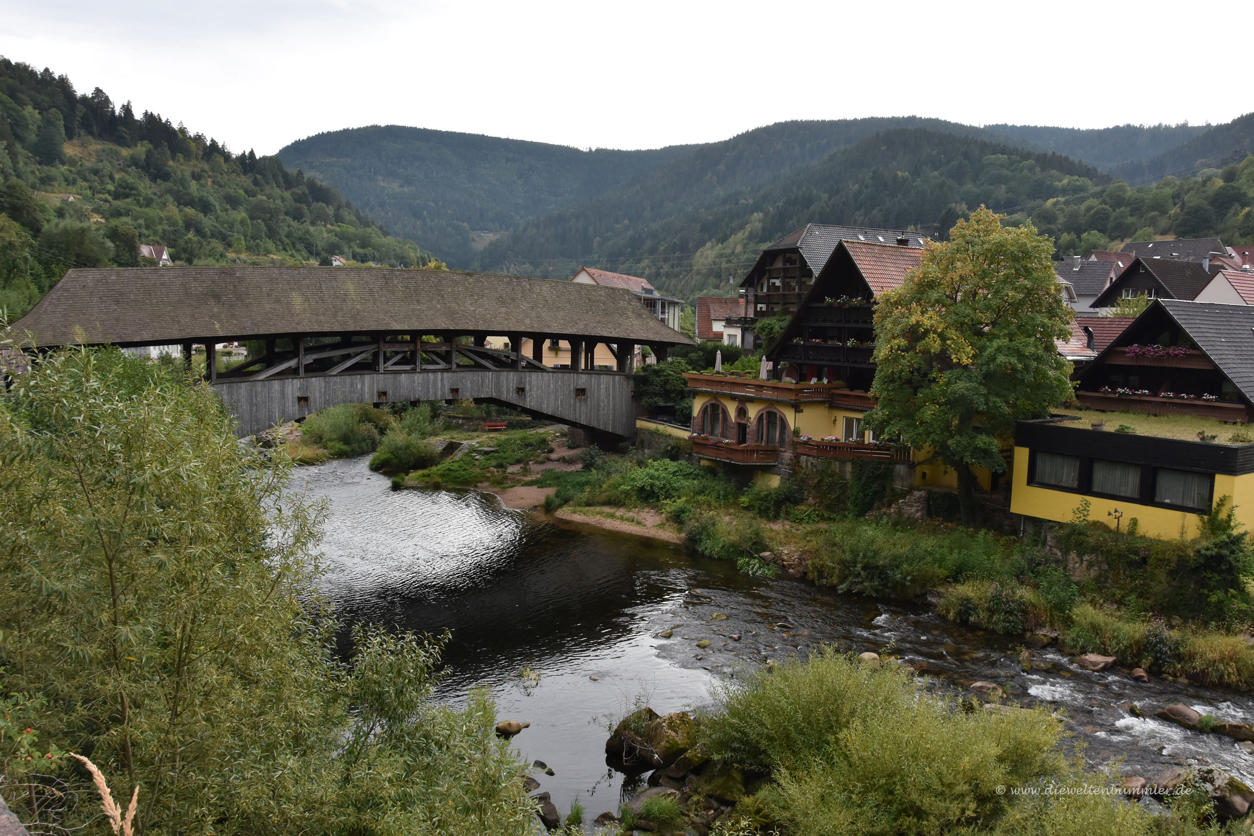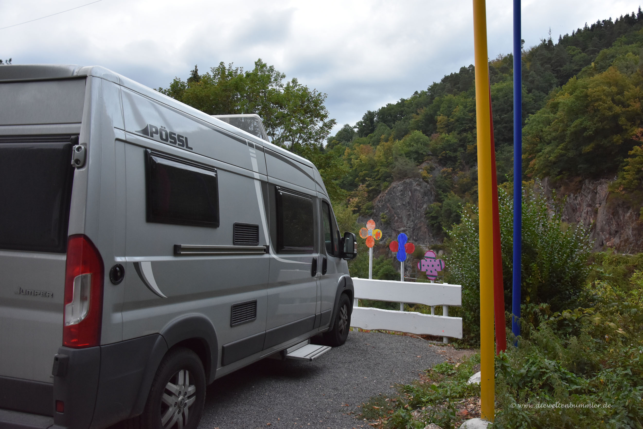 Den Abend wollten wir in Forbach verbringen. Dort wollten wir uns nämlich noch die überdachte Holzbrücke über der Murg ansehen. Wir fanden einen kleinen privaten Wohnmobilstellplatz am nördlichen Ortsrand und stellten unseren Kastenwagen auf den letzten verbliebenen Platz von insgesamt vier oder fünf Stellflächen. Im selben Moment kam ein Junge auf uns zu und fragte, ob wir bleiben wollen. Sein Vater sei der Besitzer und käme gleich von der Arbeit. Der aufgeweckte Junge erklärte uns in der Zeit, was wir zahlen müssten und wo es noch einen Supermarkt gibt. Denn ein paar Einkäufe wollten wir noch machen.
