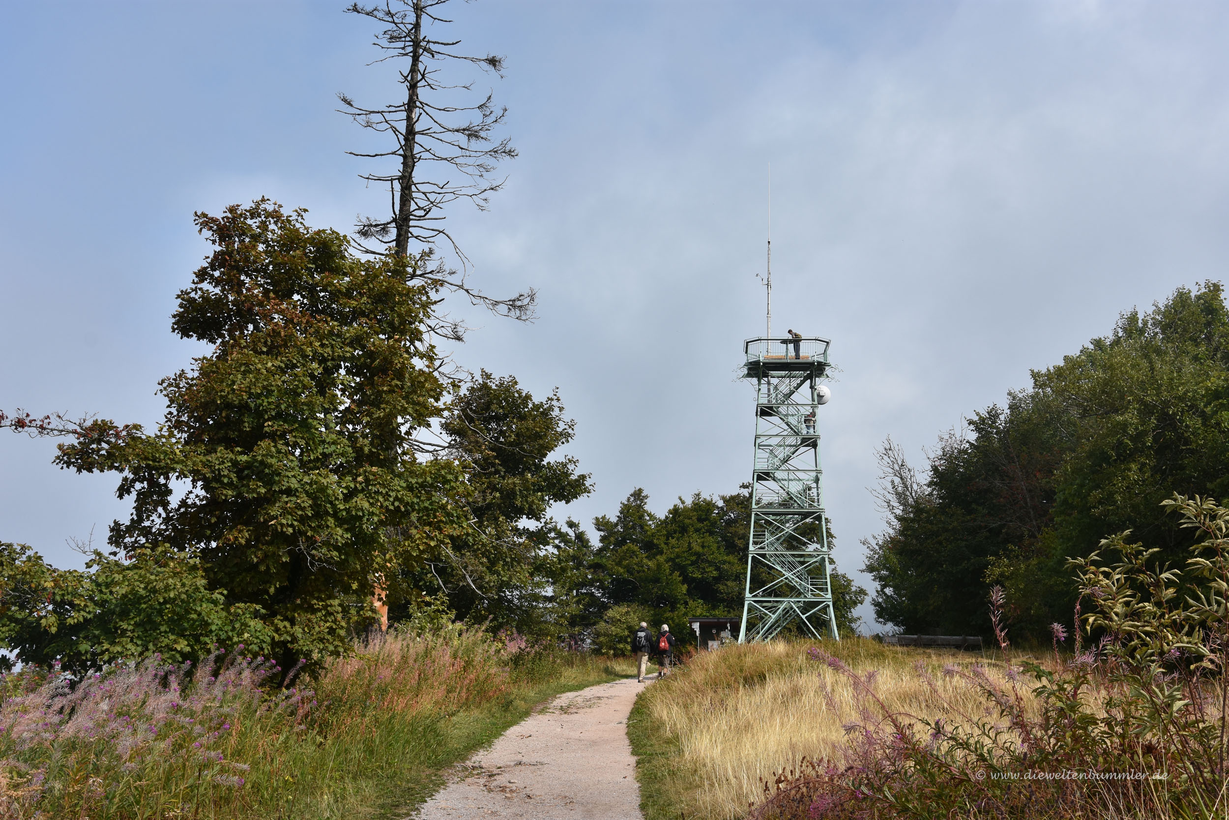 Und von der gibt es im Nordschwarzwald eine ganze Menge. Der Hohlohturm war es, den wir uns anschauen wollten und von dem aus wir einen schönen Blick über den Schwarzwald zu genießen vor hatten. In der Nähe vom Infozentrum Kaltenbronn stellten wir das Wohnmobil auf einen kleinen Parkplatz ab und stellten, wie schon bei der Reise nach Slowenien wenige Monate zuvor, wieder einmal fest, dass unser Kastenwagen nach einer längeren Bergfahrt einen leicht verbrannten Geruch hinterlässt. Da wir das eben nur bemerken, wenn wir längere Zeit bergauf fahren und den Wagen dann abstellen, haben wir das auch dieses Mal nur achselzuckend zur Kenntnis genommen. Vielleicht irgendwo ein Tropfen Öl, der heiß wird? Wir wissen es nicht. Aber wir machten uns nicht mehr so große Sorgen wie noch bei der Slowenienreise. Denn seitdem sind schon wieder einige tausend Kilometer verstrichen und es ist nichts dramatisches passiert.