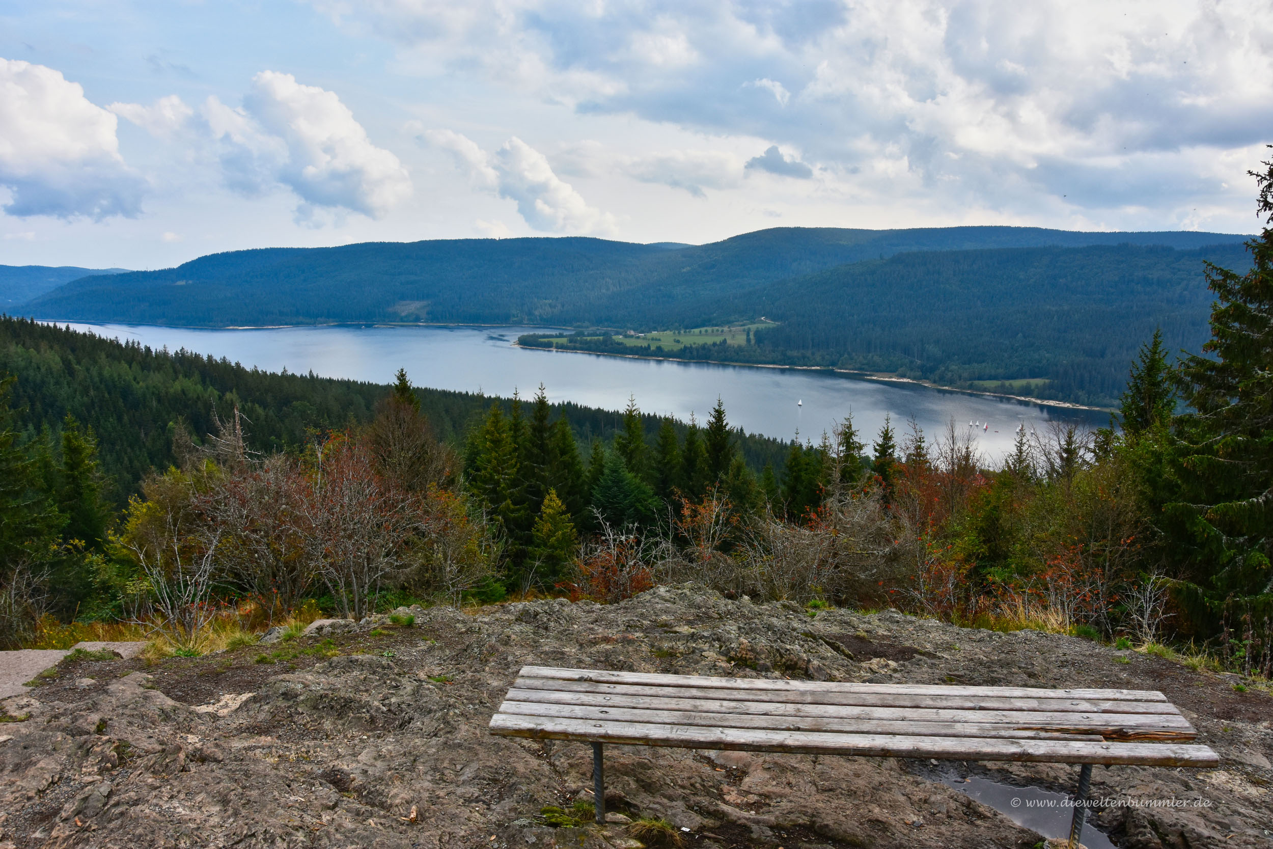 Auch unser darauf folgendes Ziel war wieder nicht weit entfernt. Dafür mussten wir wieder einen Wanderparkplatz (47.844729, 8.159669) ansteuern und den Rest des Weges zu Fuß zurücklegen. Von Fischbach aus spazierten wir durch den Wald bis zum Aussichtspunkt Bildstein. Ein toller Punkt, um den Blick über den Schluchsee schweifen zu lassen. Wir machten auch hier wieder Fotos, hielten kurz inne und spazierten anschließend wieder zurück zum Auto.