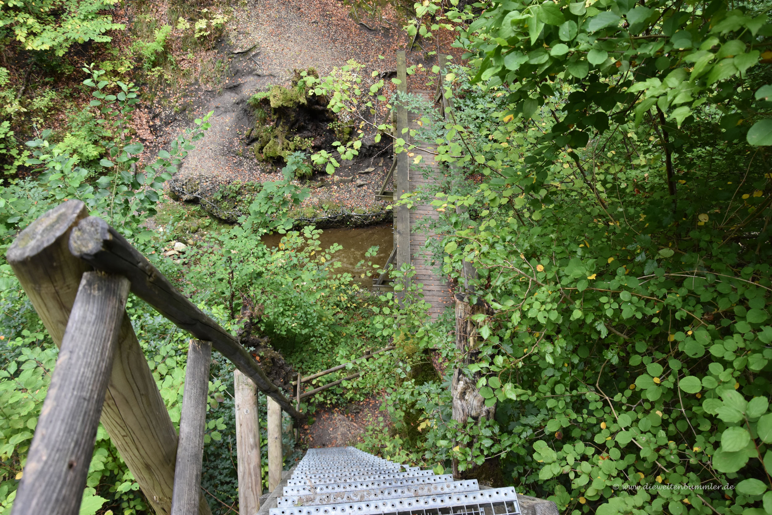 Einen weiteren Kompromiss mussten wir schließen, weil wir auf eine Fahrt mit der Sauschwänzlebahn verzichteten. Das stand nämlich als privater Punkt ebenfalls auf unserer Liste. Aber es geht halt nicht alles. Die Sauschwänzlebahn muss warten, bis wir mal mit etwas mehr Zeit wieder hier in der Nähe sein würden. Dafür würden wir uns aber noch die Schleifenbachwasserfälle anschauen, die ebenfalls zur Wutachschlucht gehören. Wir fuhren in das nahe gelegene Örtchen Blumberg und erreichten sie zu Fuß von dort aus. Der Ort Blumberg kam uns generell aber irgendwie seltsam vor.