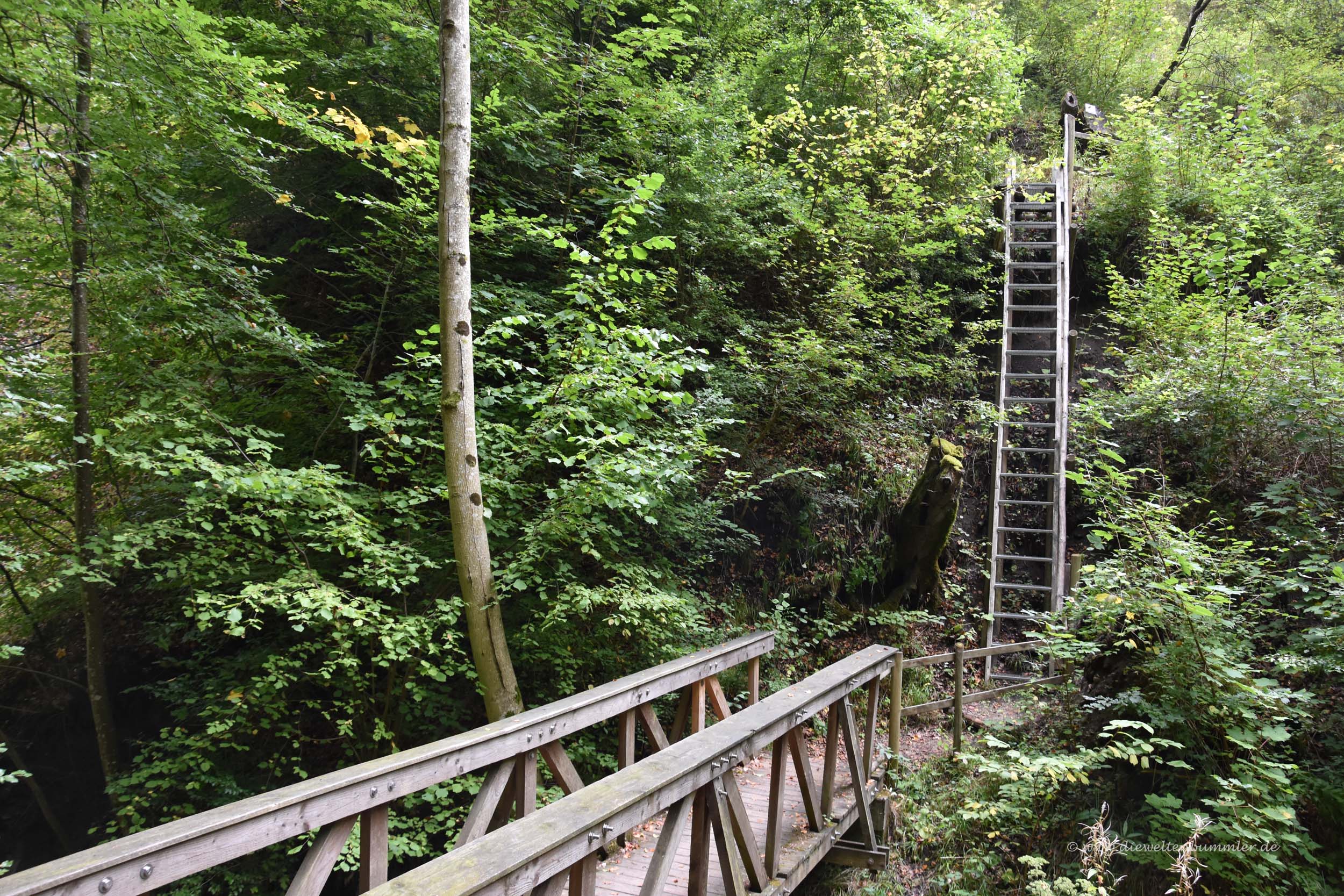 Die Wasserfälle waren, nun ja, Wasserfälle. Sie waren weniger spektakulär als die Leiter, die in den Fels montiert wurde, damit man auf dem Wanderweg vorwärts kommt. Hier muss man also ähnlich wie an der Mosel im Calmont Klettersteig über die Steigleiter nach oben bzw. nach unten wandern. Aber schön war’s.